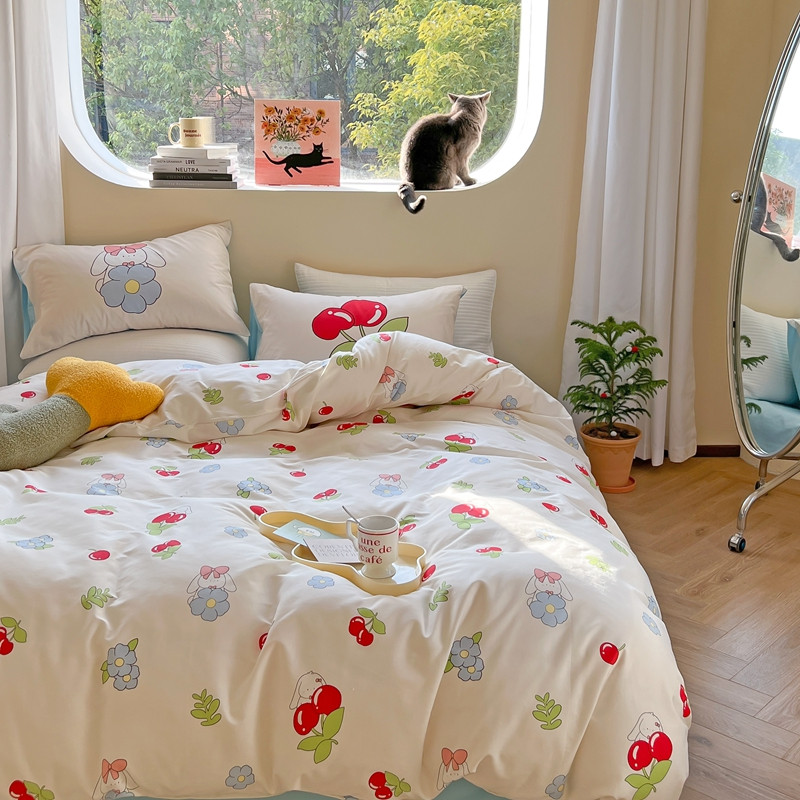 柚子 2023新款13372精梳棉治 愈系列四件套 樱桃小兔