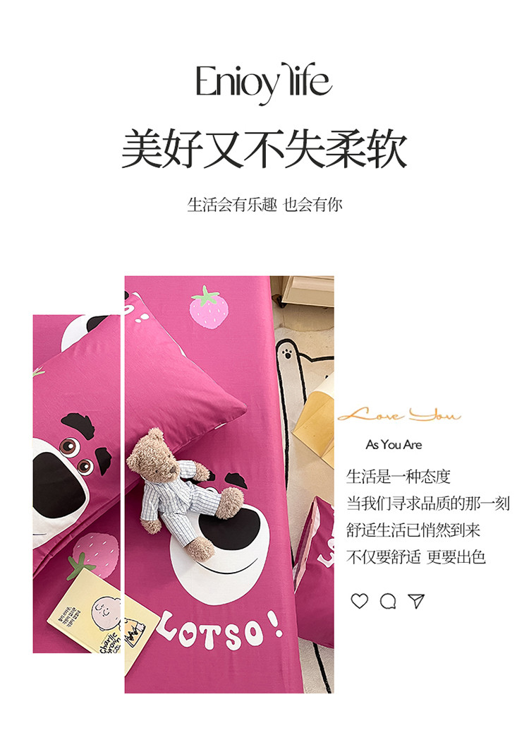 商品名称:2023新款全棉印花小清新系列-单枕套 调皮熊