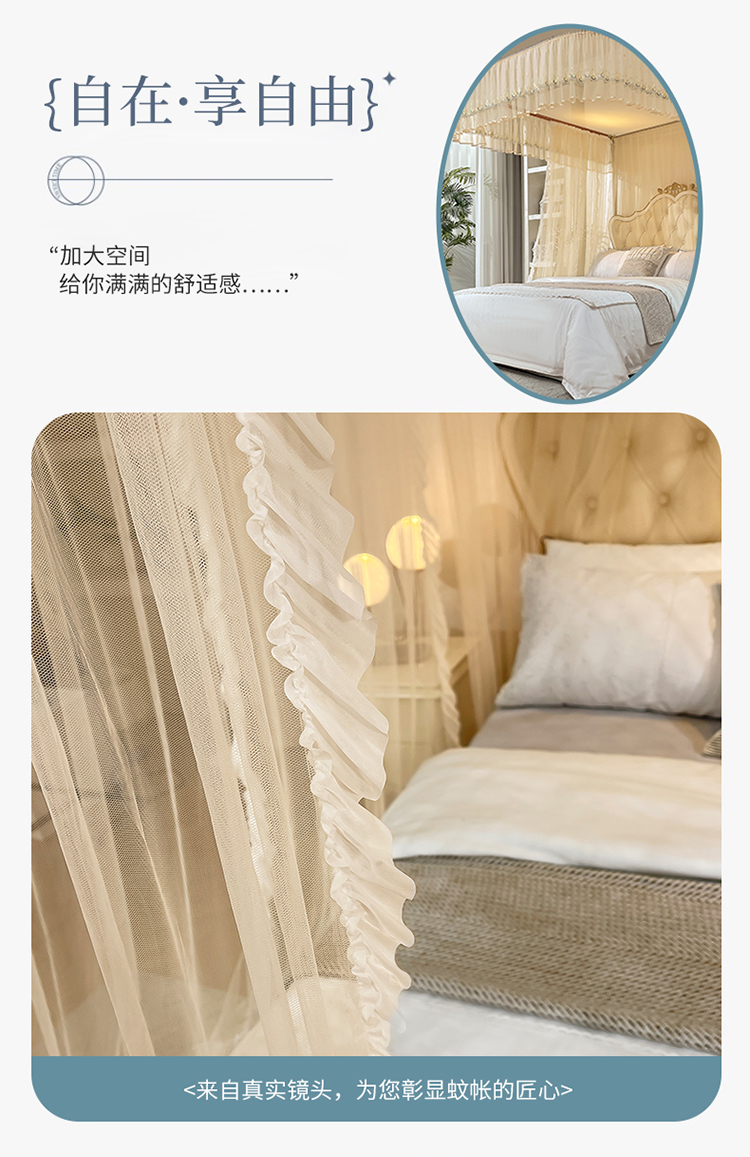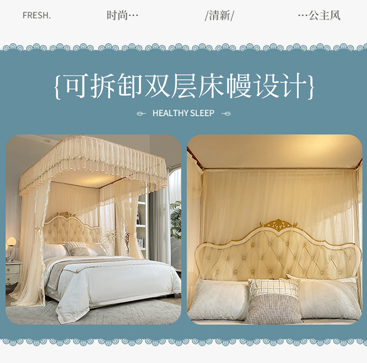 (总)梦尔佳蚊帐 2025新款双层花边床笠式三开门蚊帐-858怜香惜玉系列,优雅黄,富贵白,高级灰,温柔玉,清爽蓝
