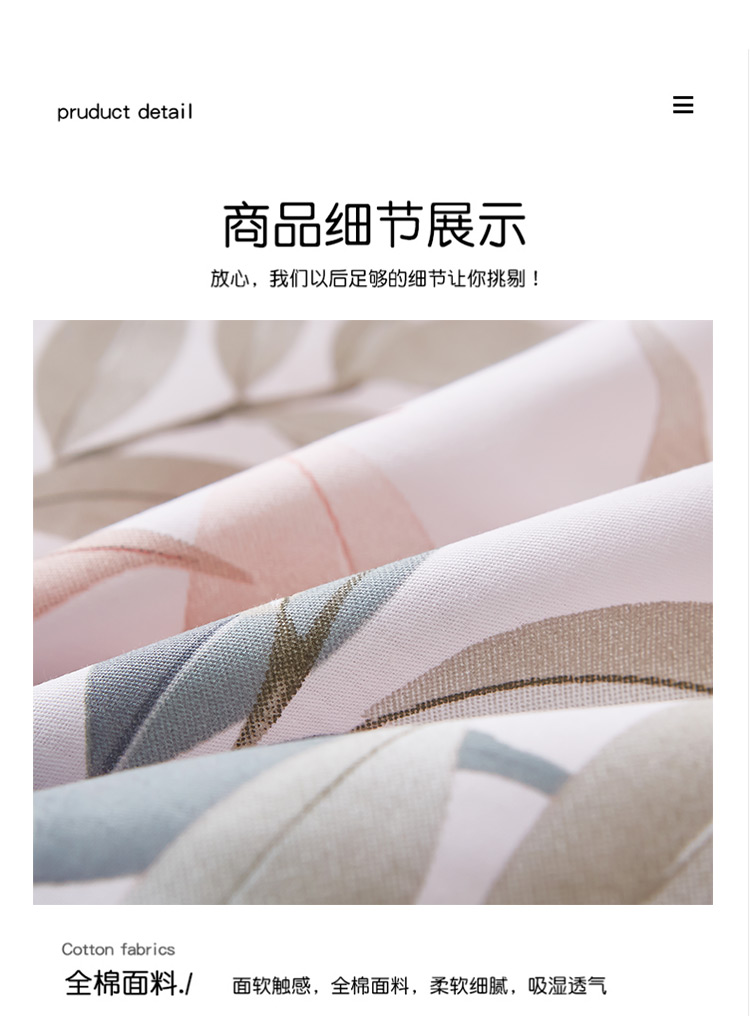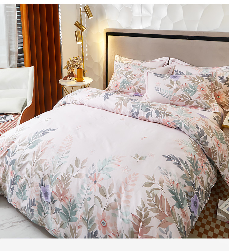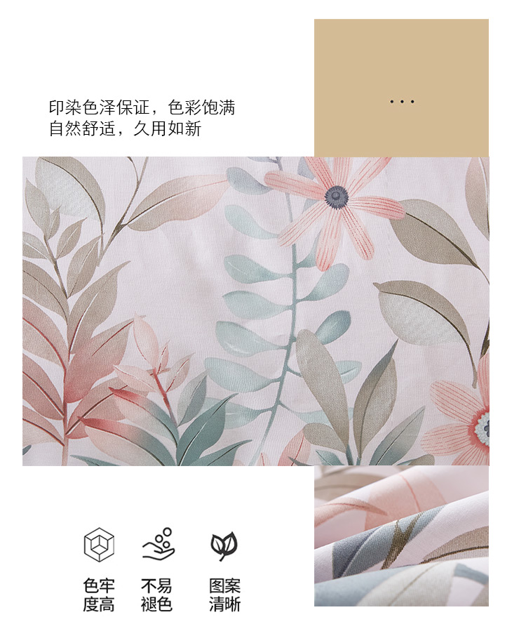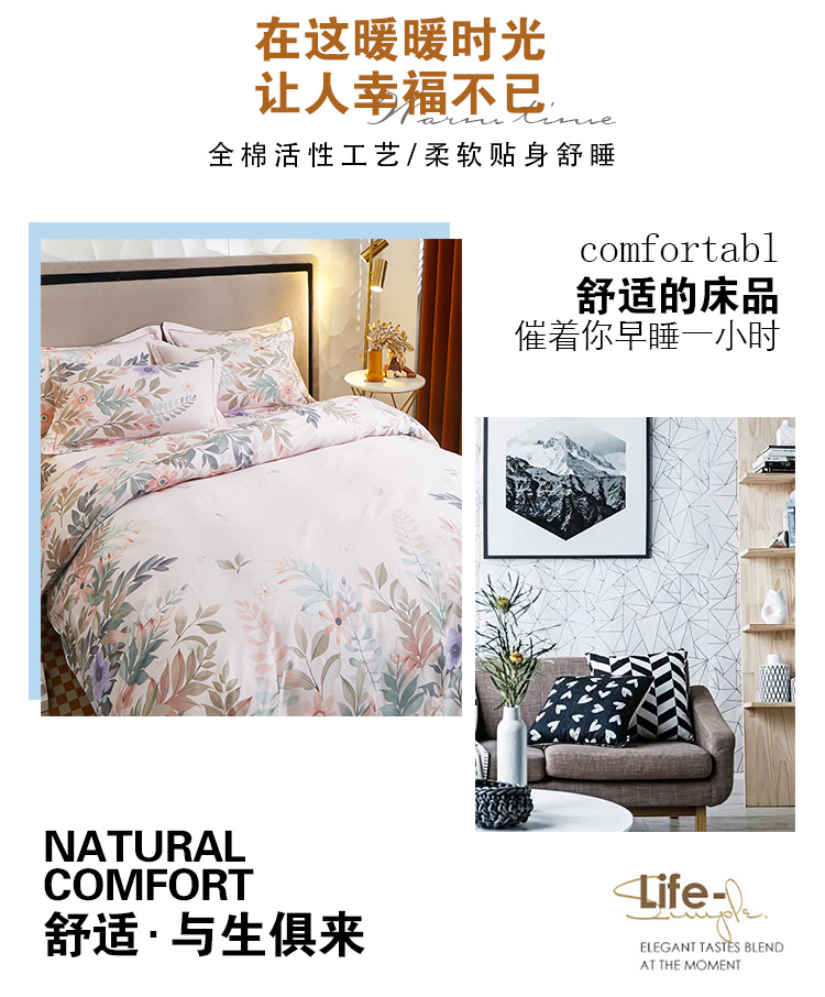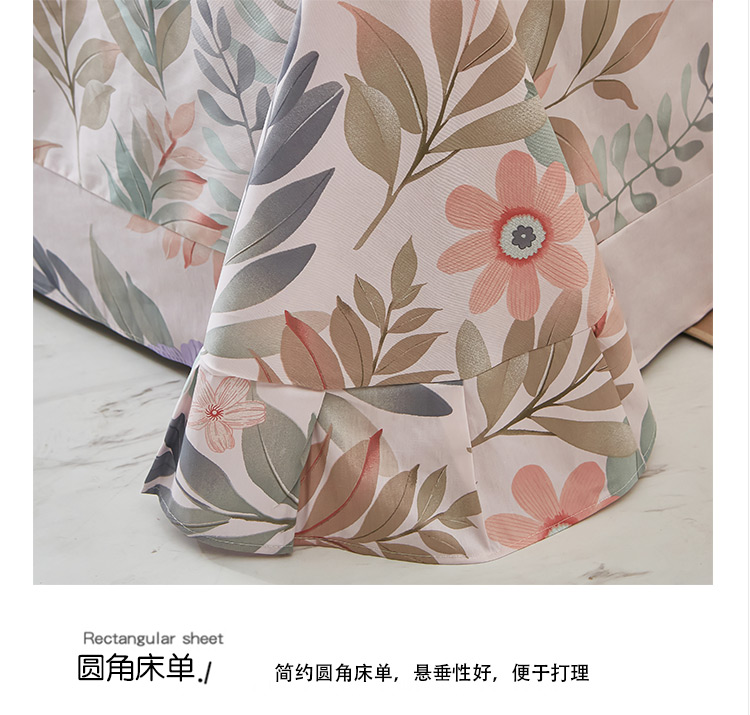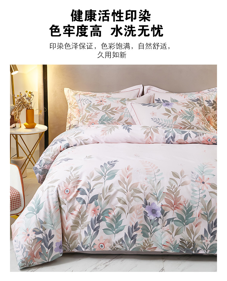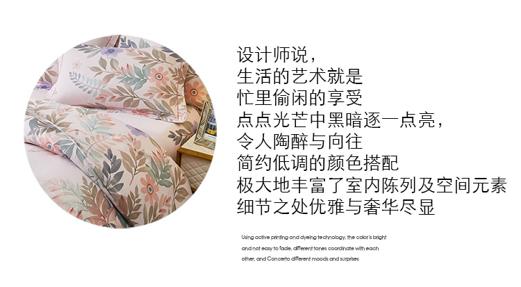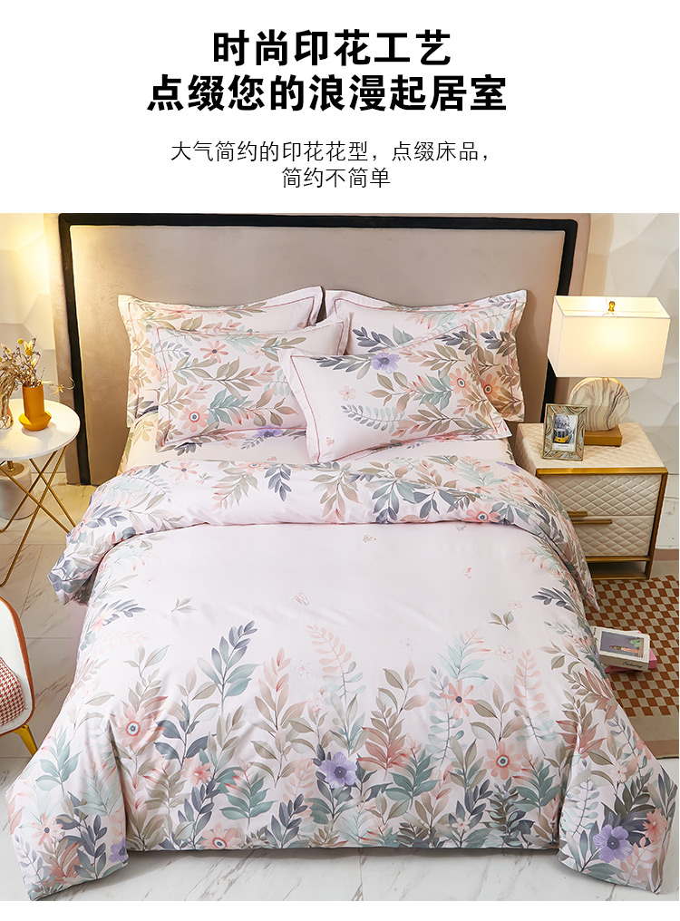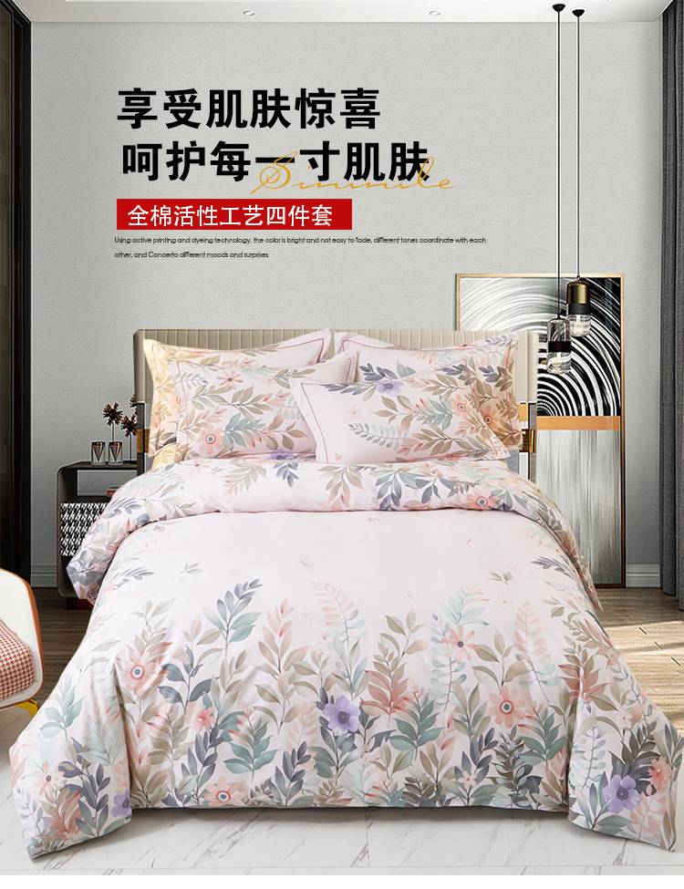 商品名称:雲归梦2023新款13372全棉活性大版印花简约居家四件套随园诗话-粉