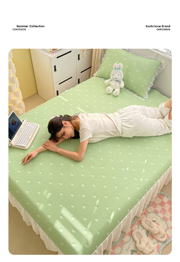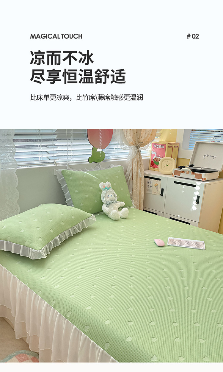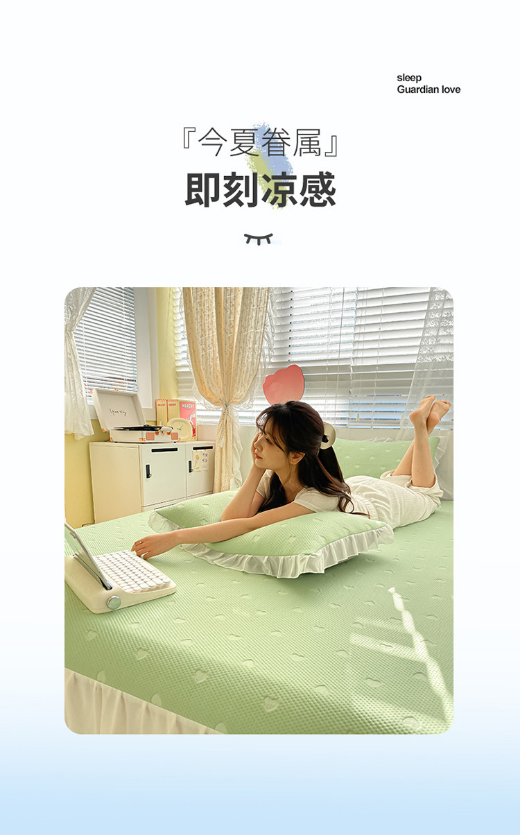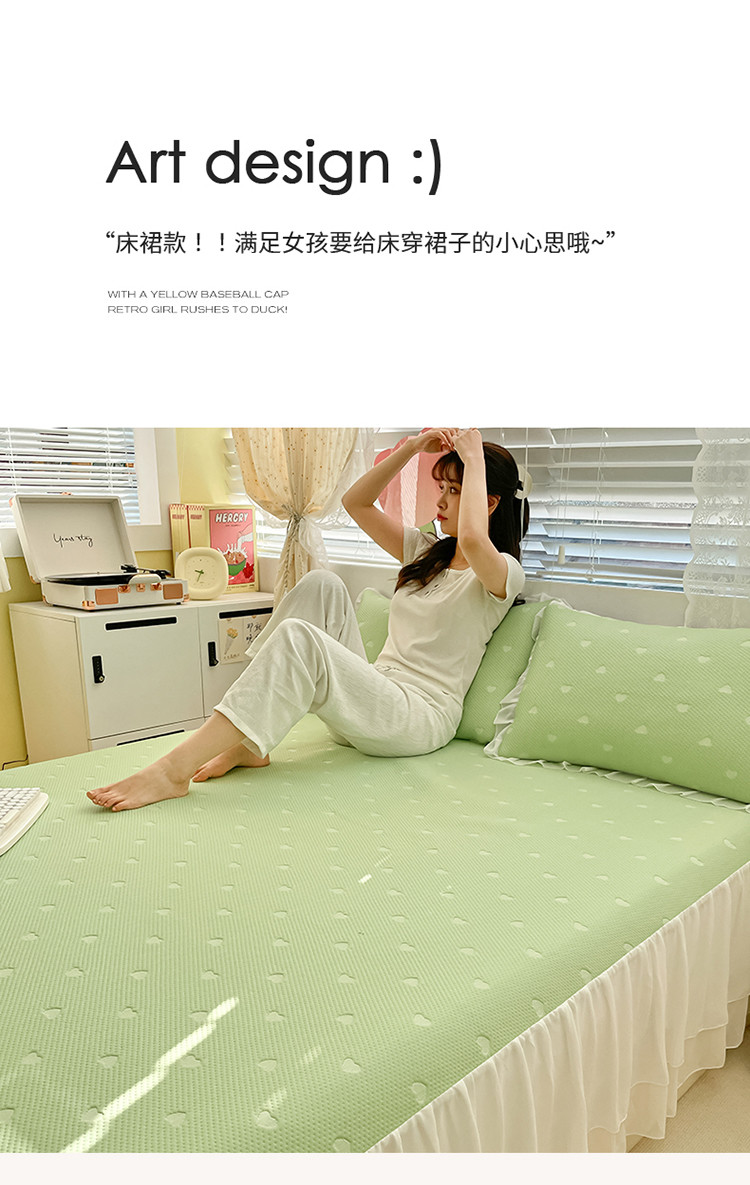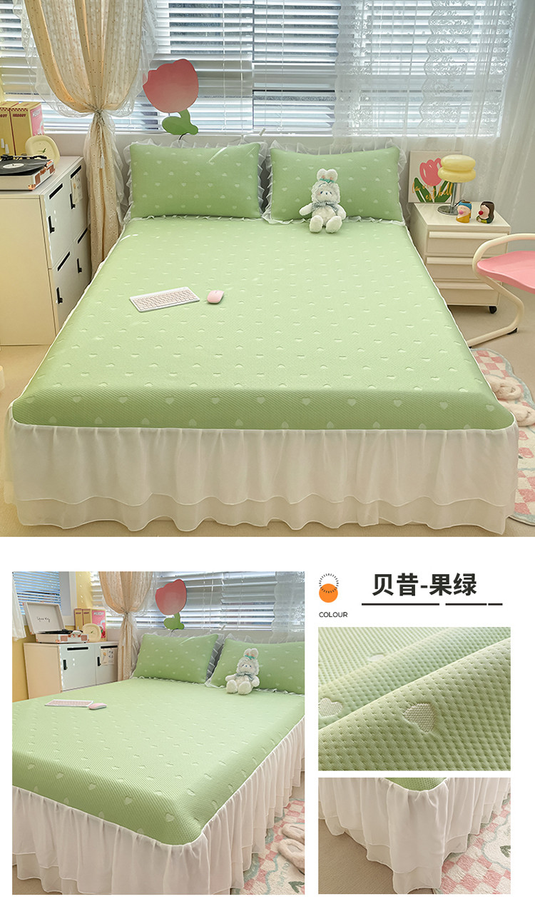 川悦生活2023新款雪纺极速凉感凉豆豆床裙凉席三件套 贝昔-果绿