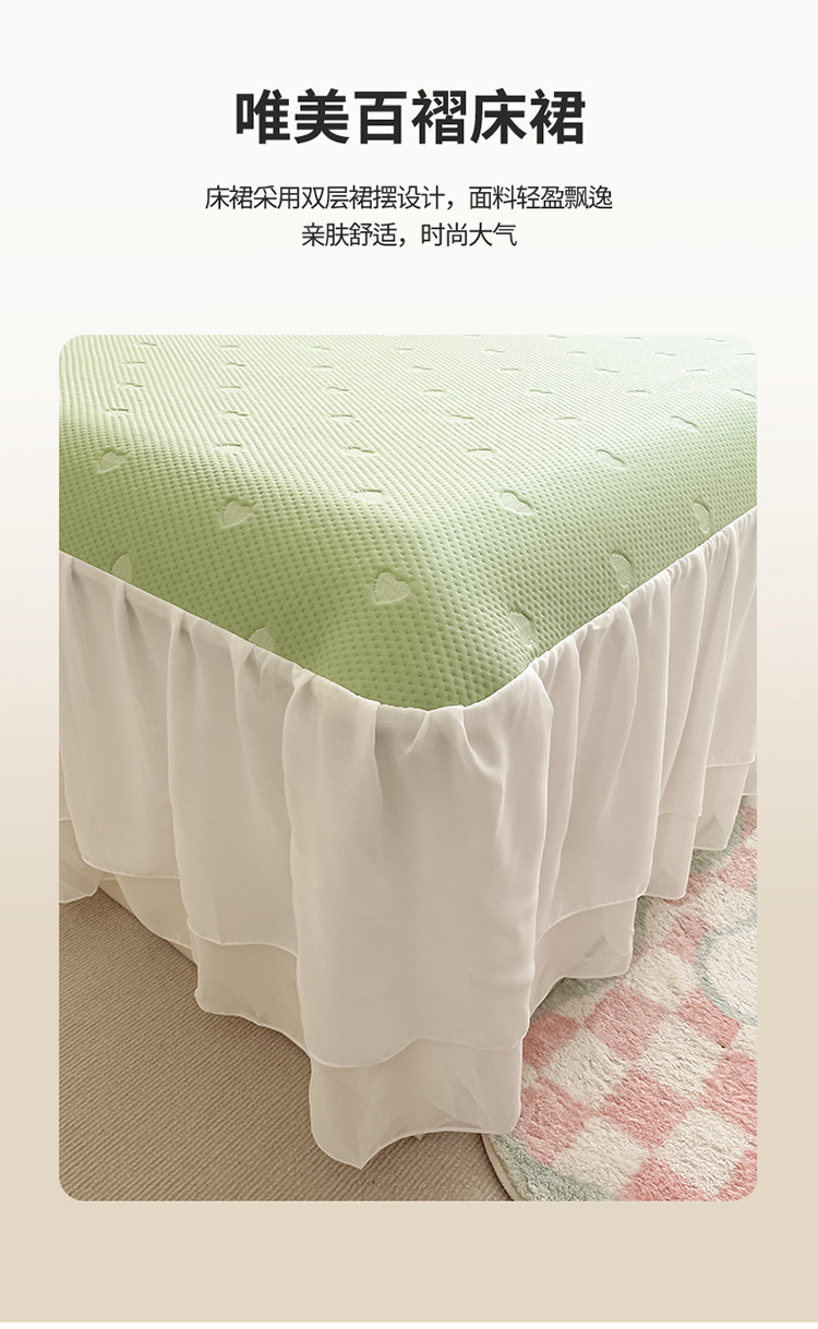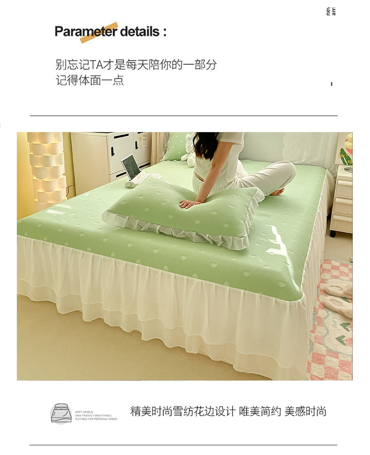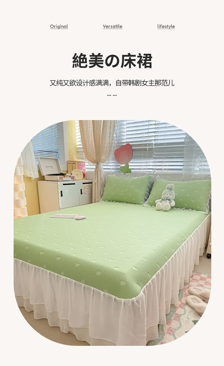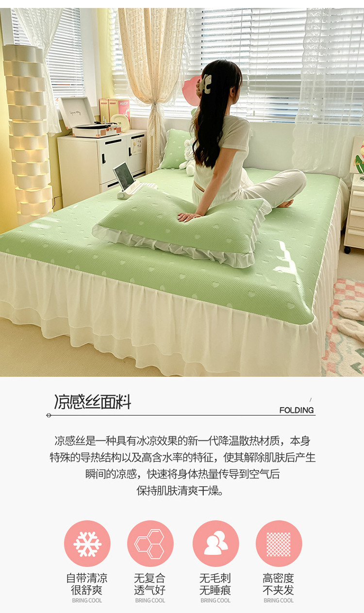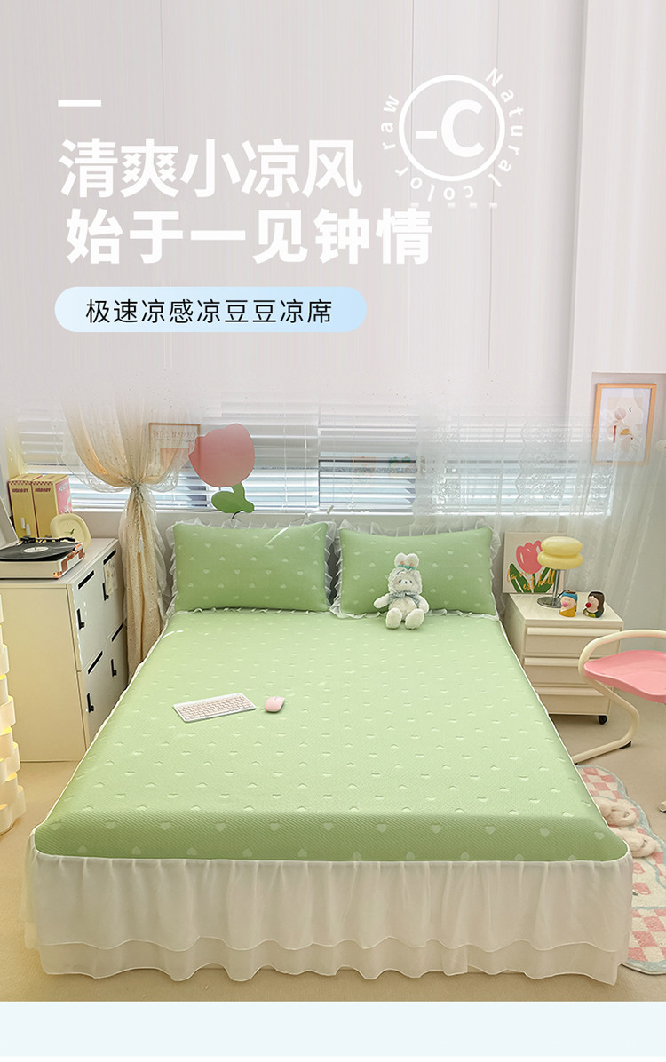 商品名称:川悦生活2023新款雪纺极速凉感凉豆豆床裙凉席三件套 贝昔-果绿