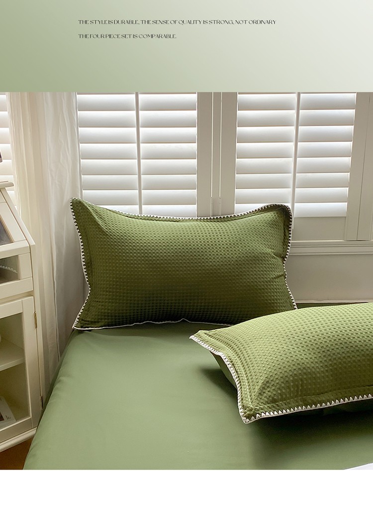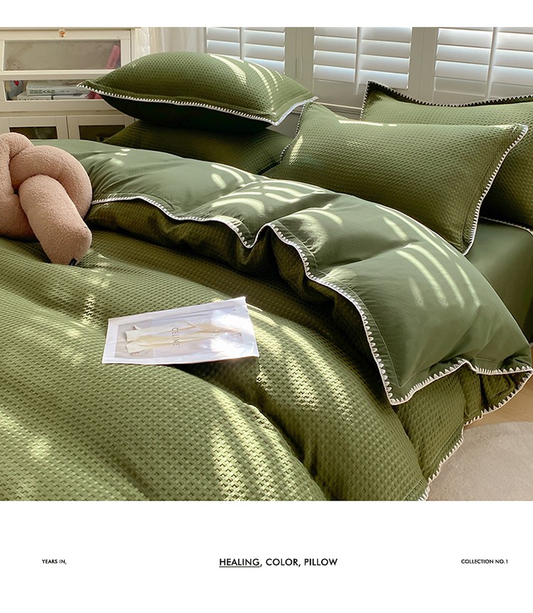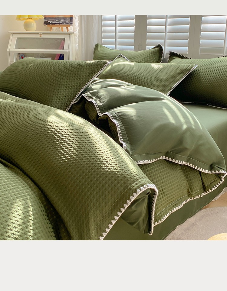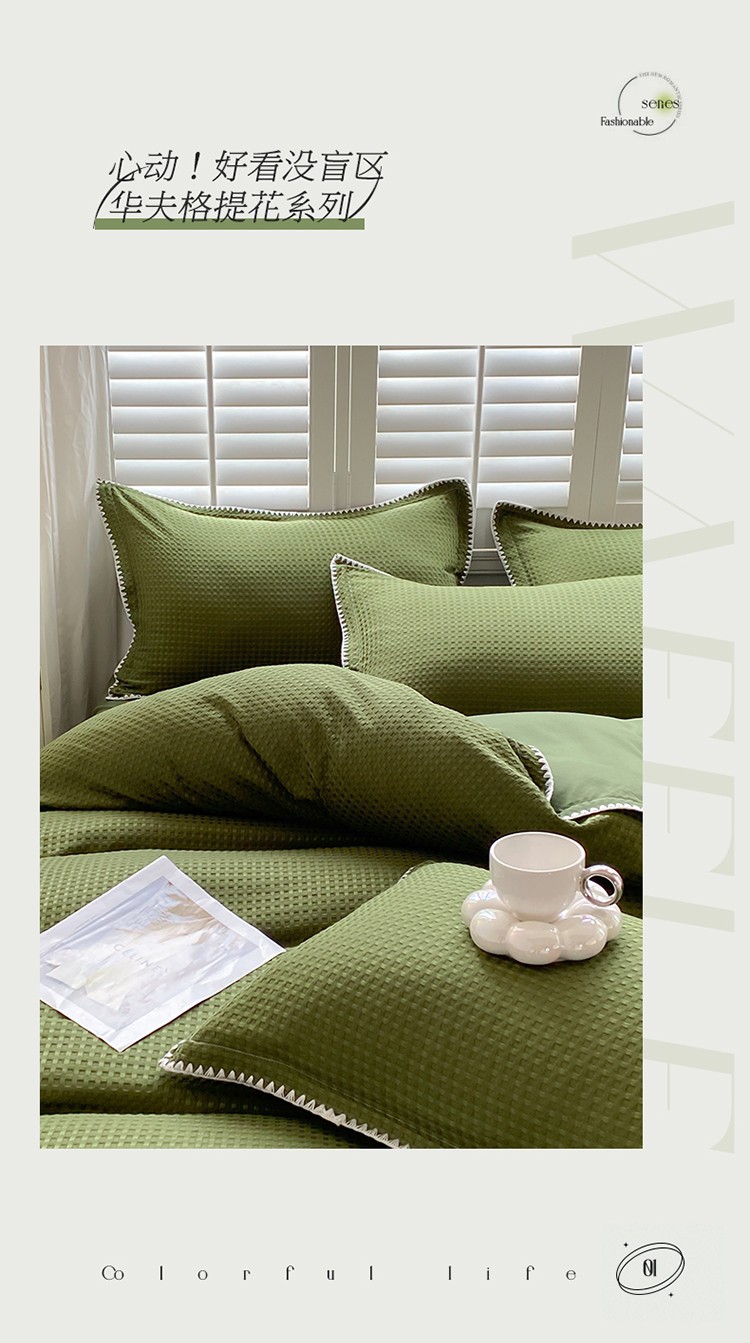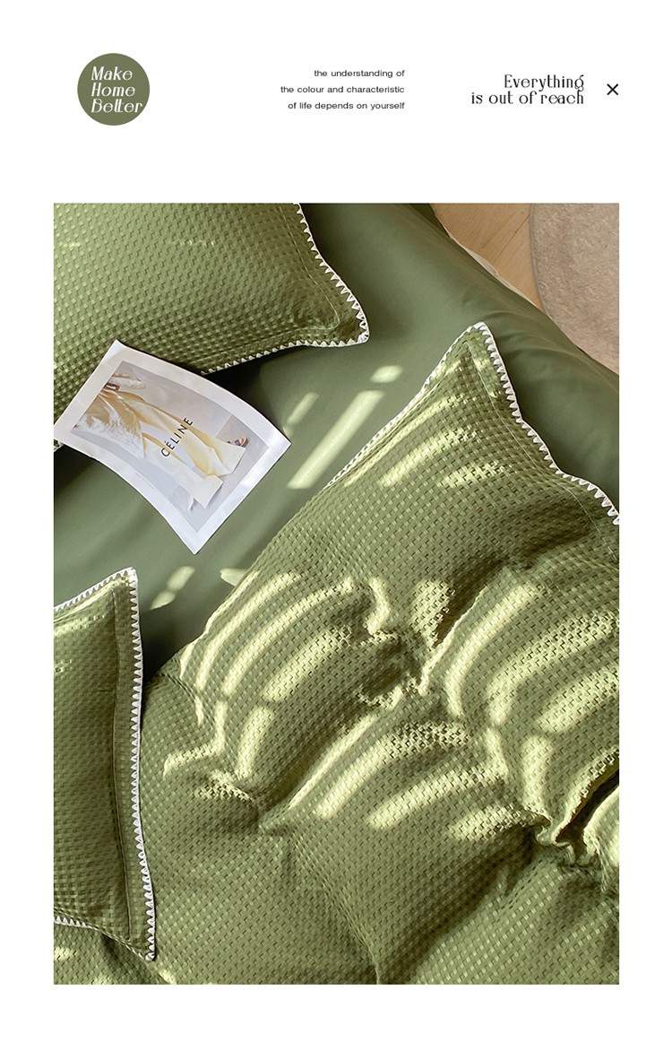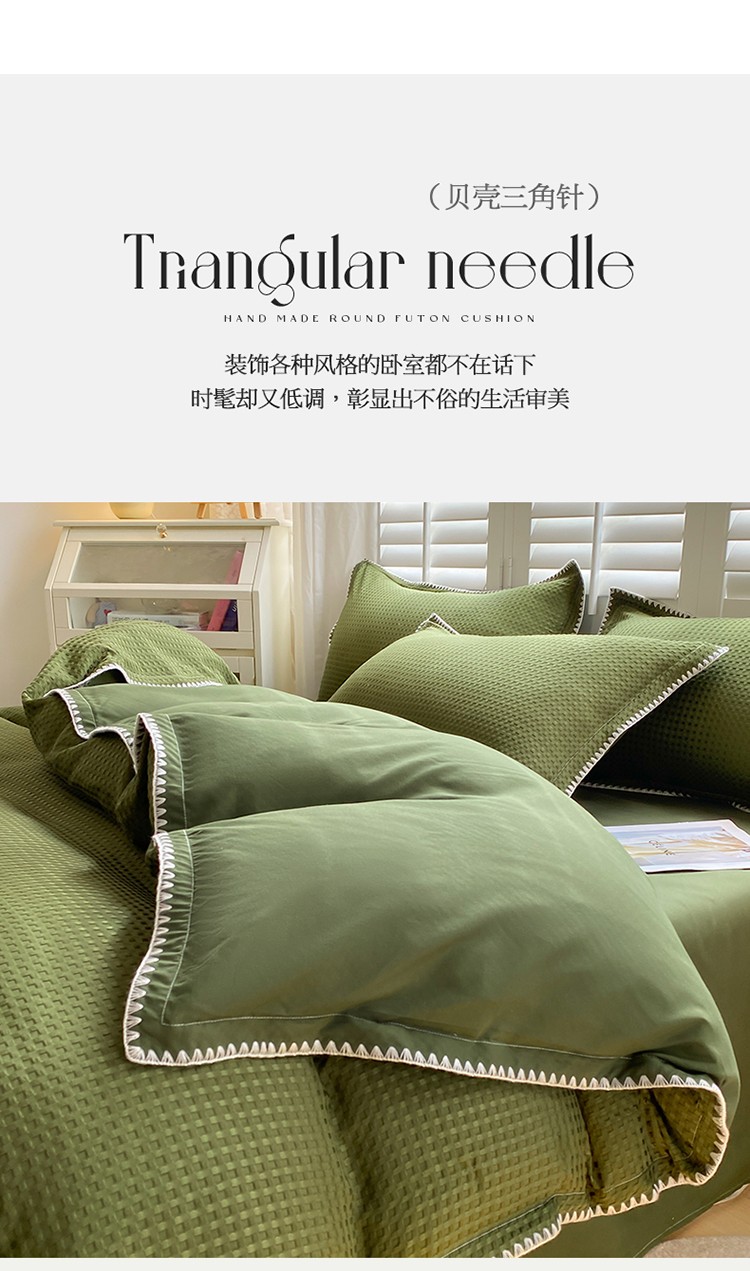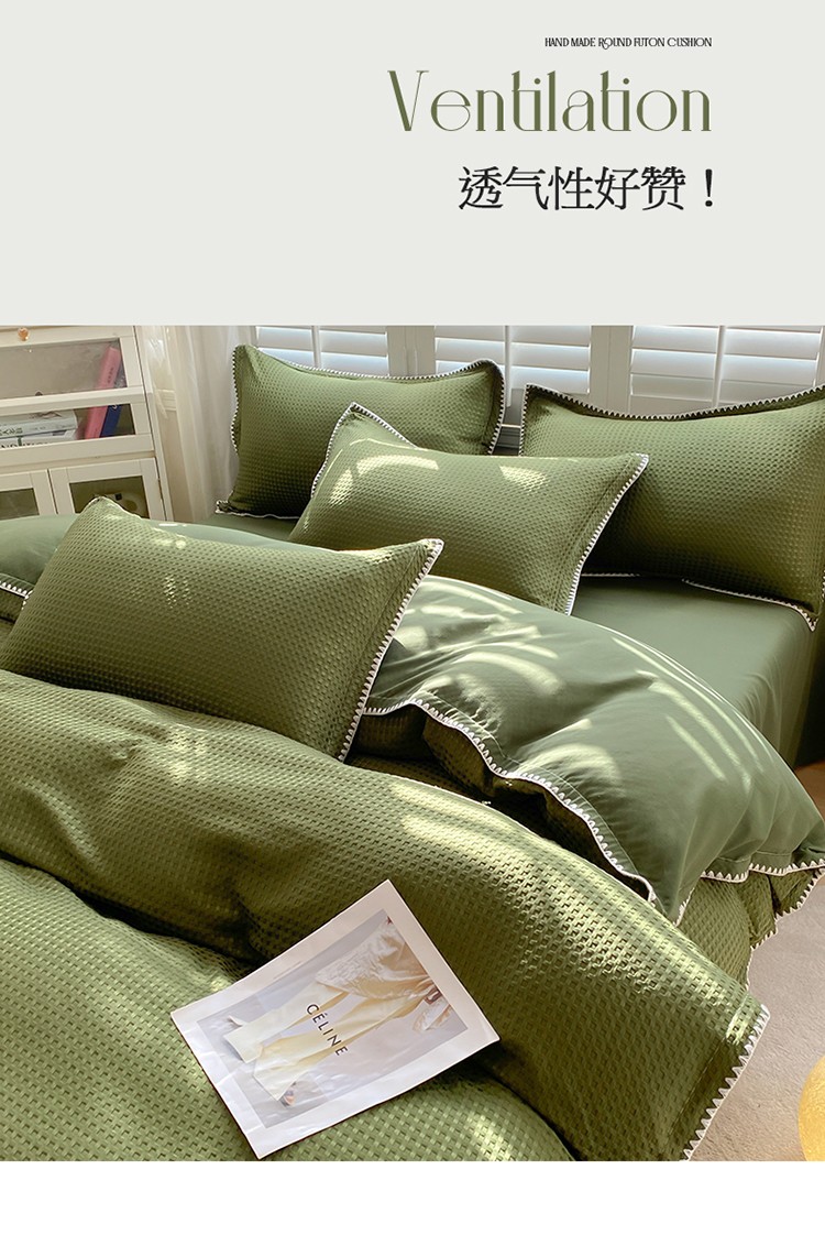 商品名称:席佬大2025新款马卡龙色华夫格提花贝壳边四件套 华夫格-橄榄绿
