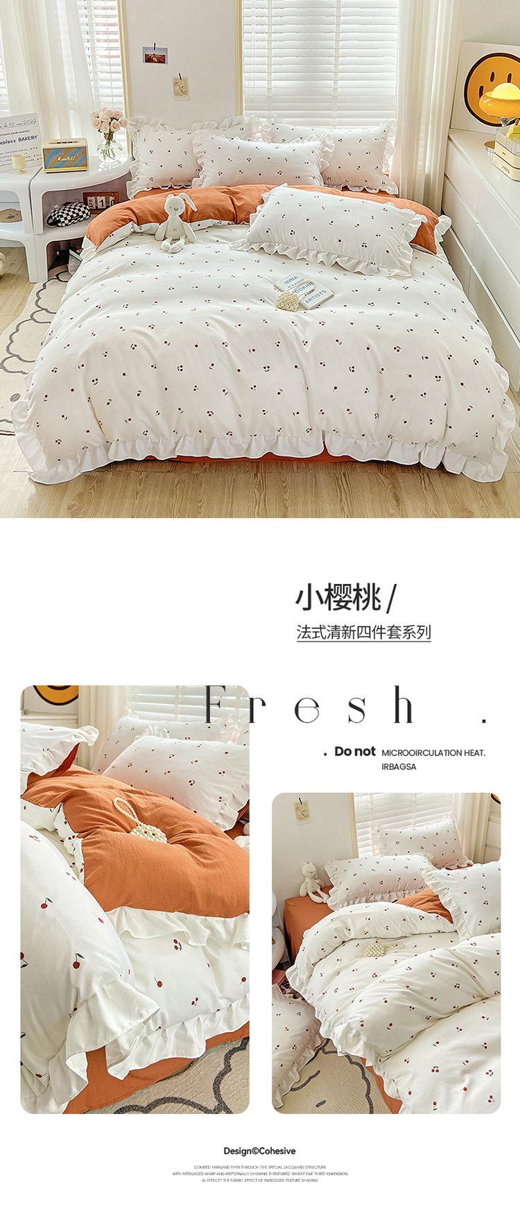 商品名称:澳梵 2023新款【怦然心动】系列-水洗棉麻双层纱四件套 小樱桃