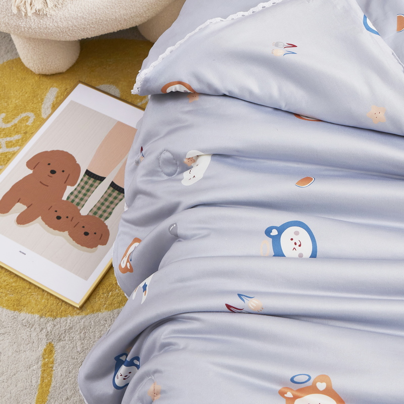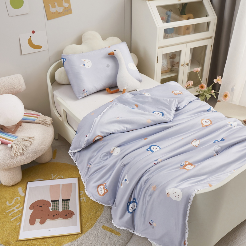 (总)丝涟家居 2025新款A类卡通小清新双面印花凉感丝夏被,玩具乐园,小熊猫,慵懒猫,甜心,企鹅乐园,宇航员,雪纳瑞,恐龙乐园,波点猫,草莓兔,多彩南瓜,恐龙时代,七彩熊,森林兔,小女孩,小挖机,熊猫团团,郁金香兔