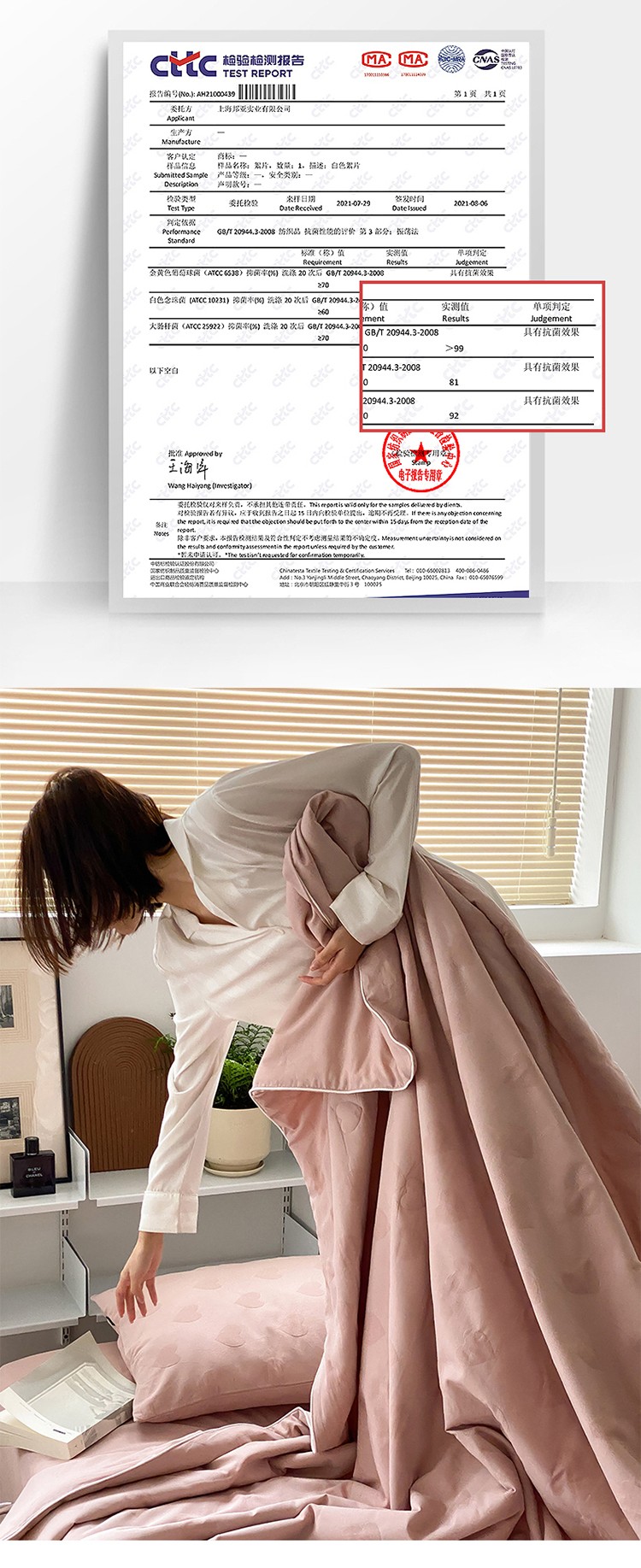 2、通州区市场监督局提醒各电商,近期涉及抗菌防螨、防静电的投诉高发,为了不影响商品正常销售,请对无检验报告支持的页面广告进行整改,谢谢!