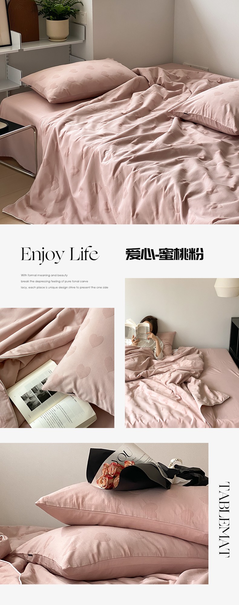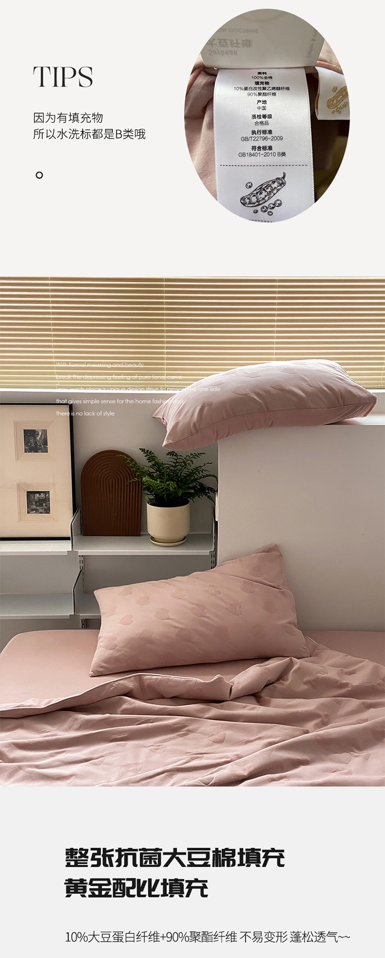 (总)莱福仕家纺 2025新款60支全棉磨毛10A中科抗菌被被子被芯,组合图仅供展示不可下单,富山白,蔷薇粉