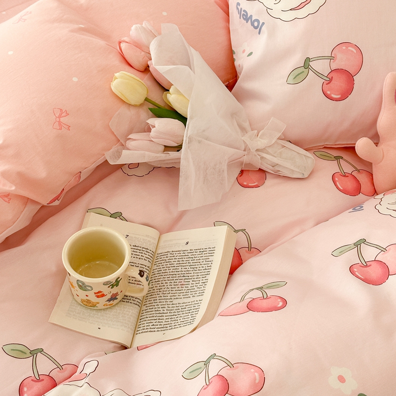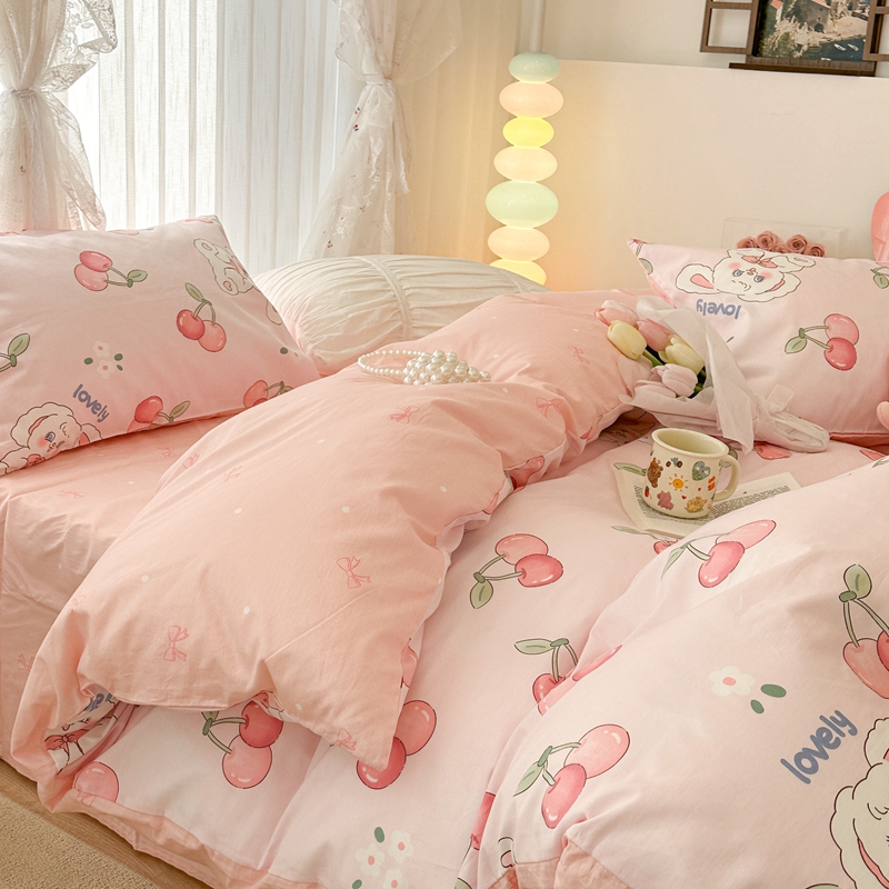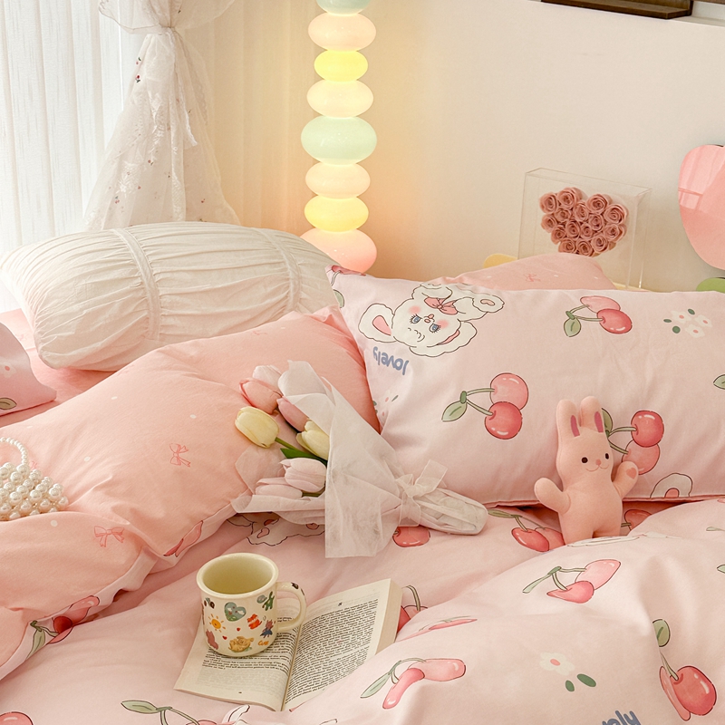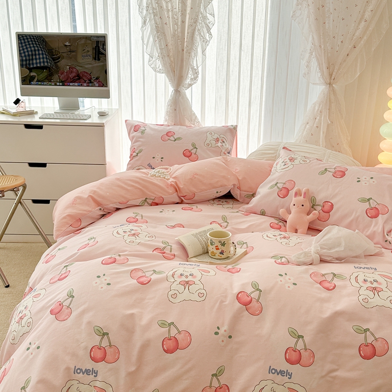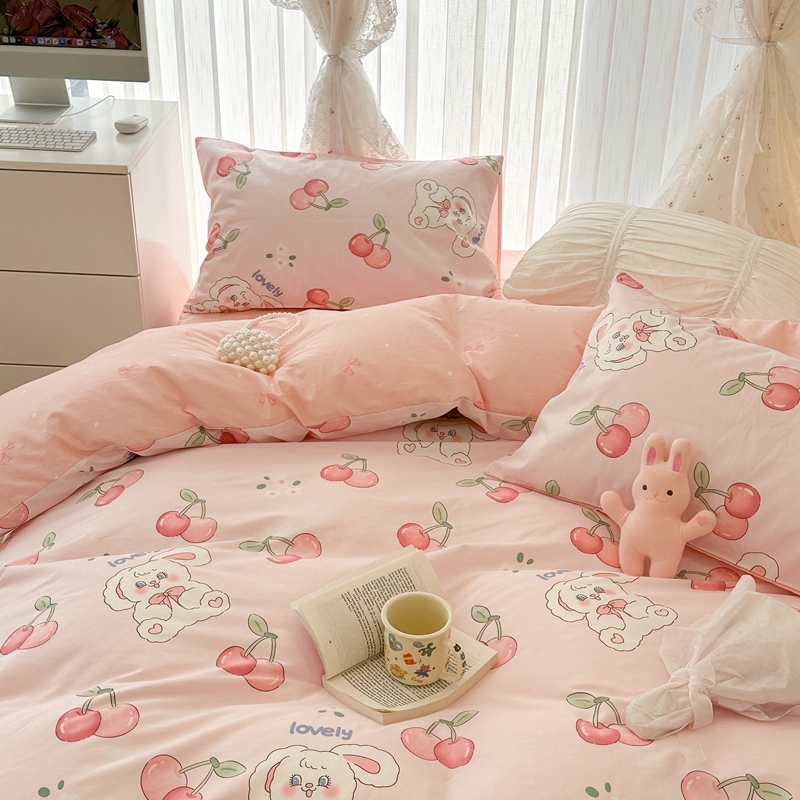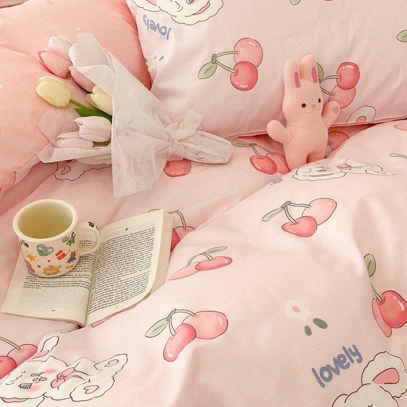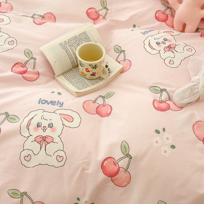 昔可2023新款3月春日全棉四件套 红樱桃小兔几