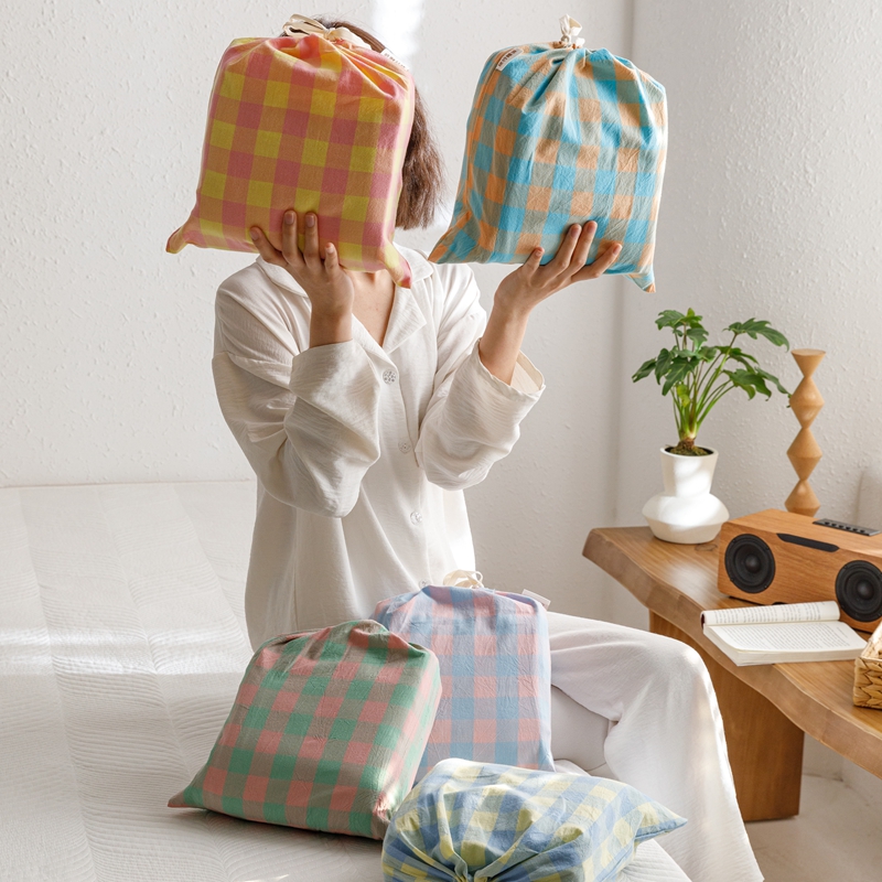 (总) 西西家居2023新款日系色织水洗棉睡袋,朵拉粉,朵拉蓝,朵拉绿,粉黄格,粉蓝格,粉绿格,桔蓝格,蓝黄格