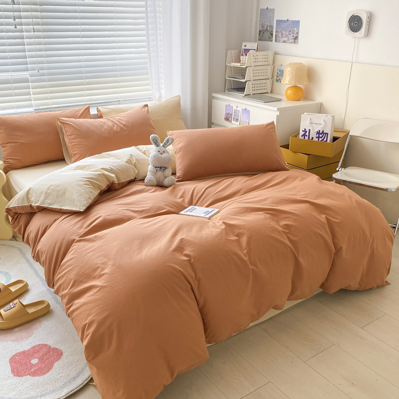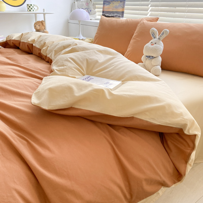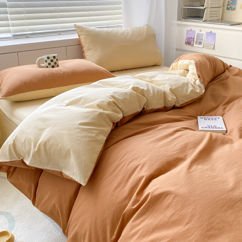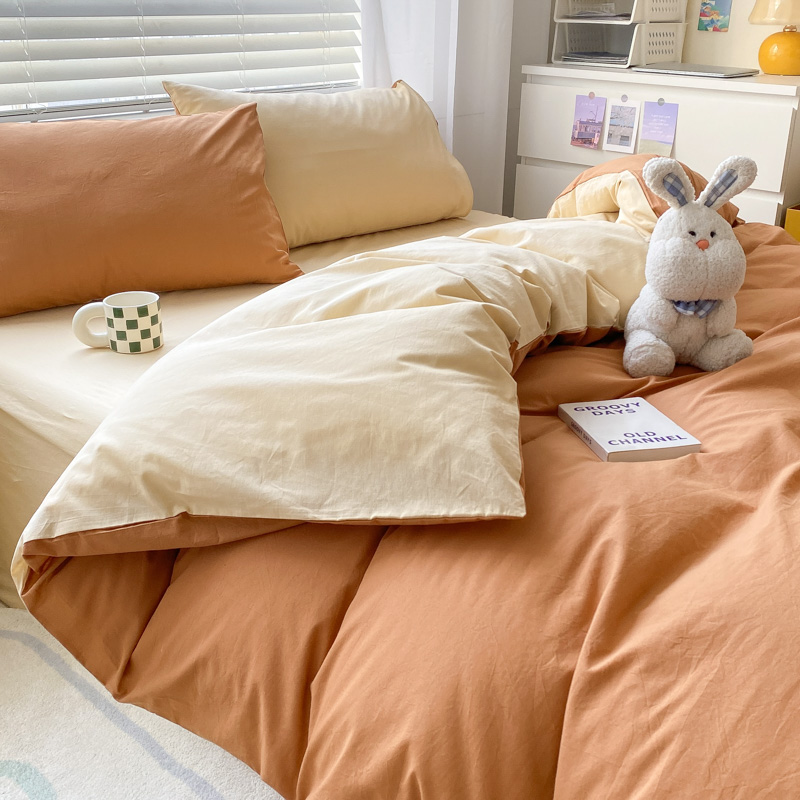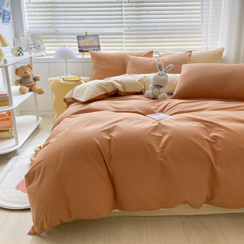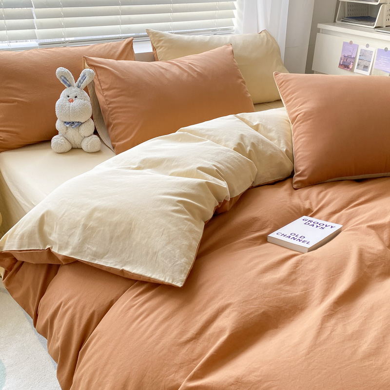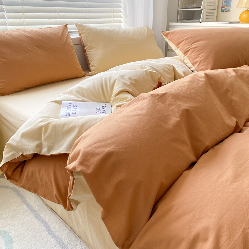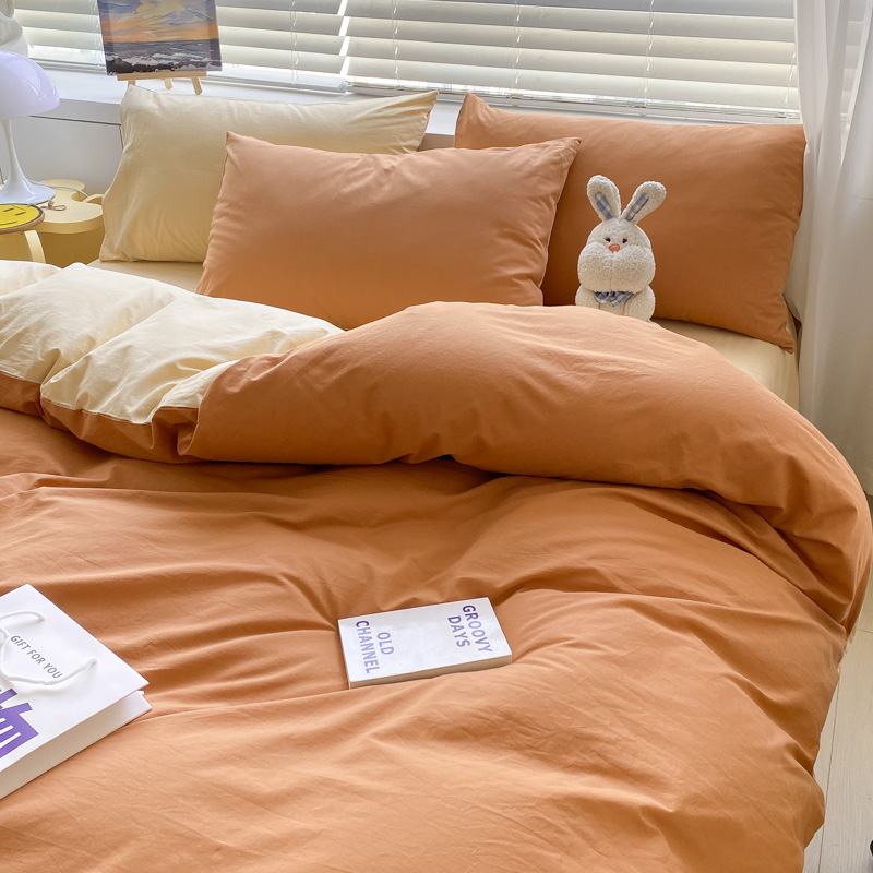 当前位置: 91家纺网 > 商品网购 > 床品套件 > 四件套 > 水洗棉四件套 > 盼季家纺 2023新款纯色双拼简约水洗棉四件套 南瓜焦糖