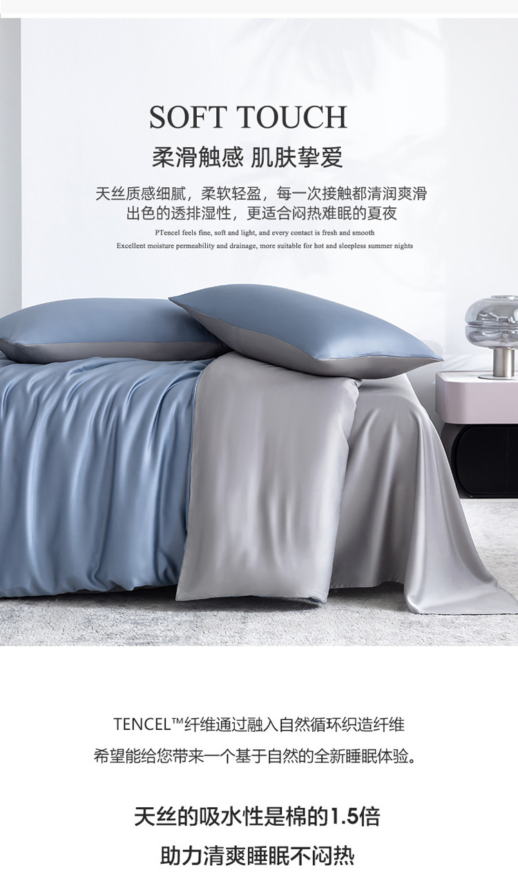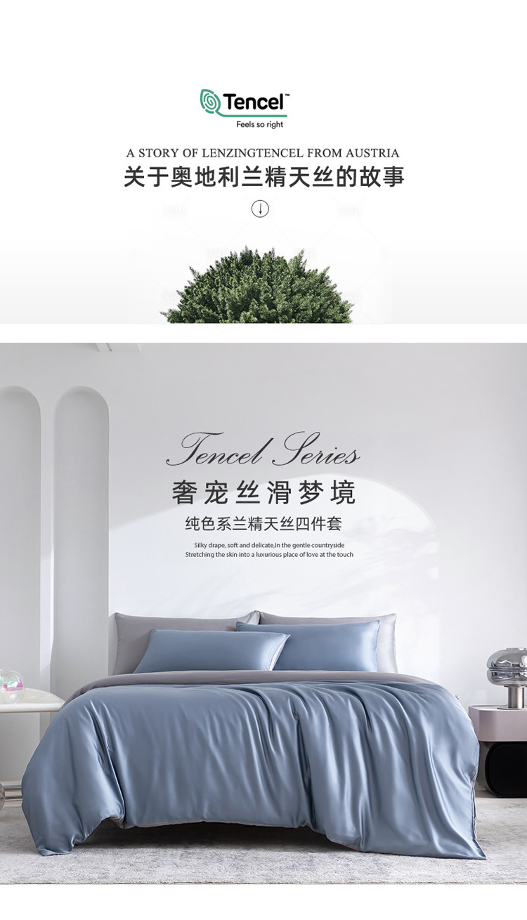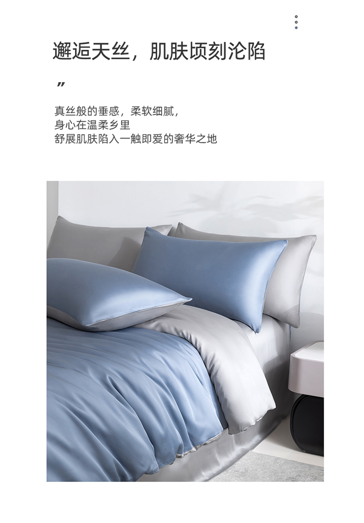 当前位置: 91家纺网 > 商品网购 > 床品套件 > 四件套 > 莱赛尔四件套 > 轩和新款50支纯色天丝四件套单品被套床单床笠枕套系列 劳伦蓝+伯爵灰