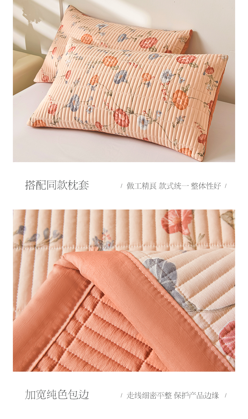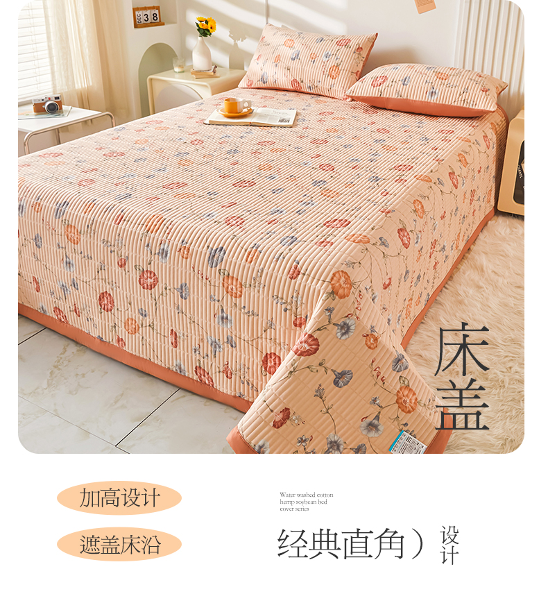 商品名称:水洗棉麻床盖大豆纤维夹棉加厚宿舍铺盖两用床单床裙保护垫牵牛花