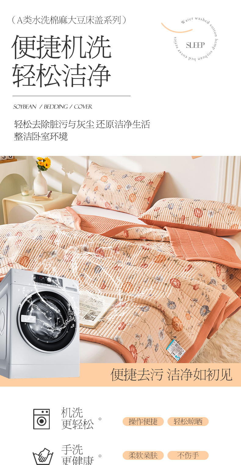 150*230cm【0.9-1.2床A类水洗棉麻床盖】