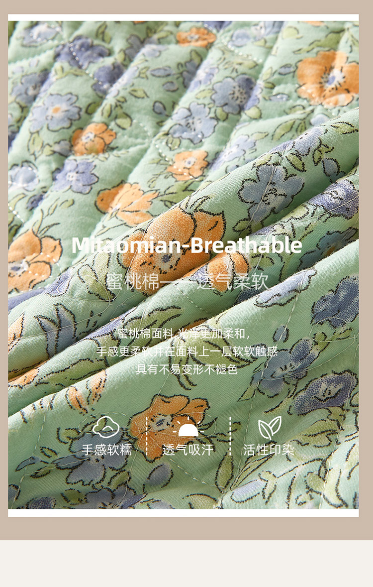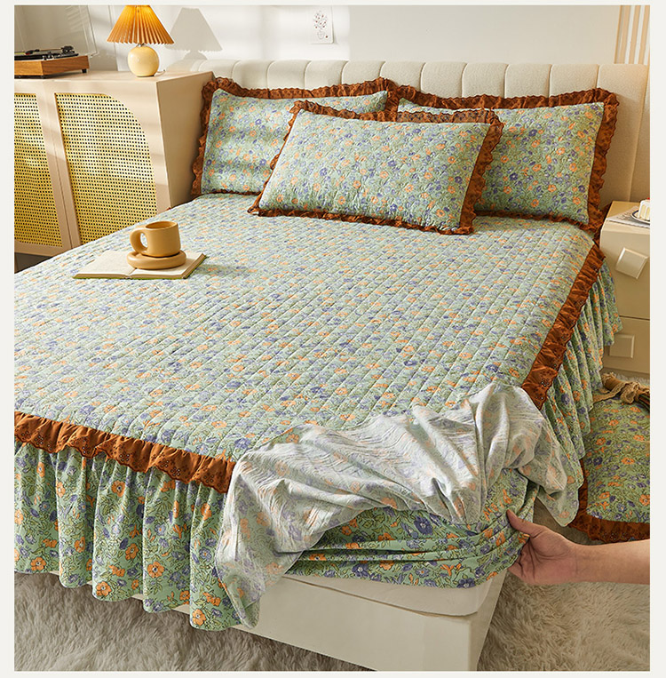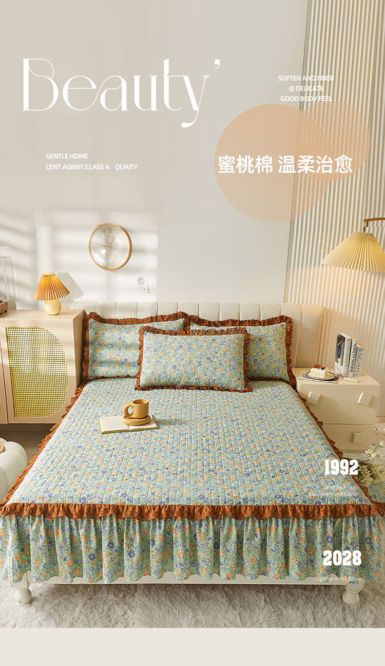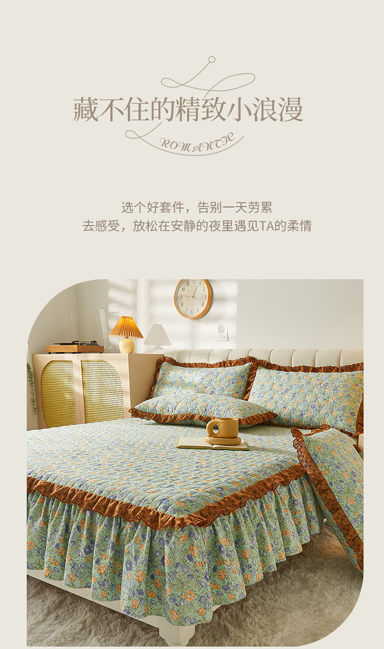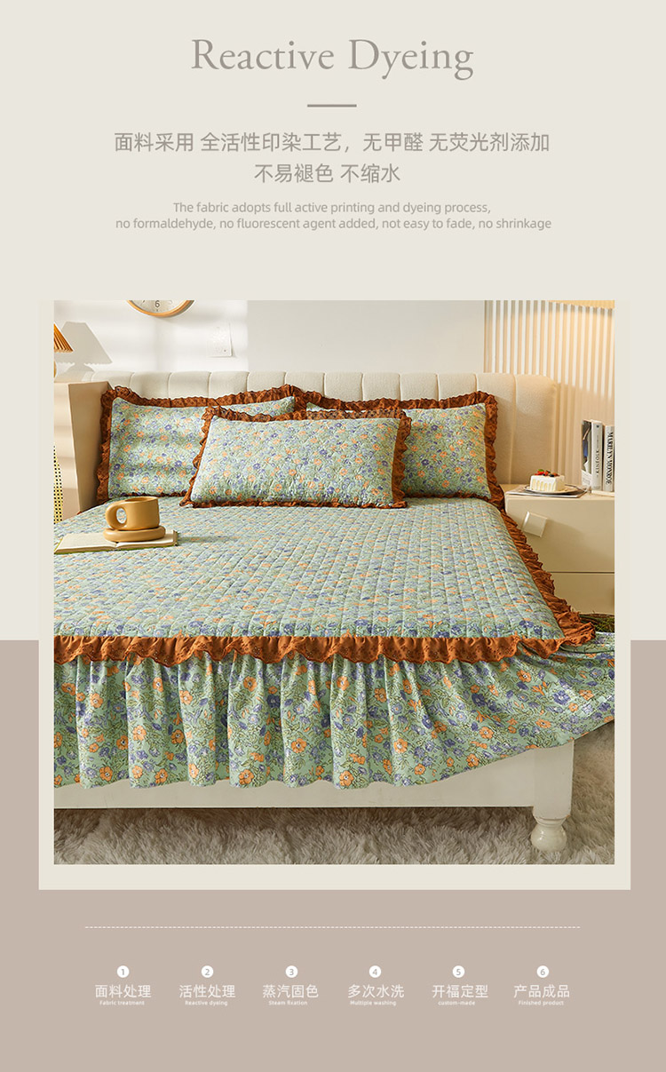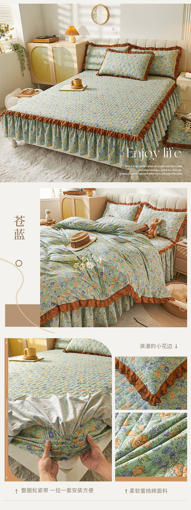 • 91家纺网 家纺一手货源 找家纺 恋尚 2023新款蜜桃棉印花床裙式床笠 苍蓝
