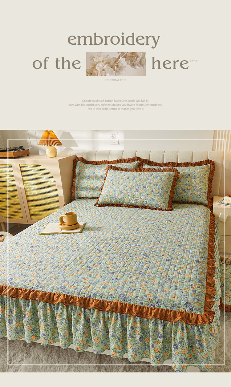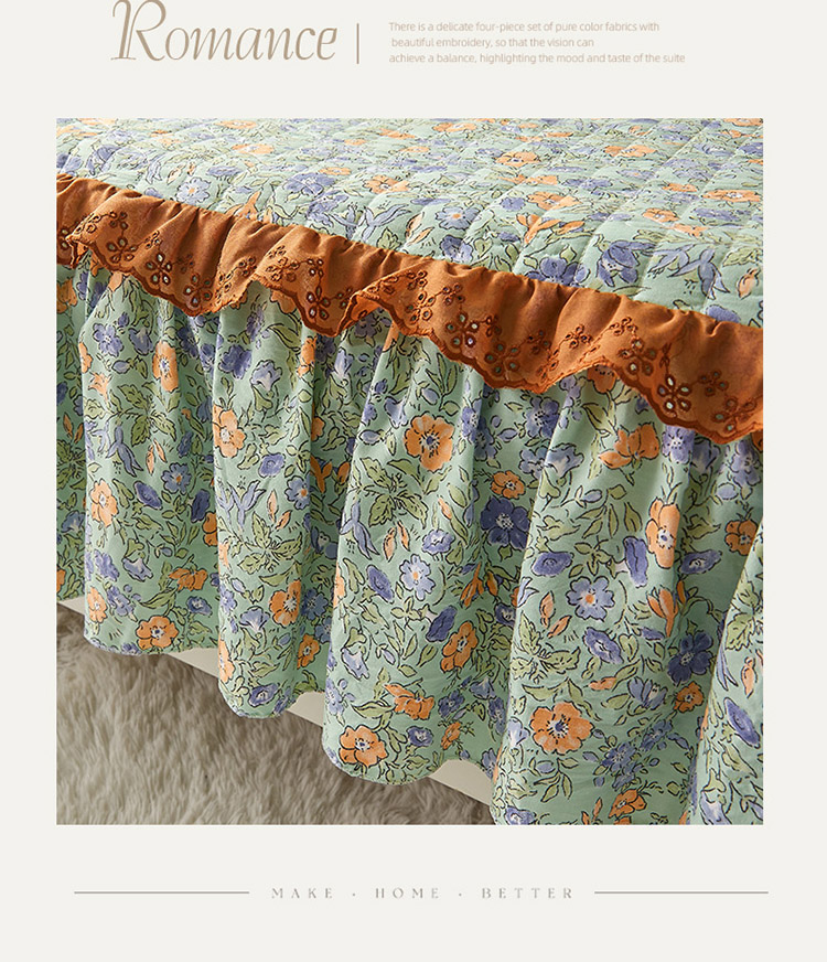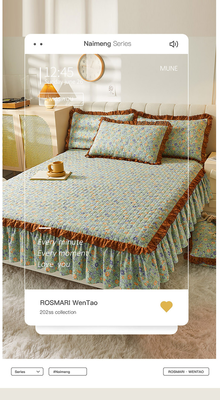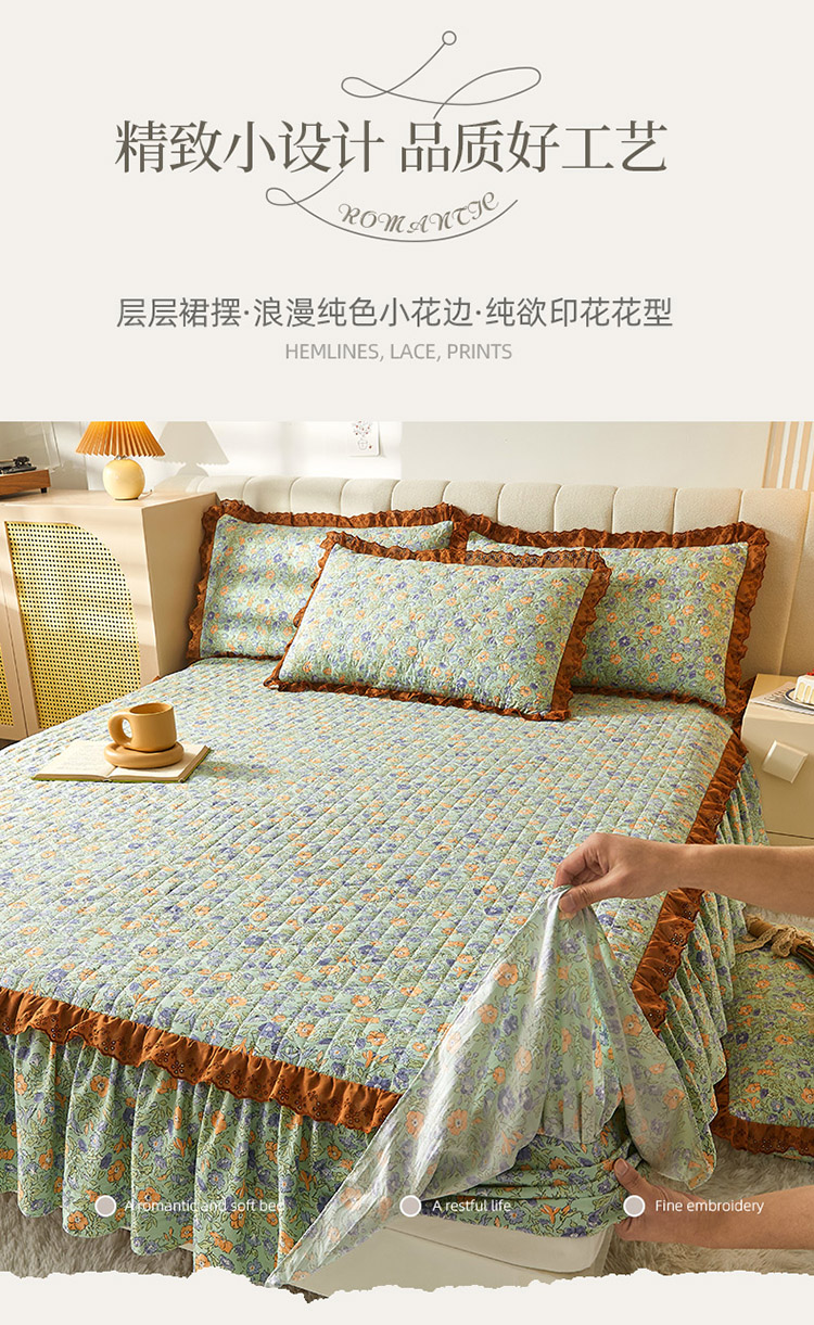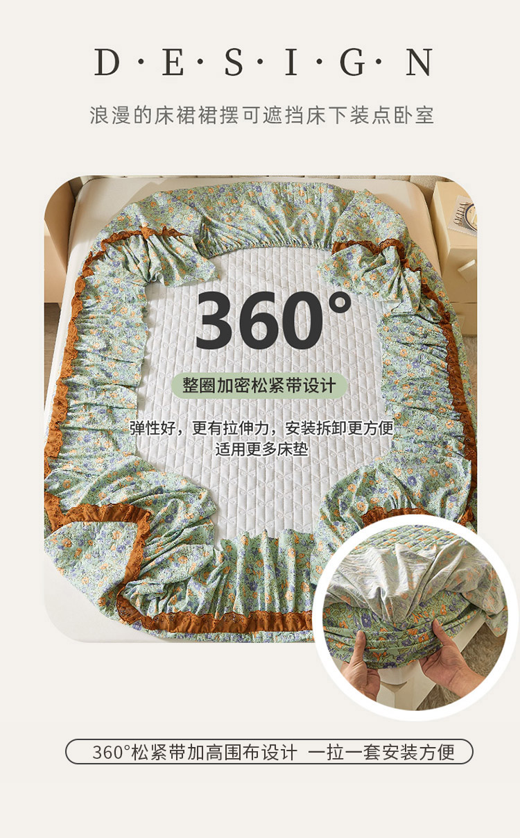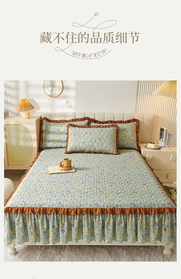 恋尚 2023新款蜜桃棉印花床裙式床笠 苍蓝