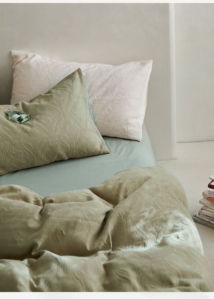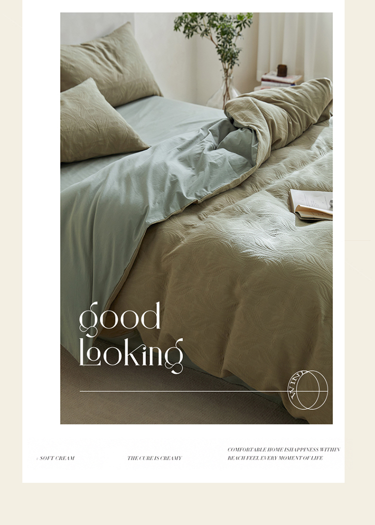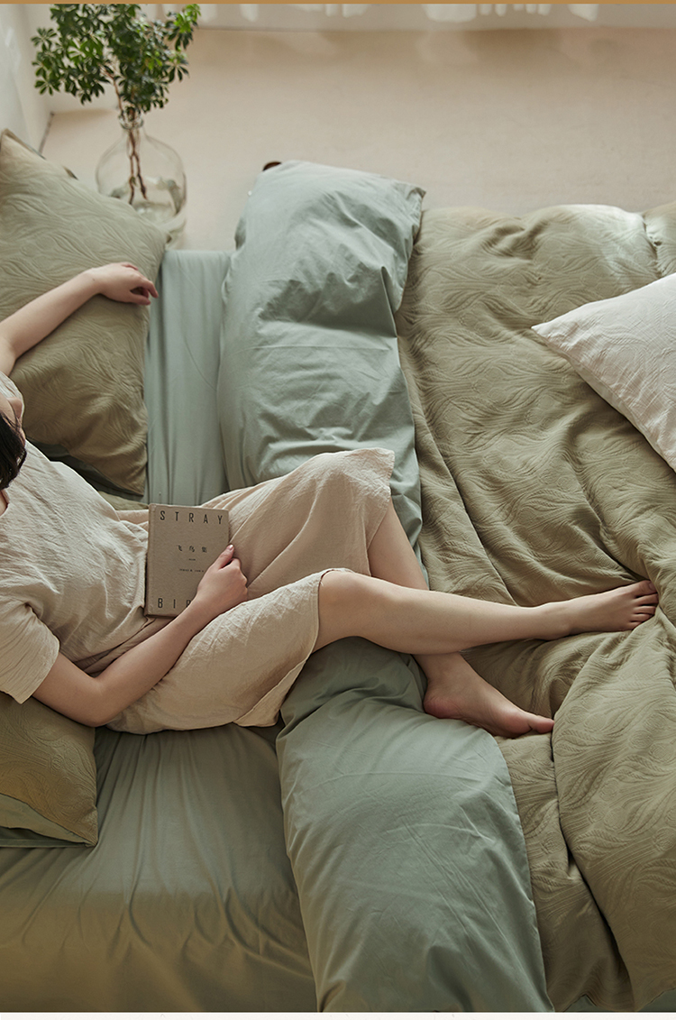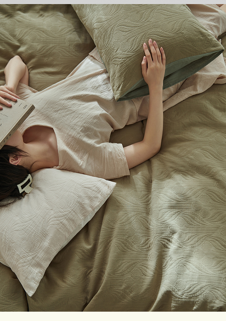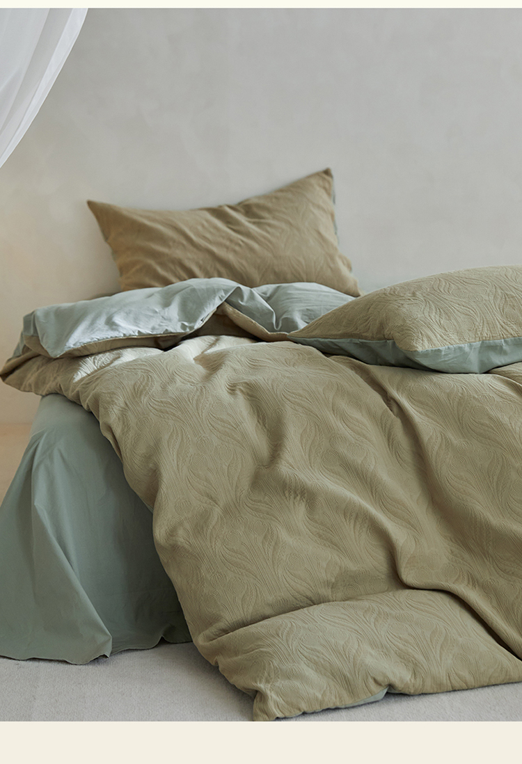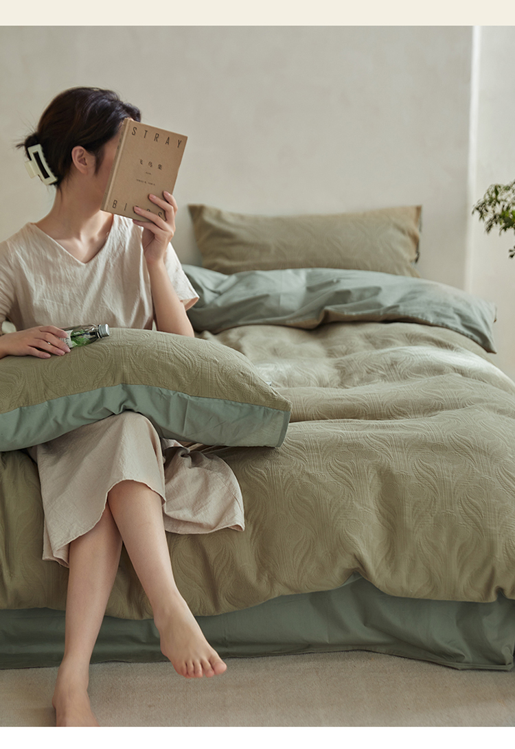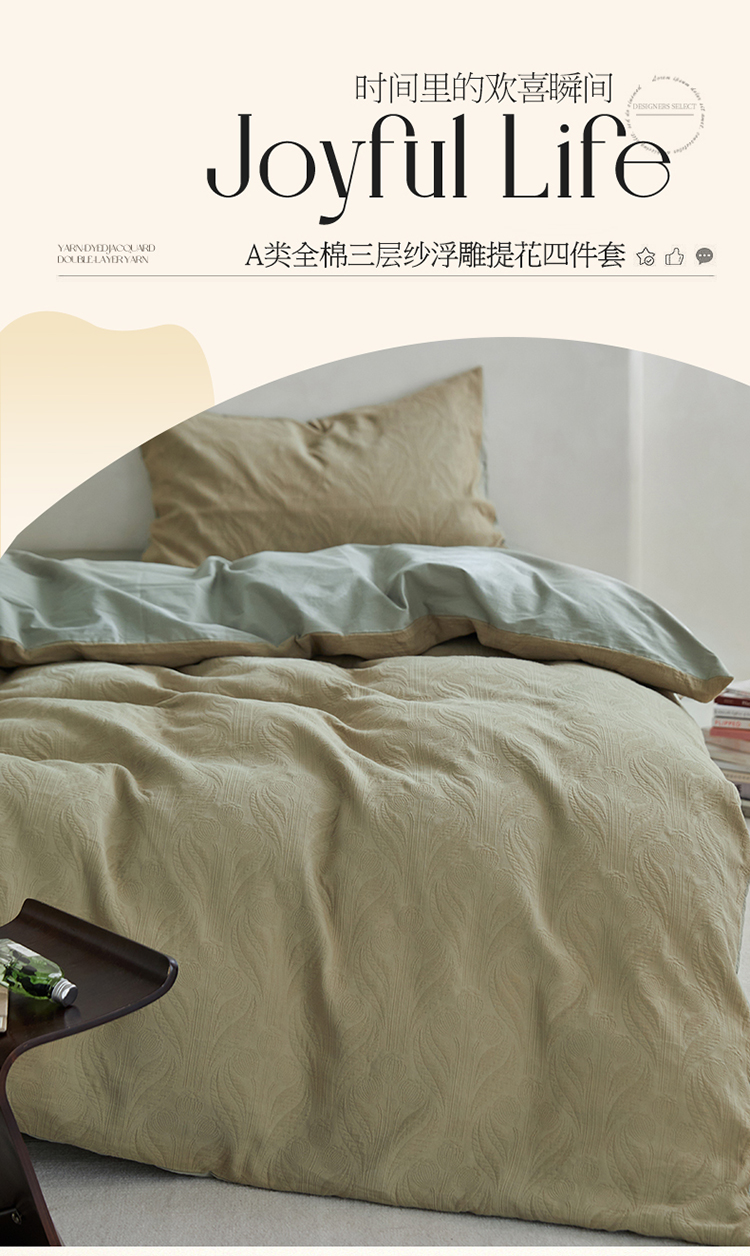 名品优仓 2023新款全棉三层纱浮雕提花四件套-思语 松霜绿