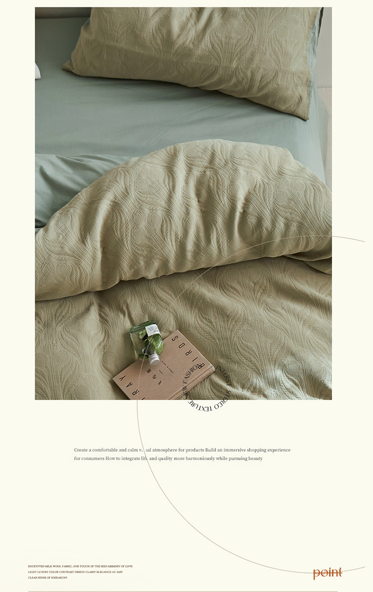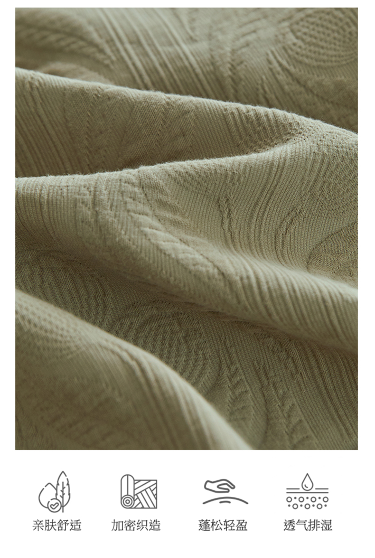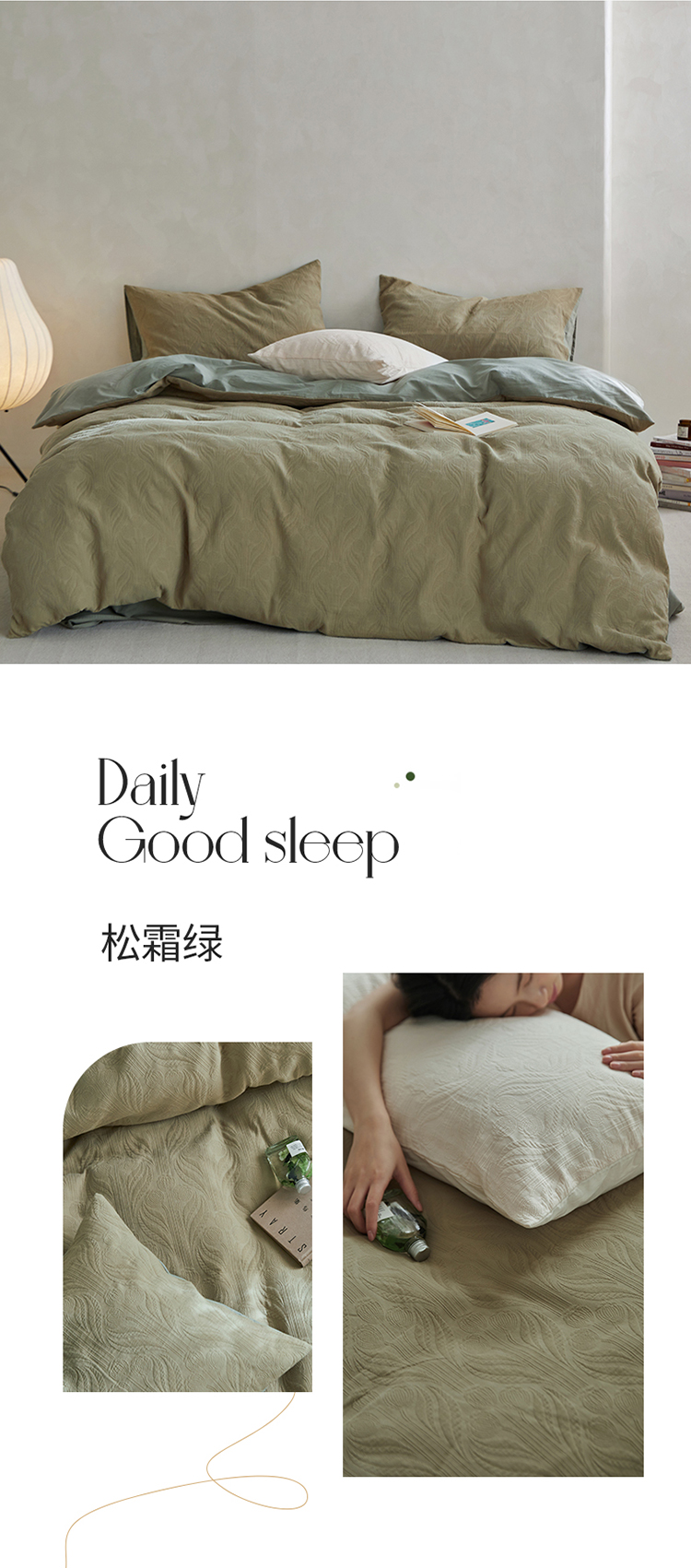 商品名称:名品优仓 2023新款全棉三层纱浮雕提花四件套-思语 松霜绿