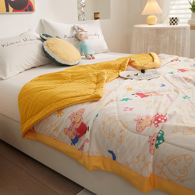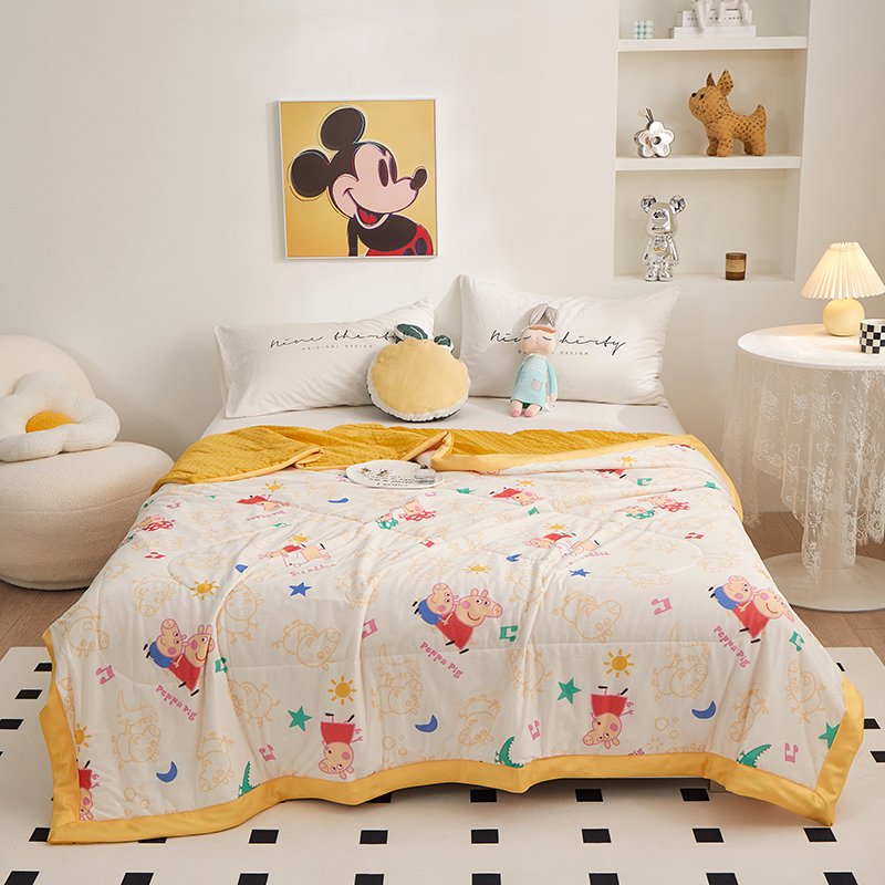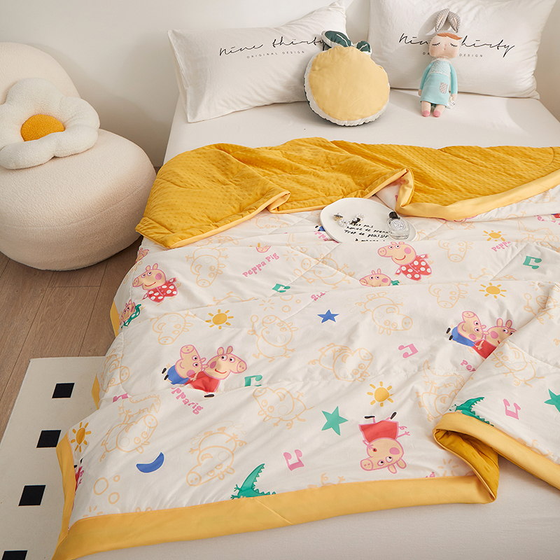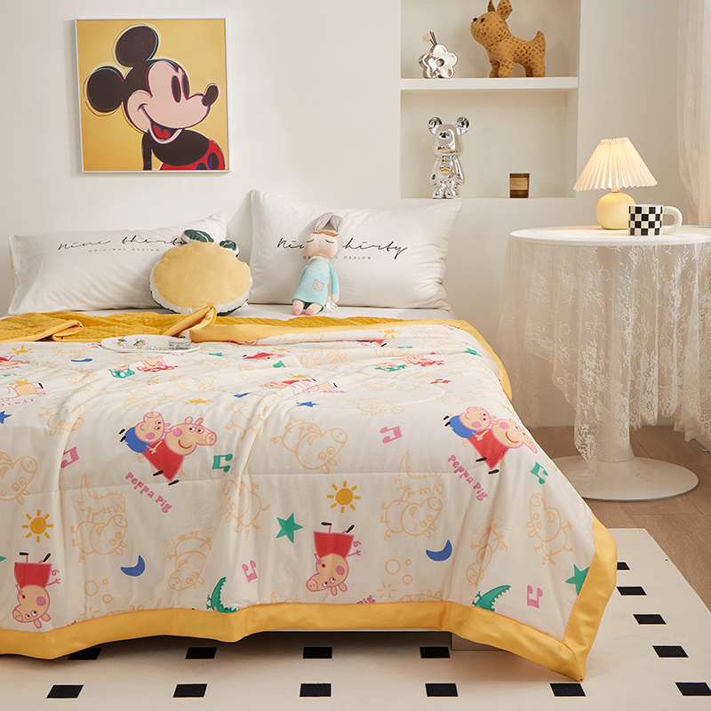 一米阳光 2023新款凉感丝豆豆款包边夏被 小猪佩奇