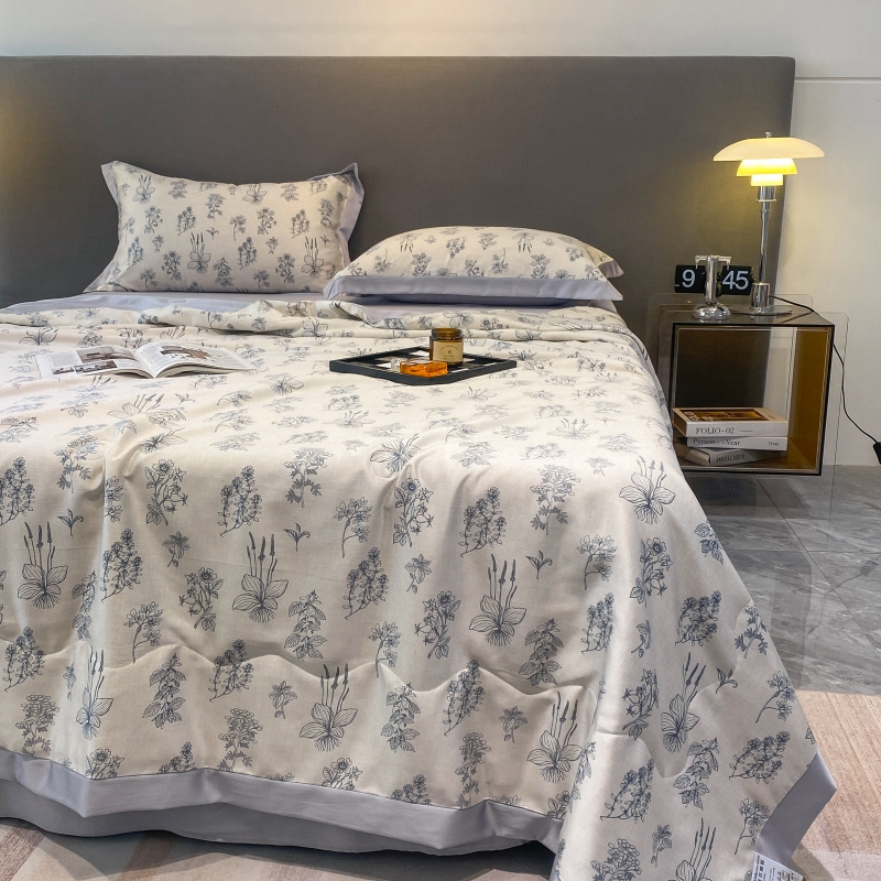 商品名称:棉生活 2023新款莱赛尔天丝绣花夏被 枝蔓 灰