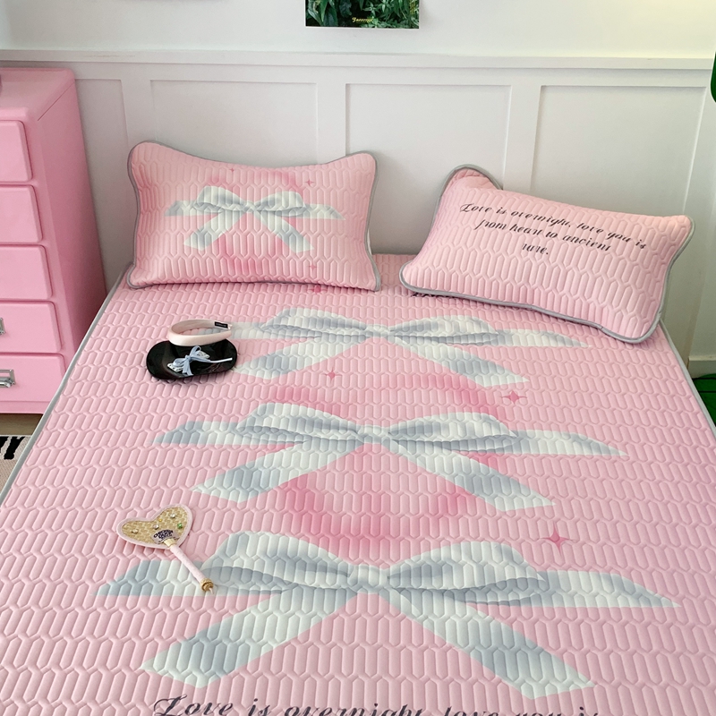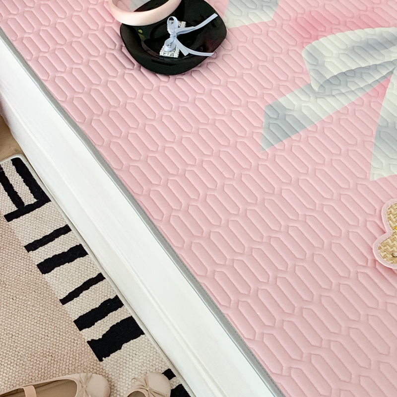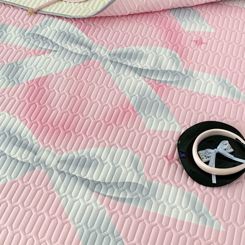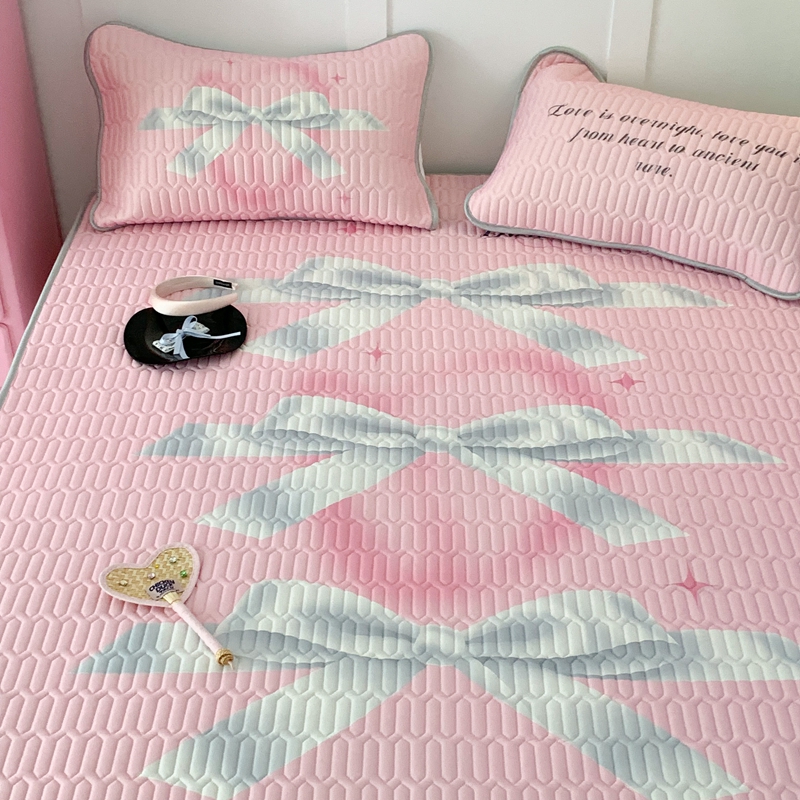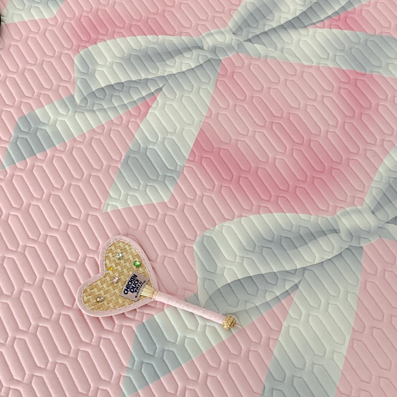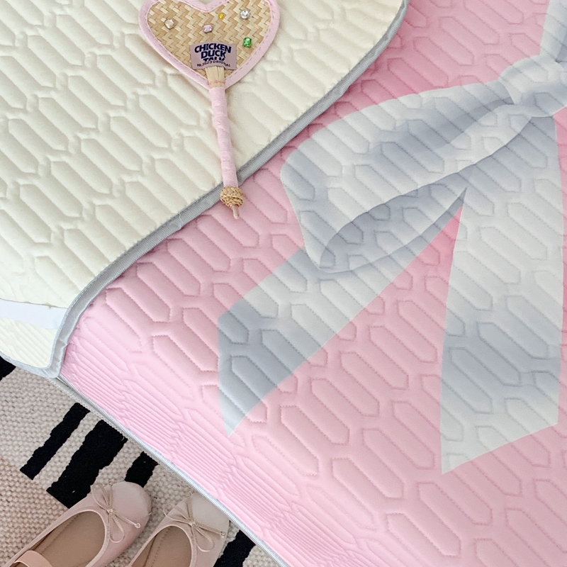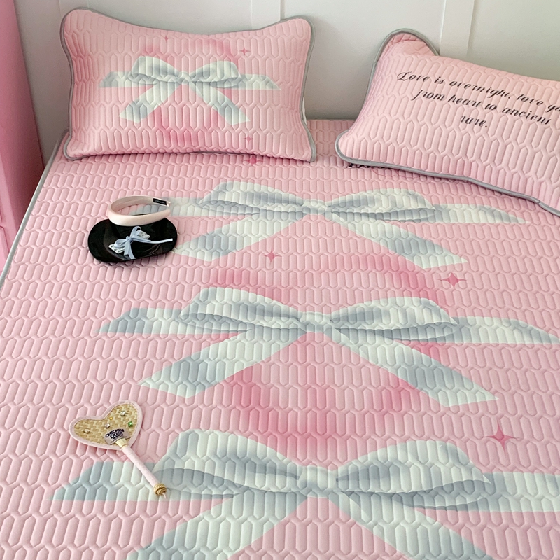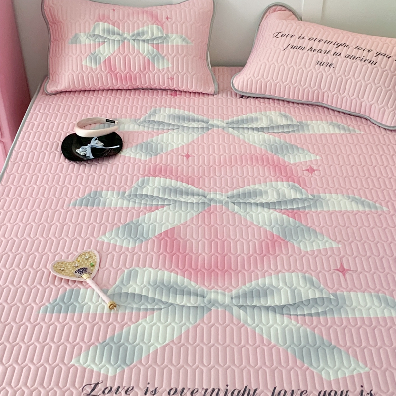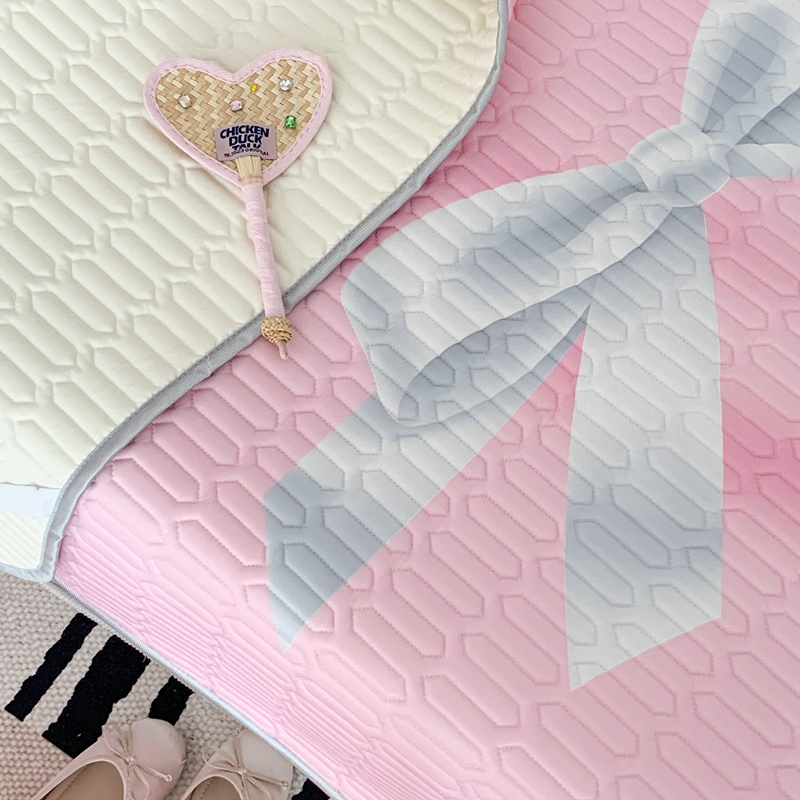 昔可家纺2023新款甜酷黑粉系列乳胶凉席 芭蕾风丝带蝴蝶结