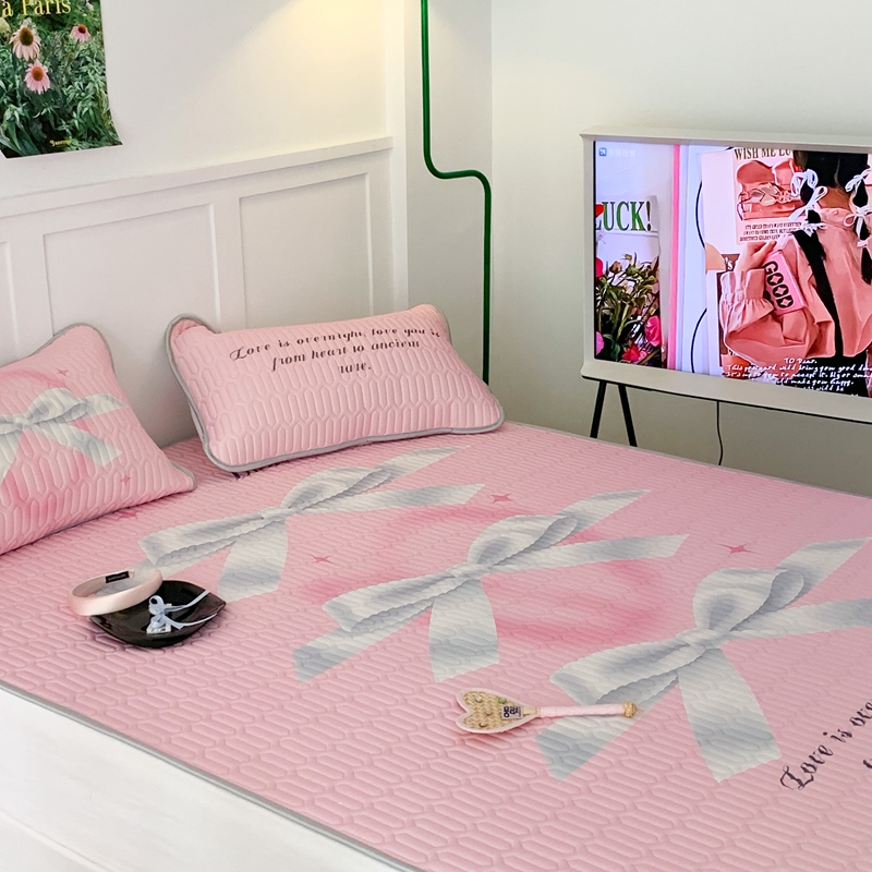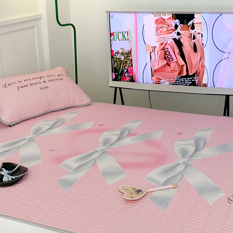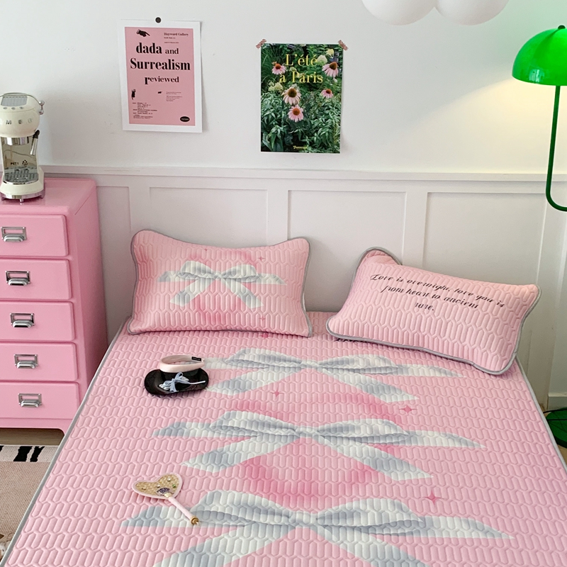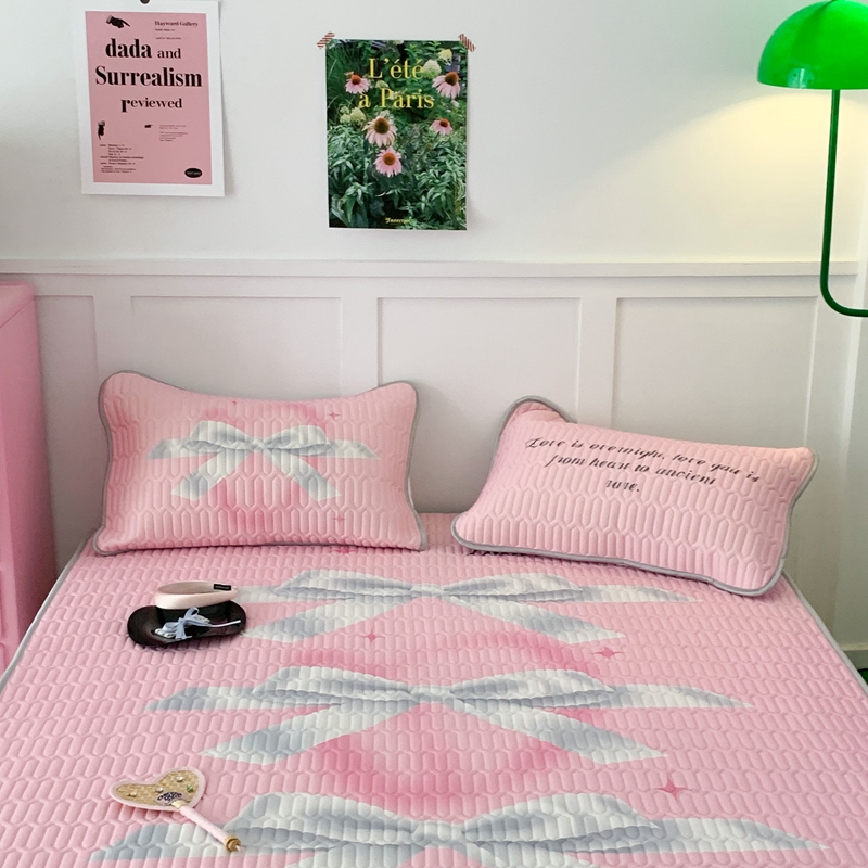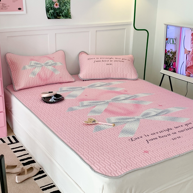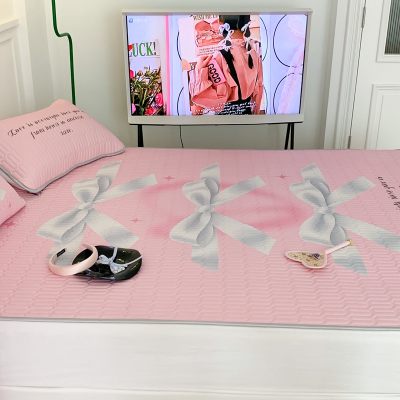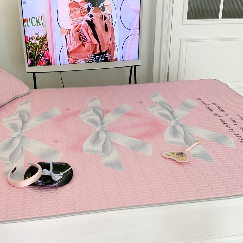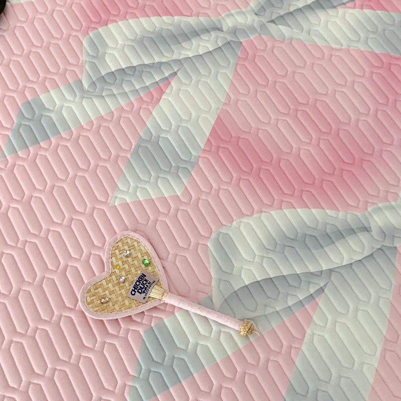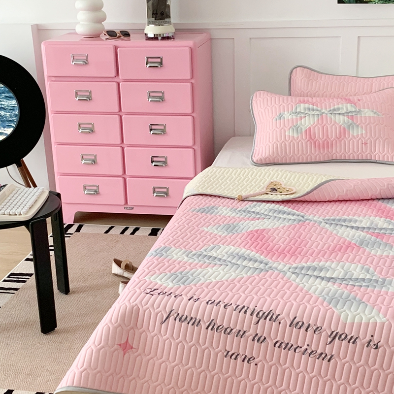 昔可家纺2023新款甜酷黑粉系列乳胶凉席 芭蕾风丝带蝴蝶结