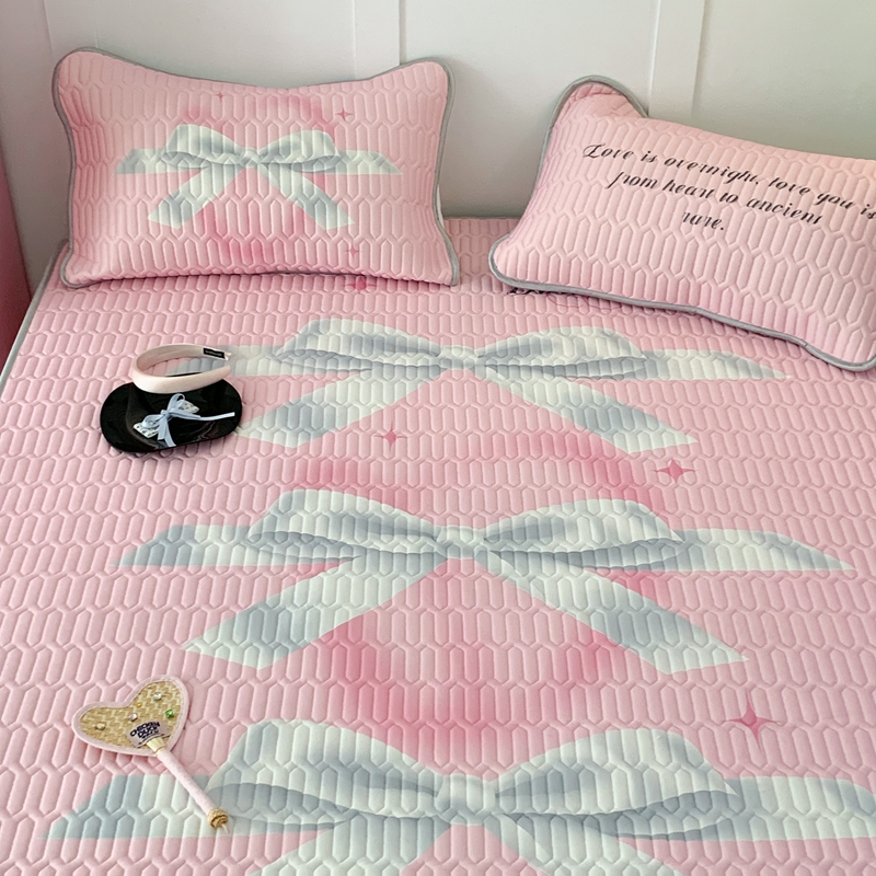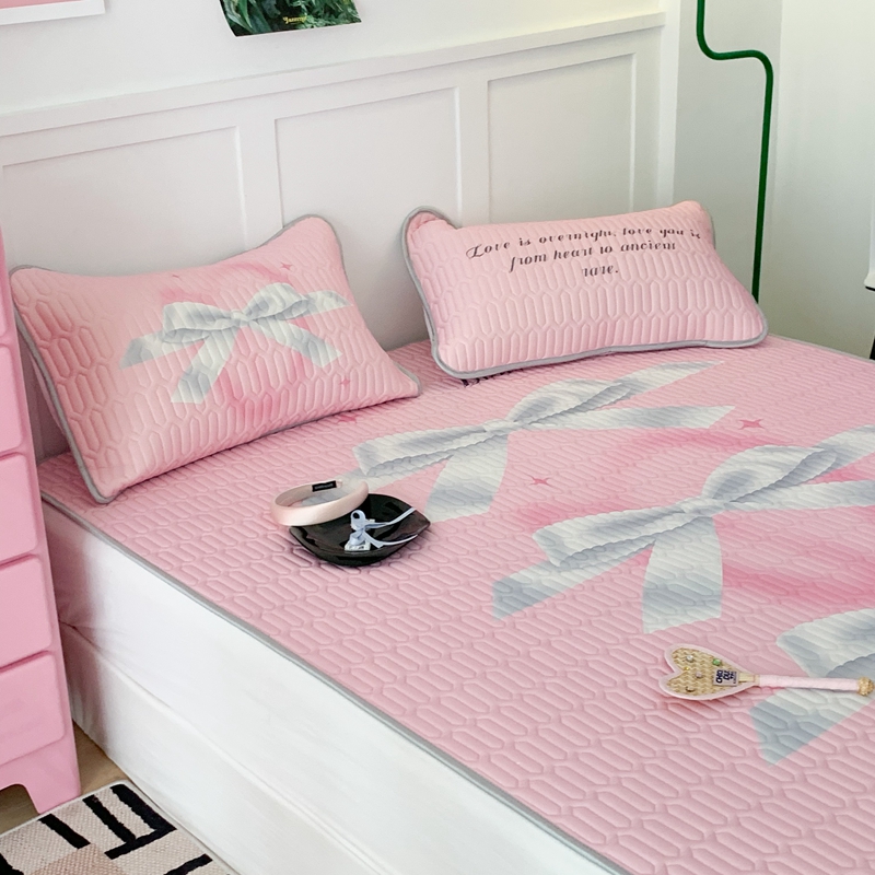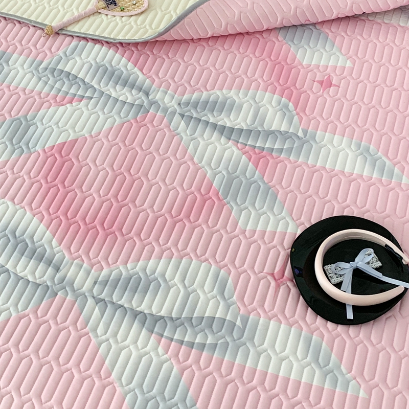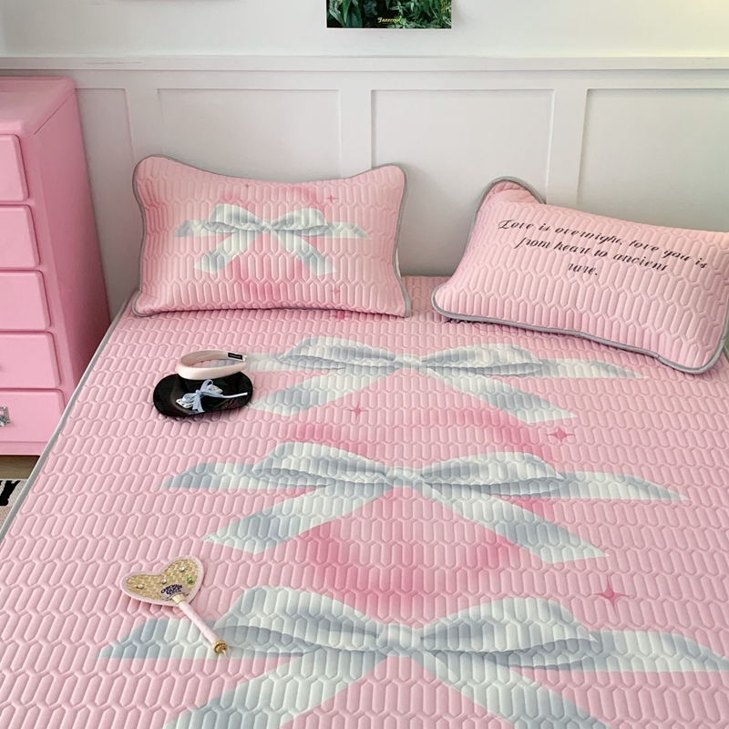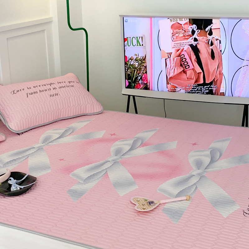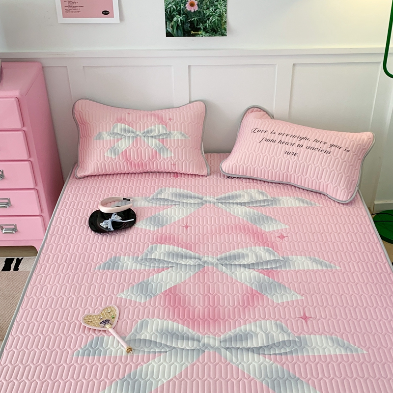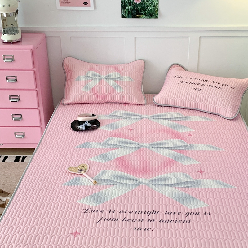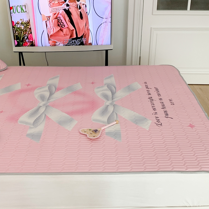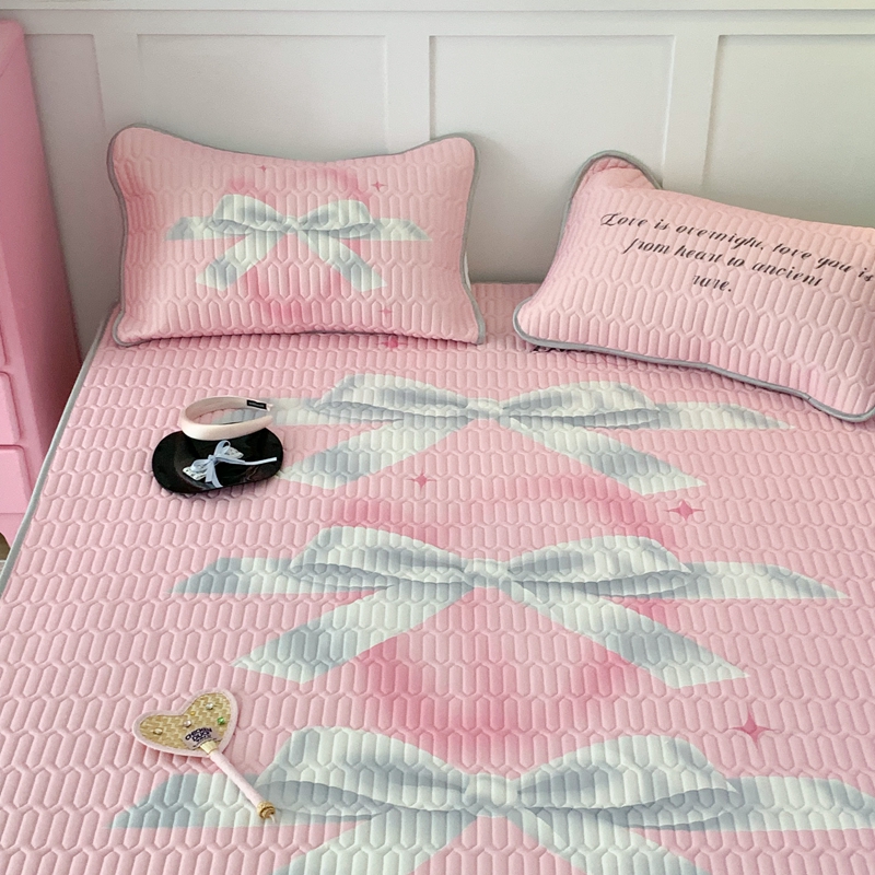 昔可家纺2023新款甜酷黑粉系列乳胶凉席 芭蕾风丝带蝴蝶结