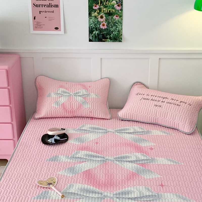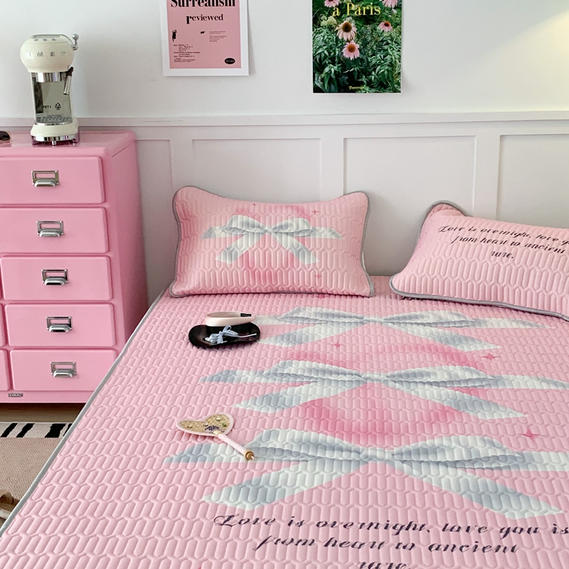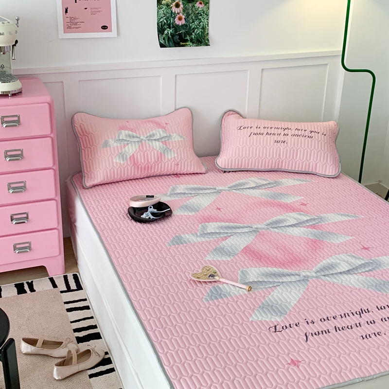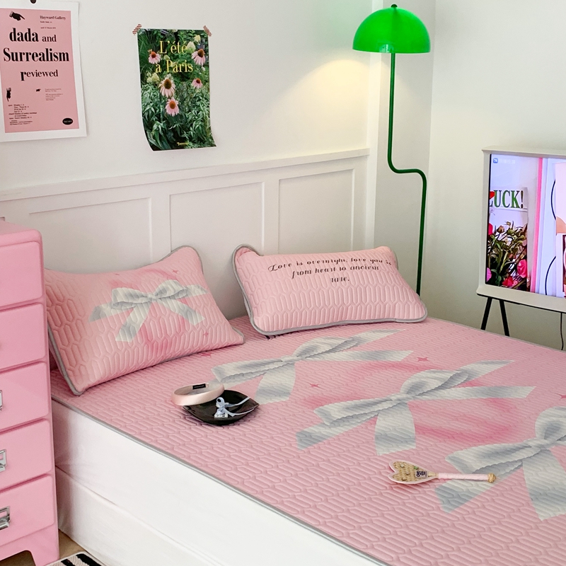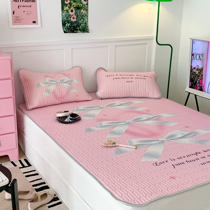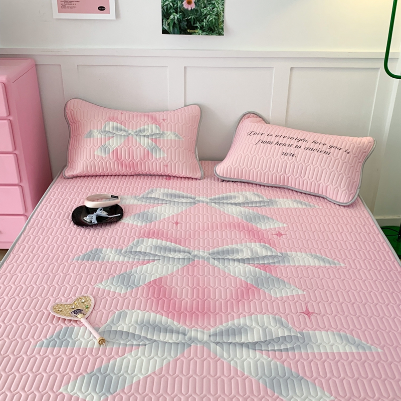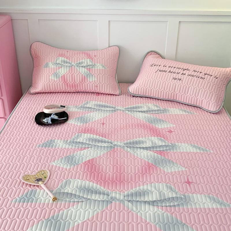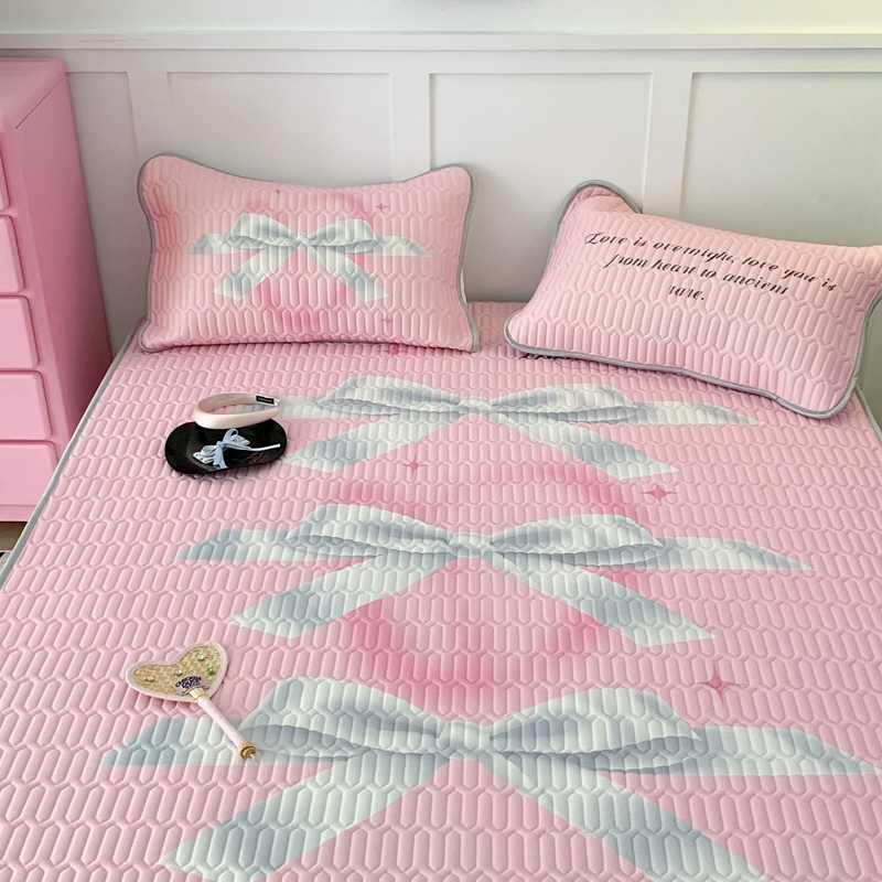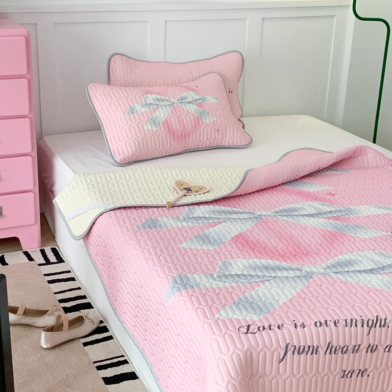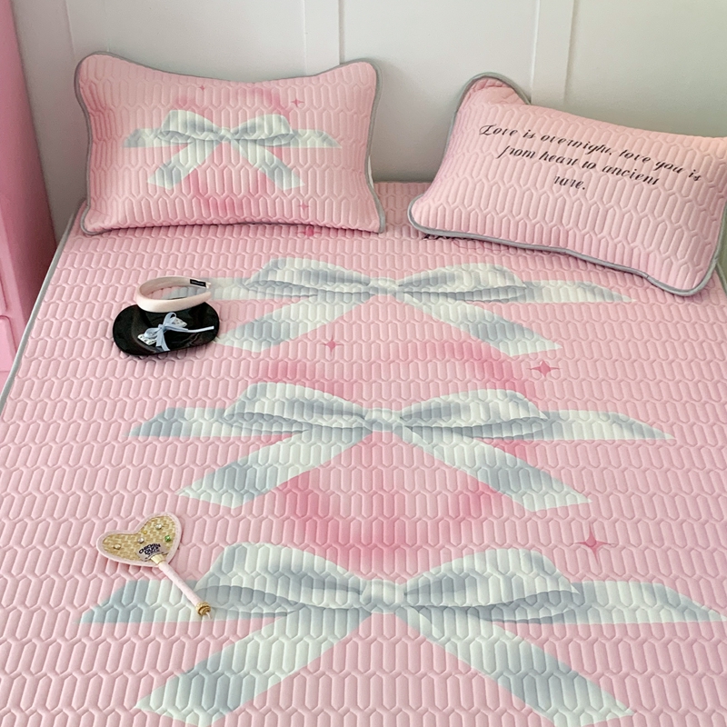 昔可家纺2023新款甜酷黑粉系列乳胶凉席 芭蕾风丝带蝴蝶结