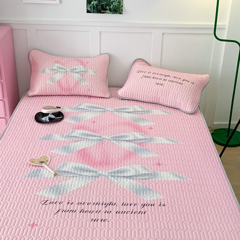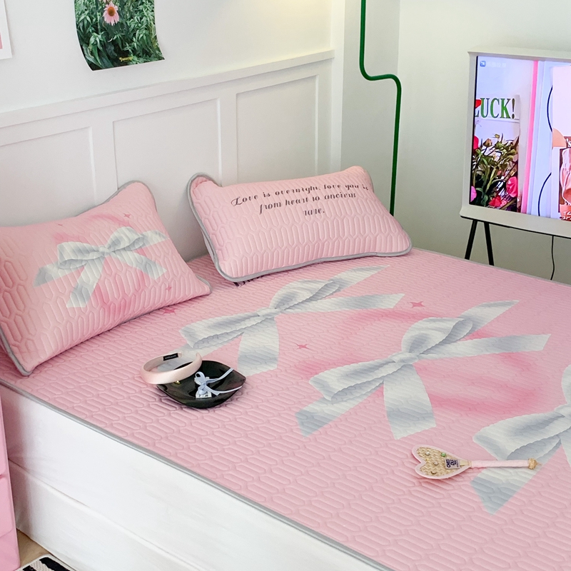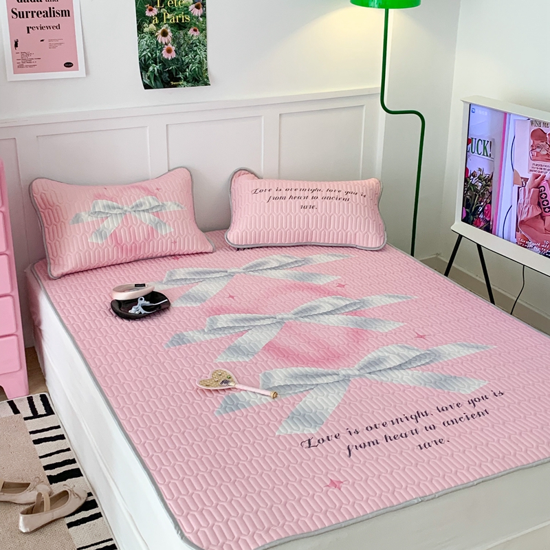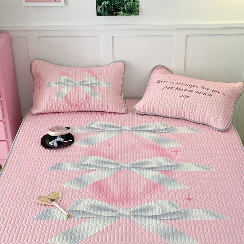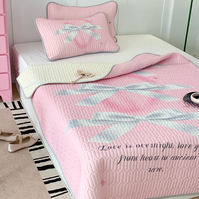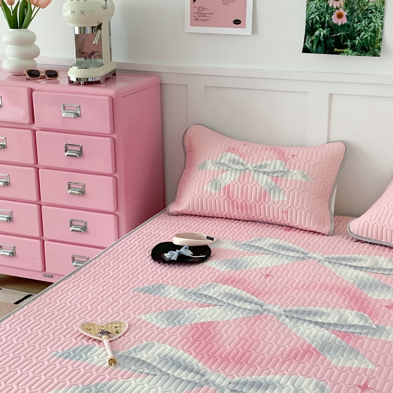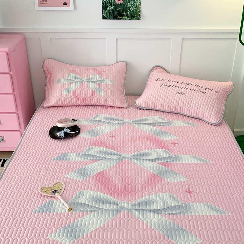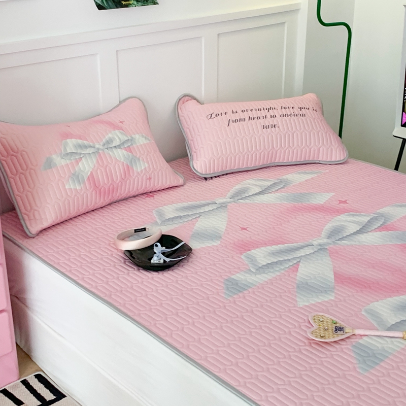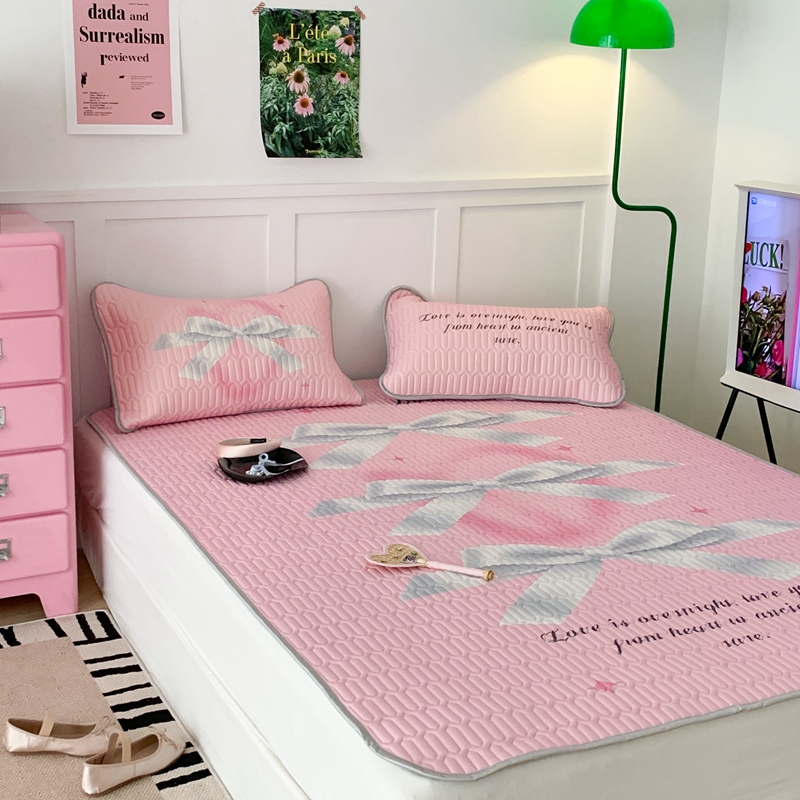 昔可家纺2023新款甜酷黑粉系列乳胶凉席 芭蕾风丝带蝴蝶结