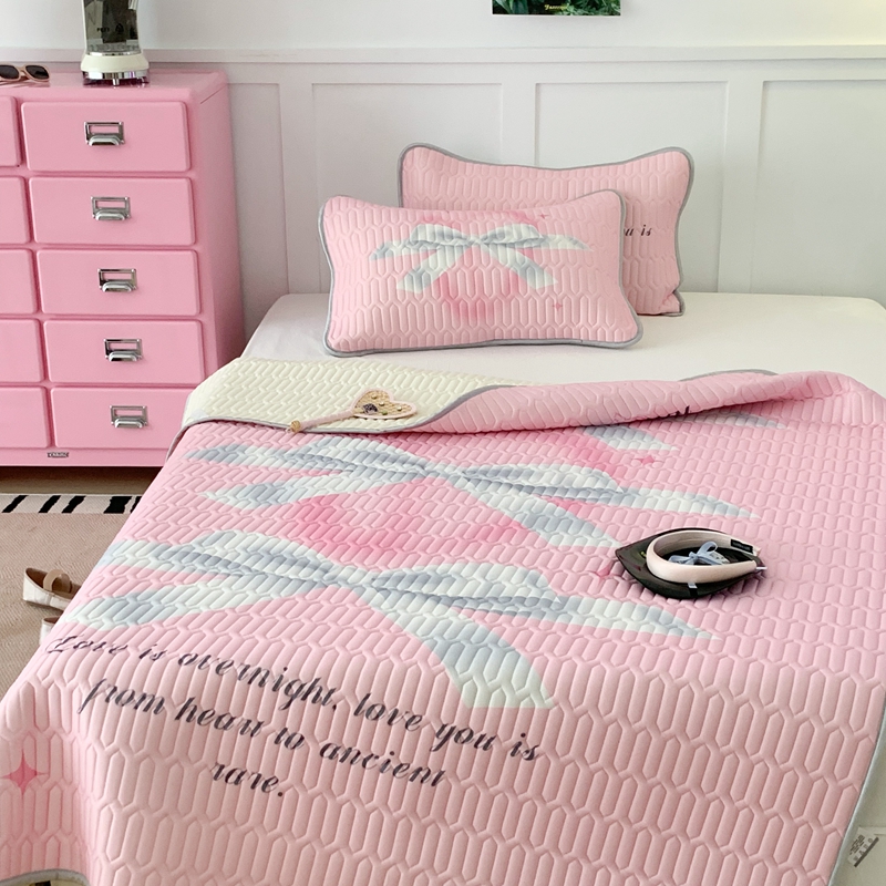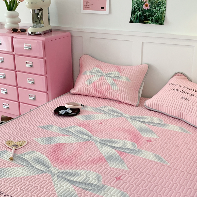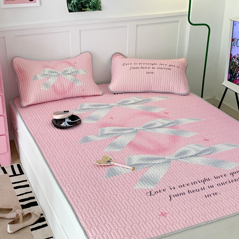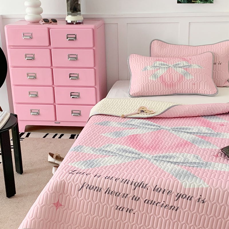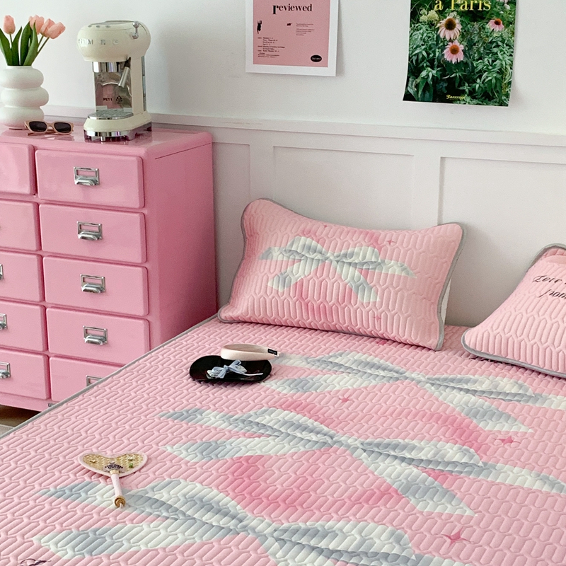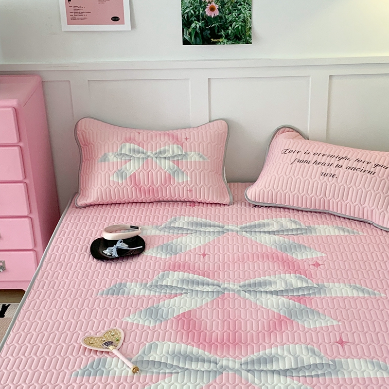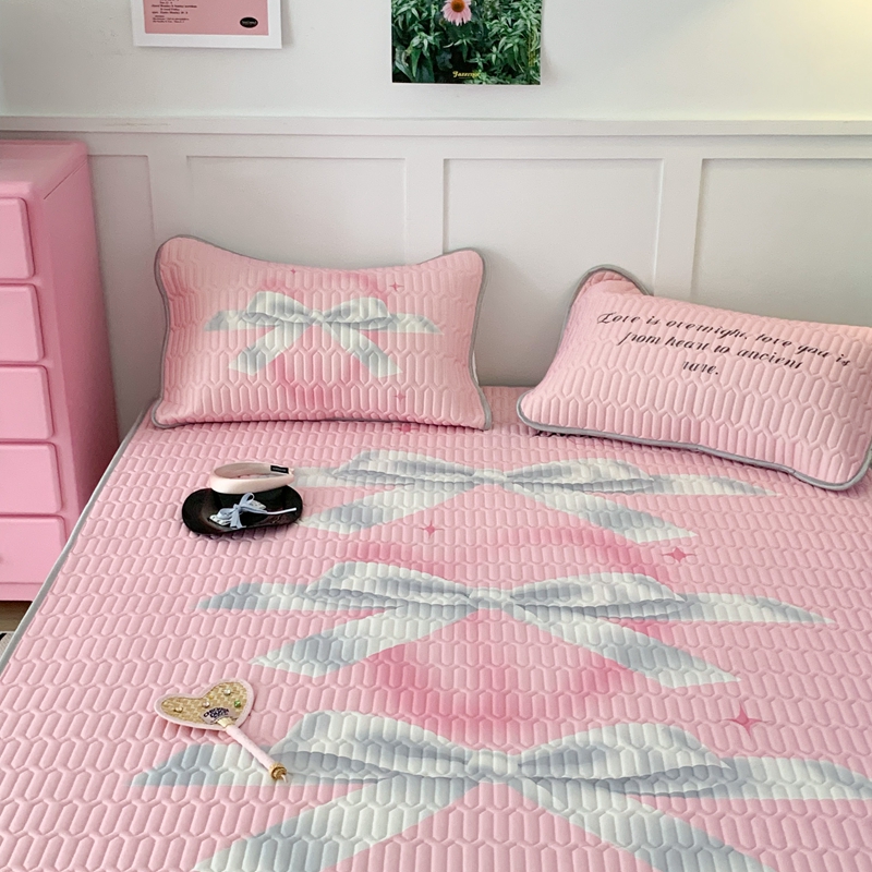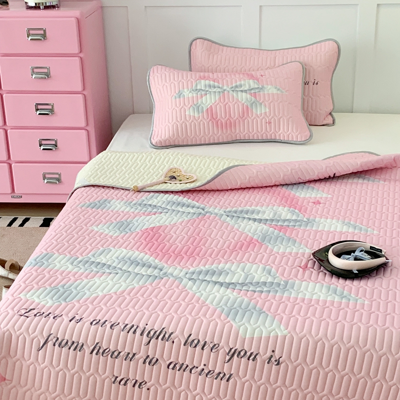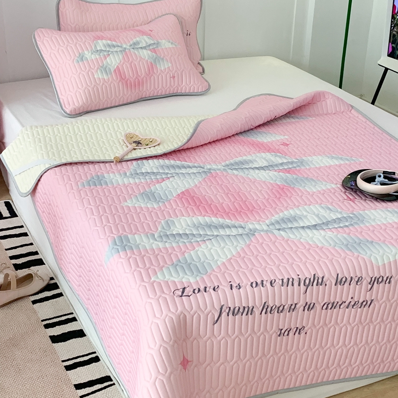 昔可家纺2023新款甜酷黑粉系列乳胶凉席 芭蕾风丝带蝴蝶结