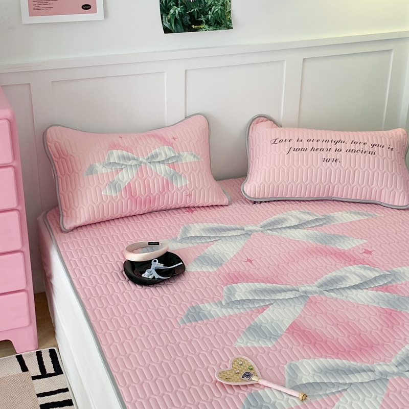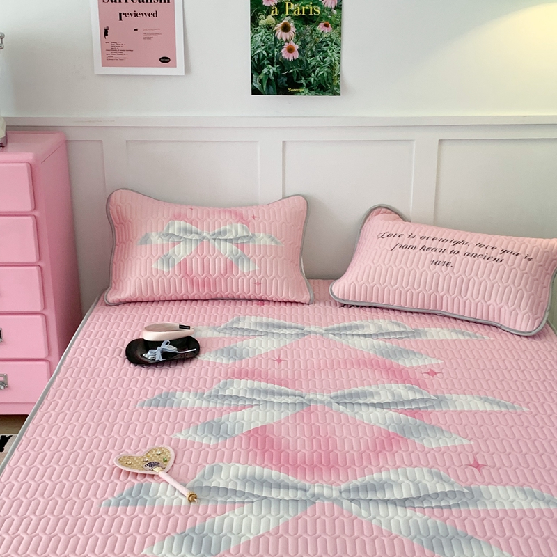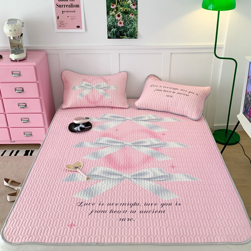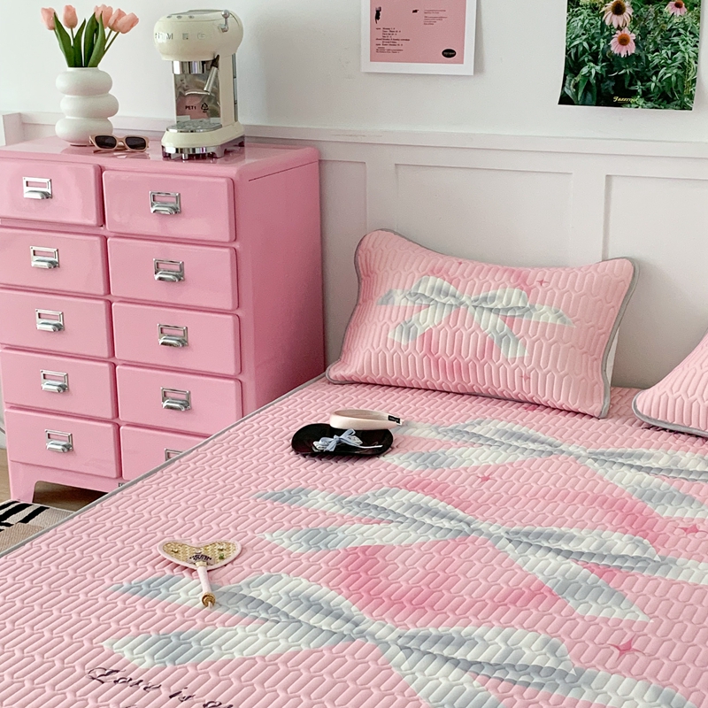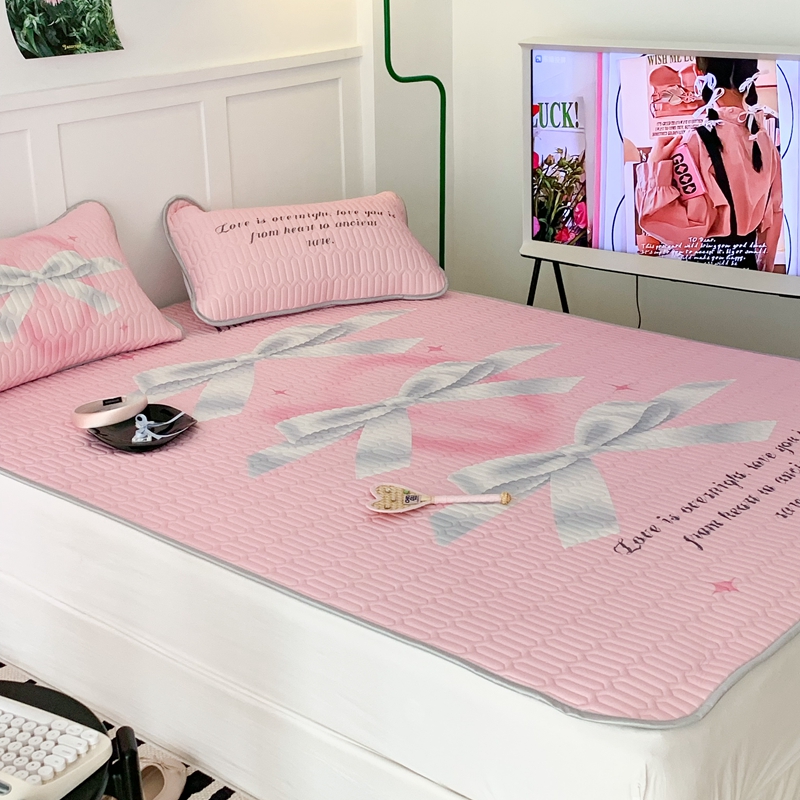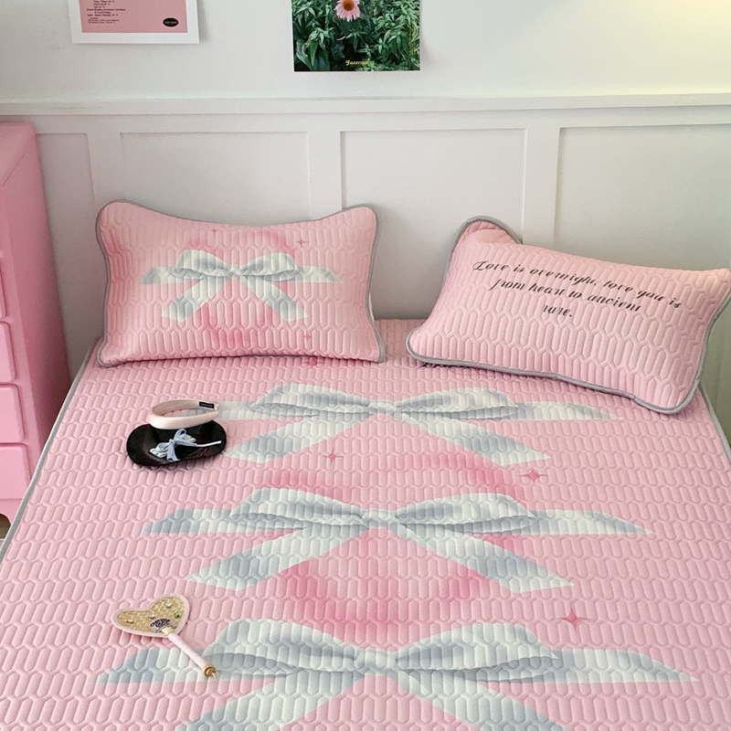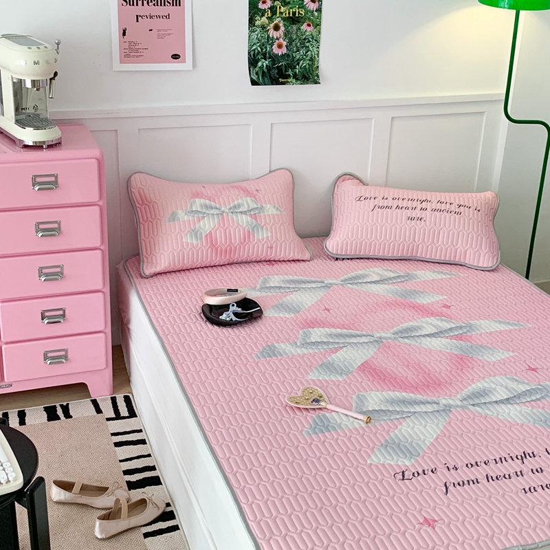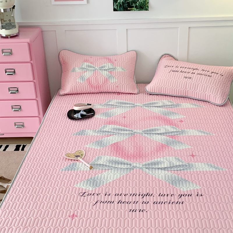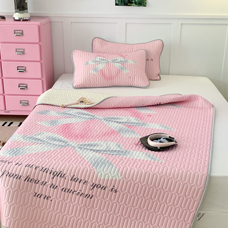 昔可家纺2023新款甜酷黑粉系列乳胶凉席 芭蕾风丝带蝴蝶结