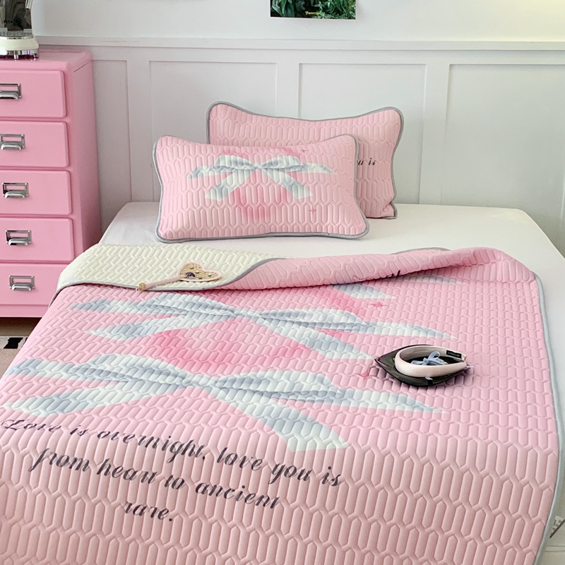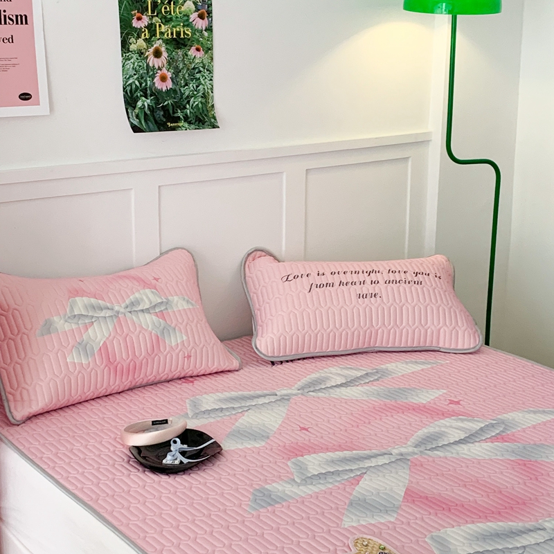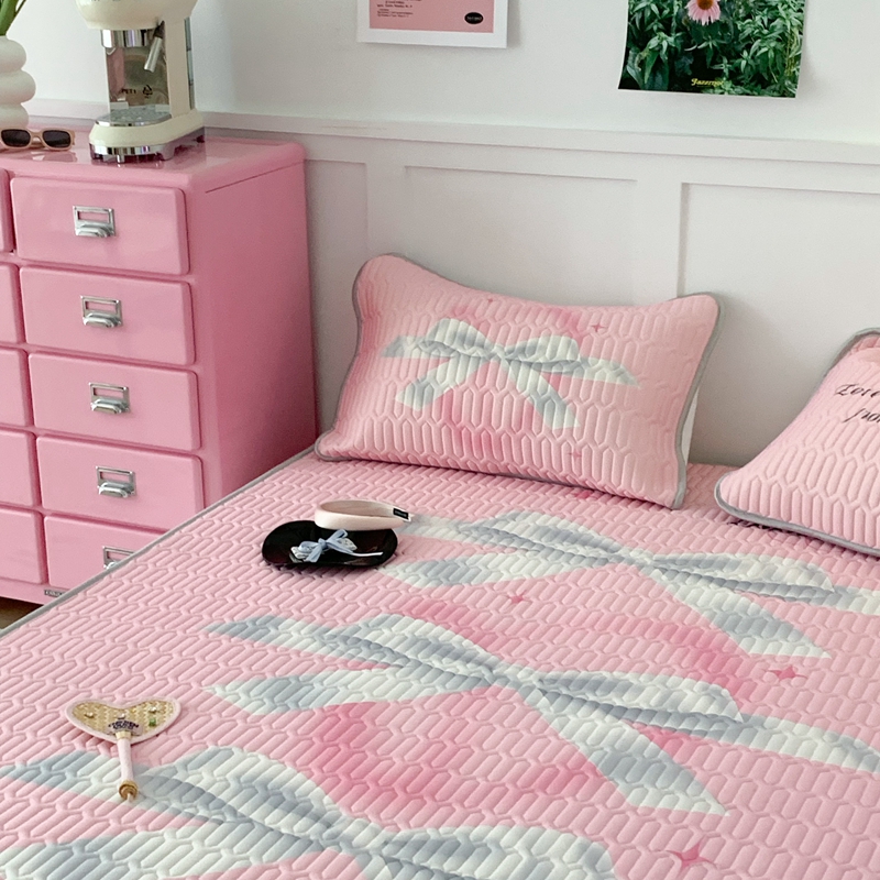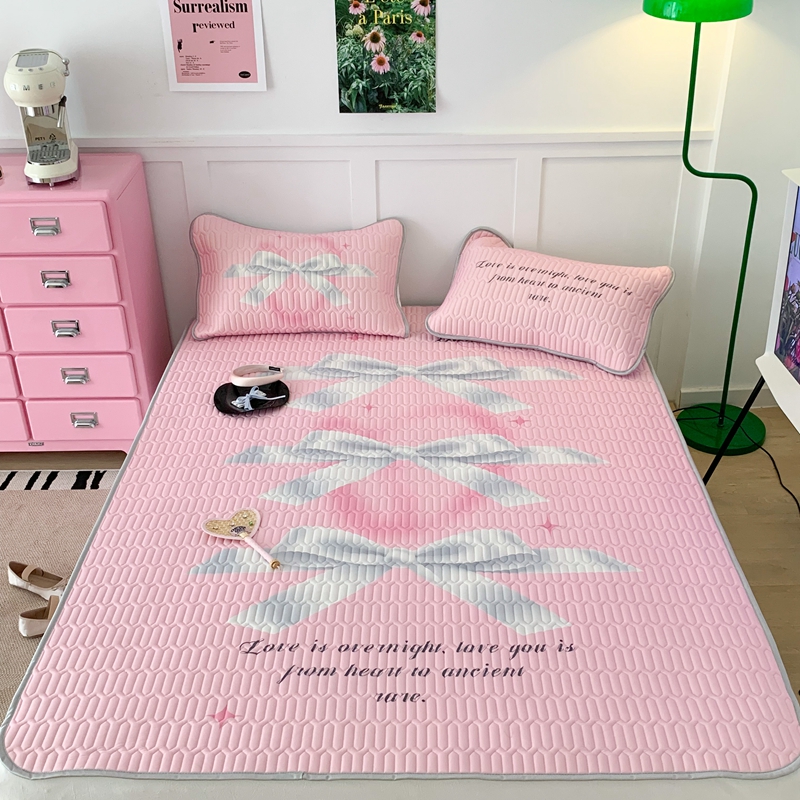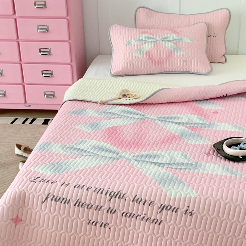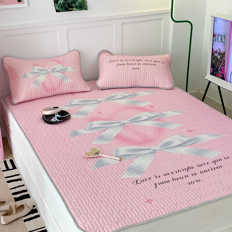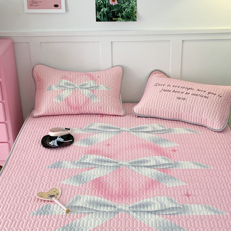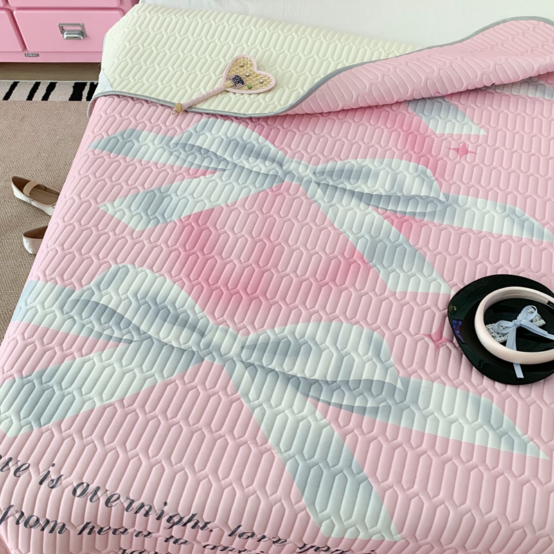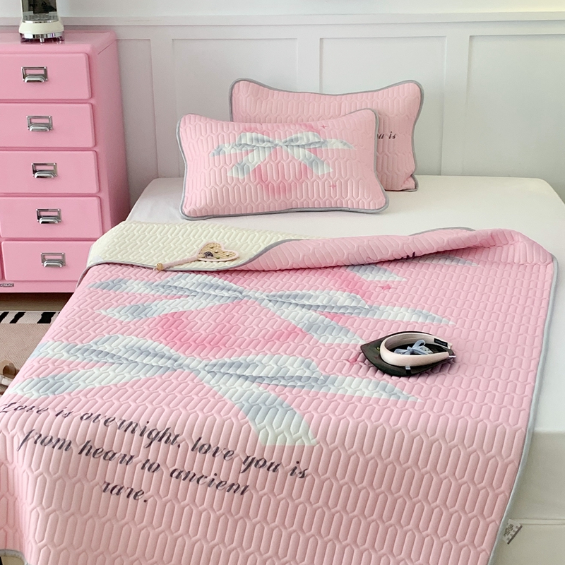 昔可家纺2023新款甜酷黑粉系列乳胶凉席 芭蕾风丝带蝴蝶结