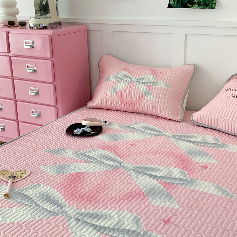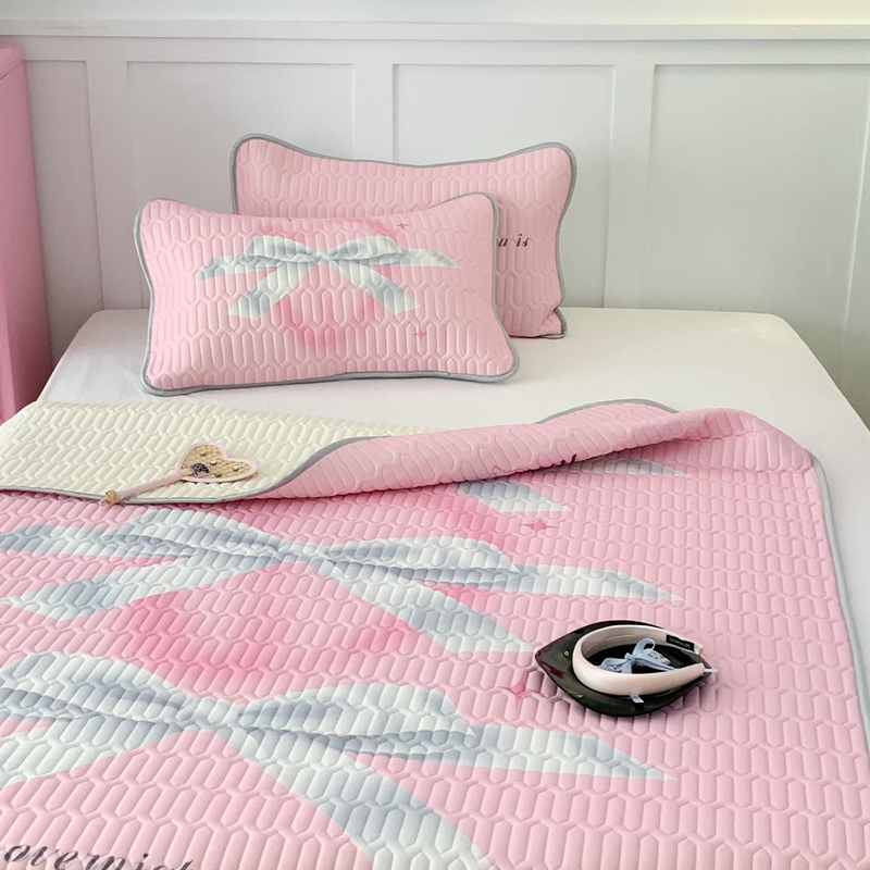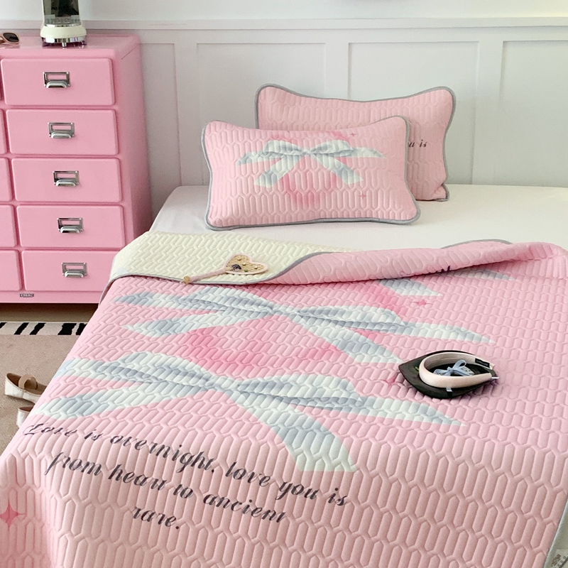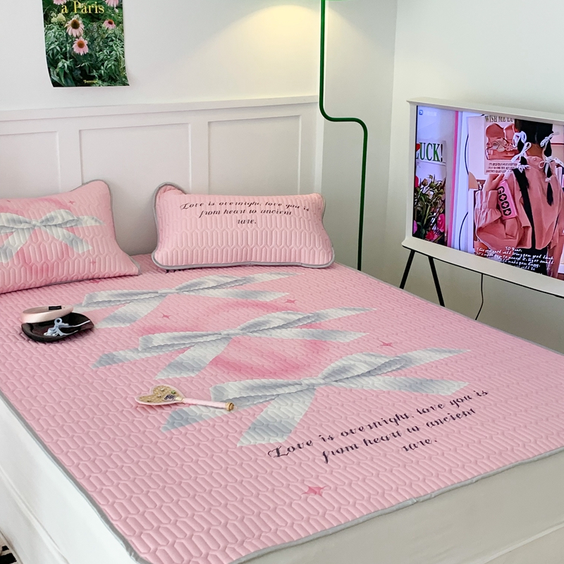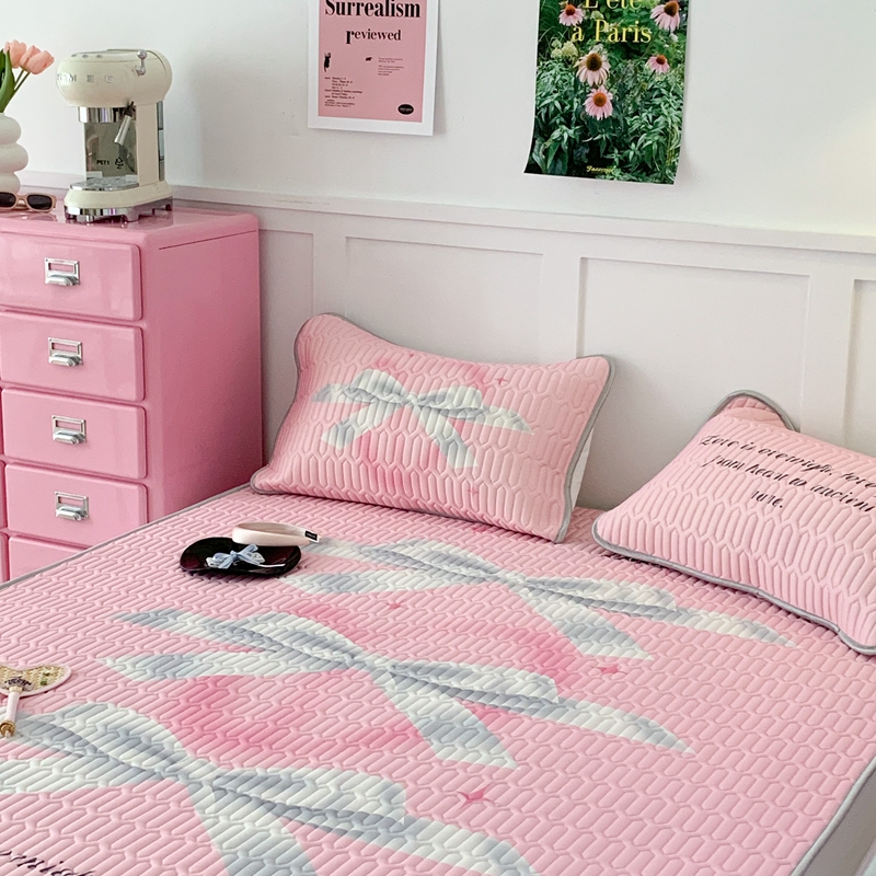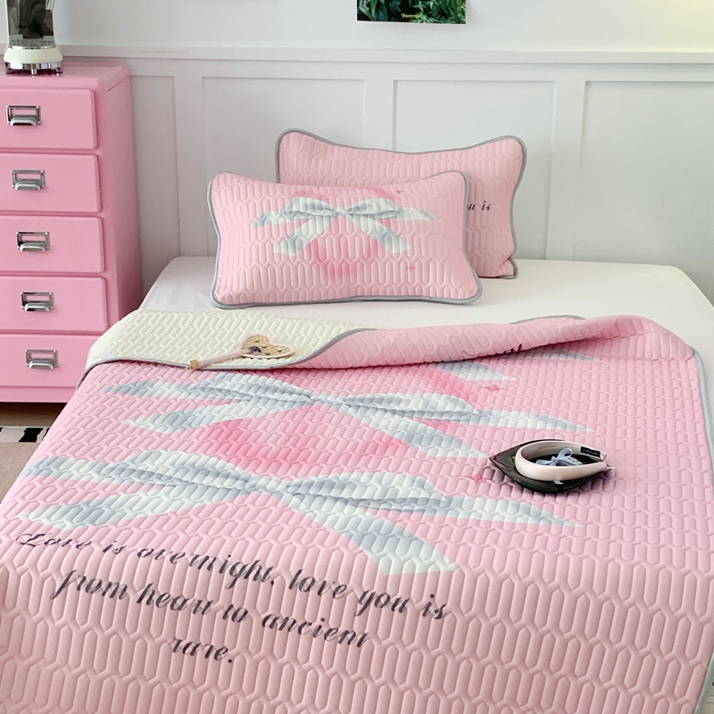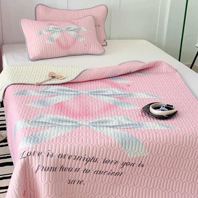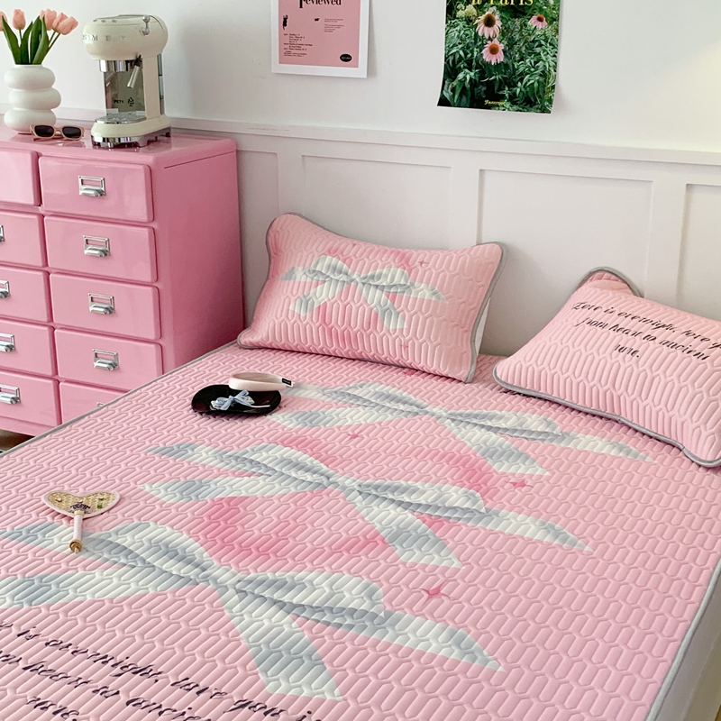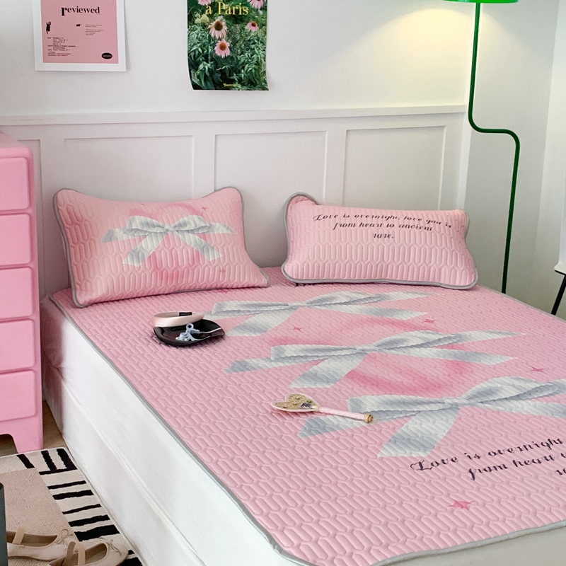 昔可家纺2023新款甜酷黑粉系列乳胶凉席 芭蕾风丝带蝴蝶结
