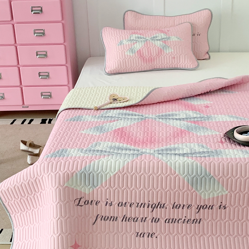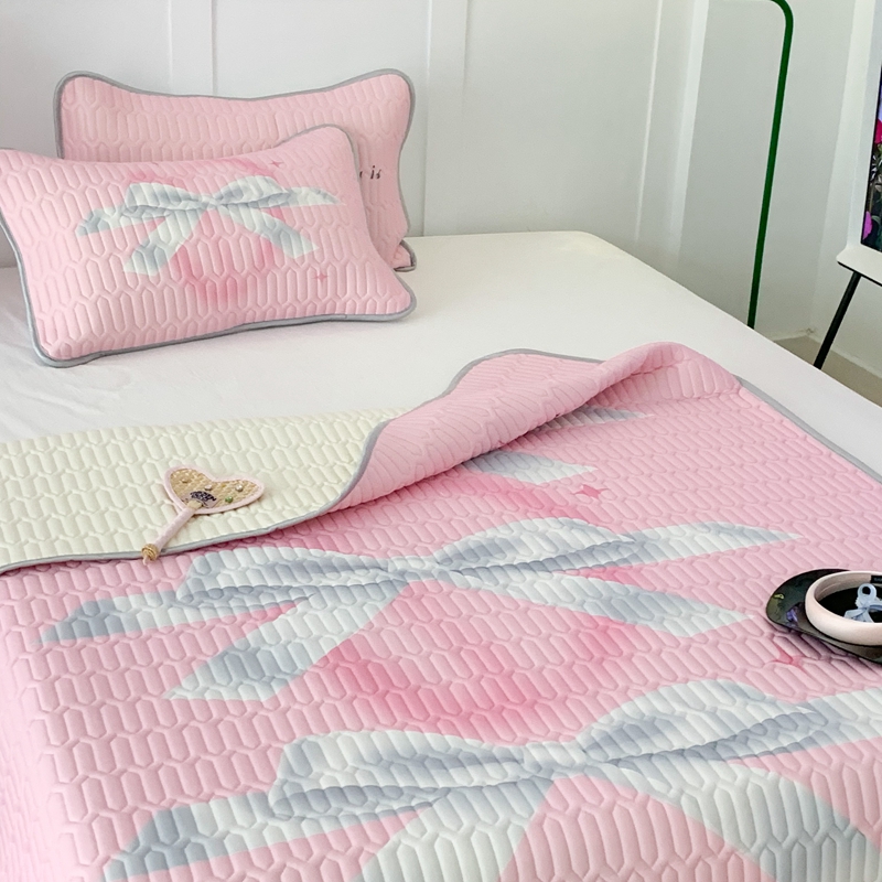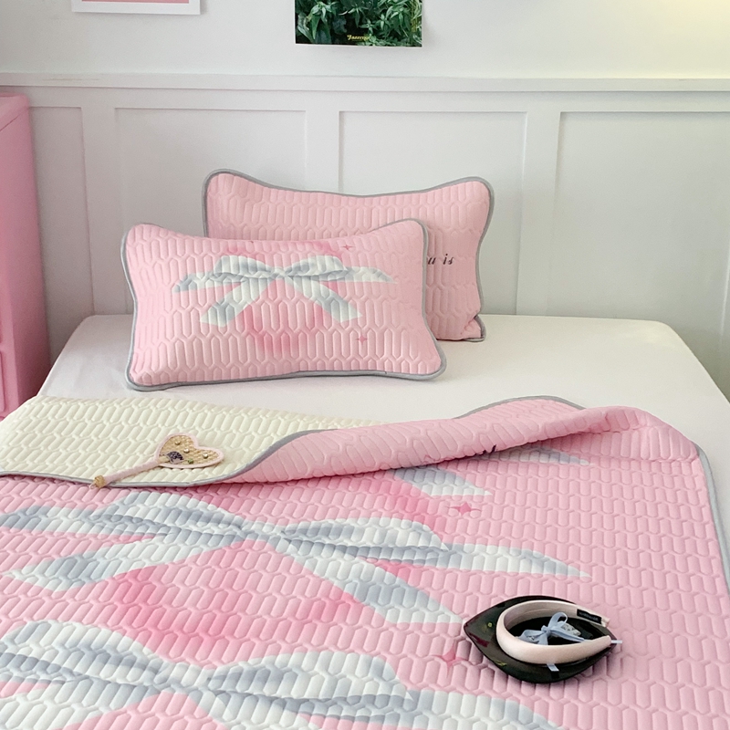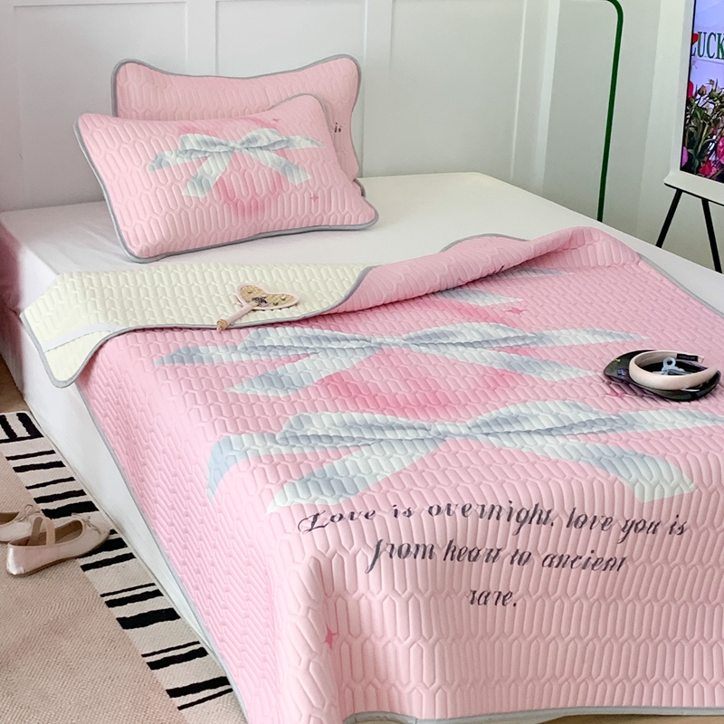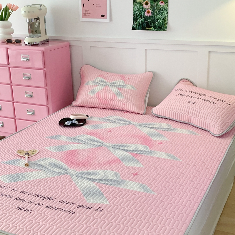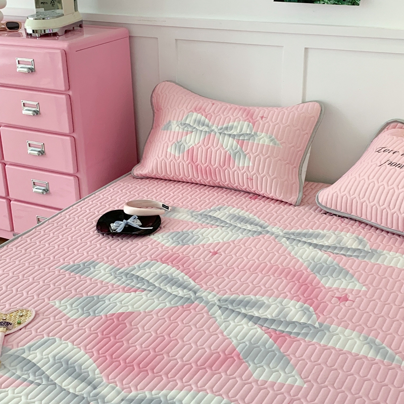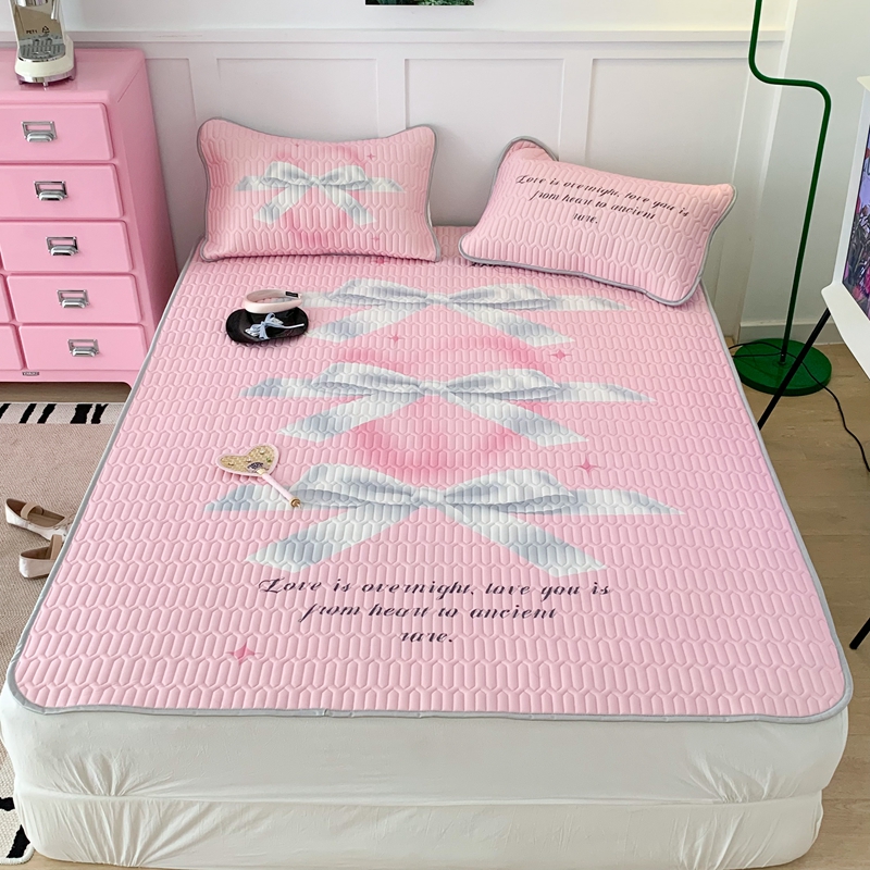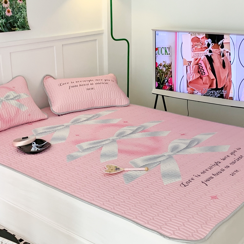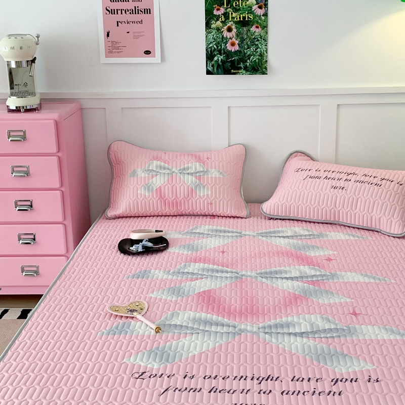 昔可家纺2023新款甜酷黑粉系列乳胶凉席 芭蕾风丝带蝴蝶结