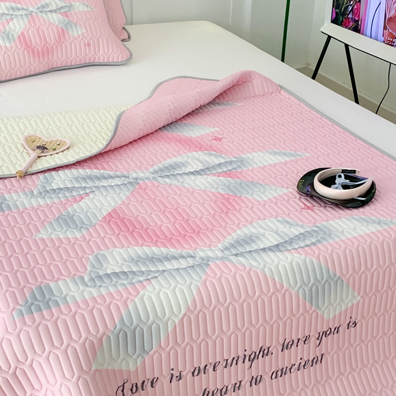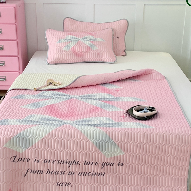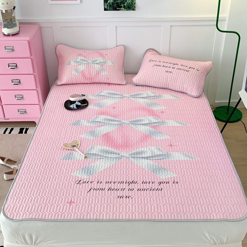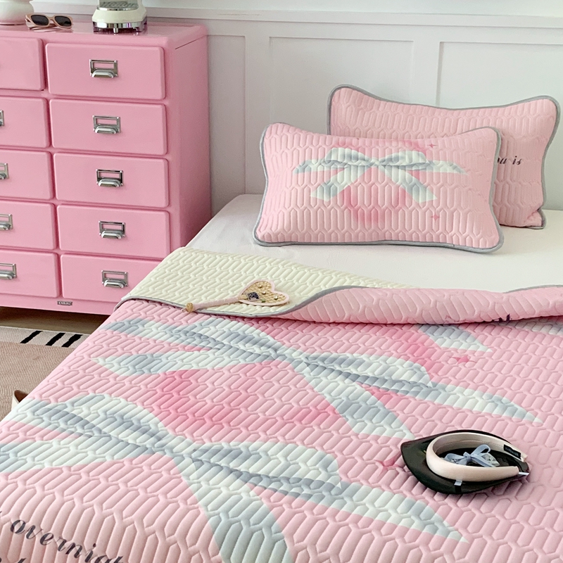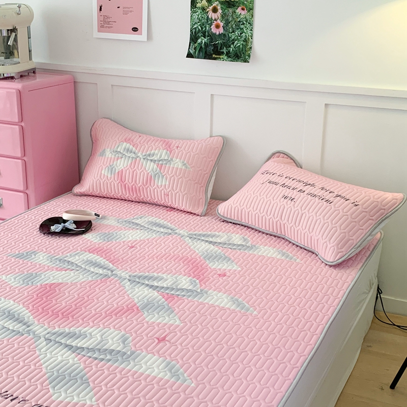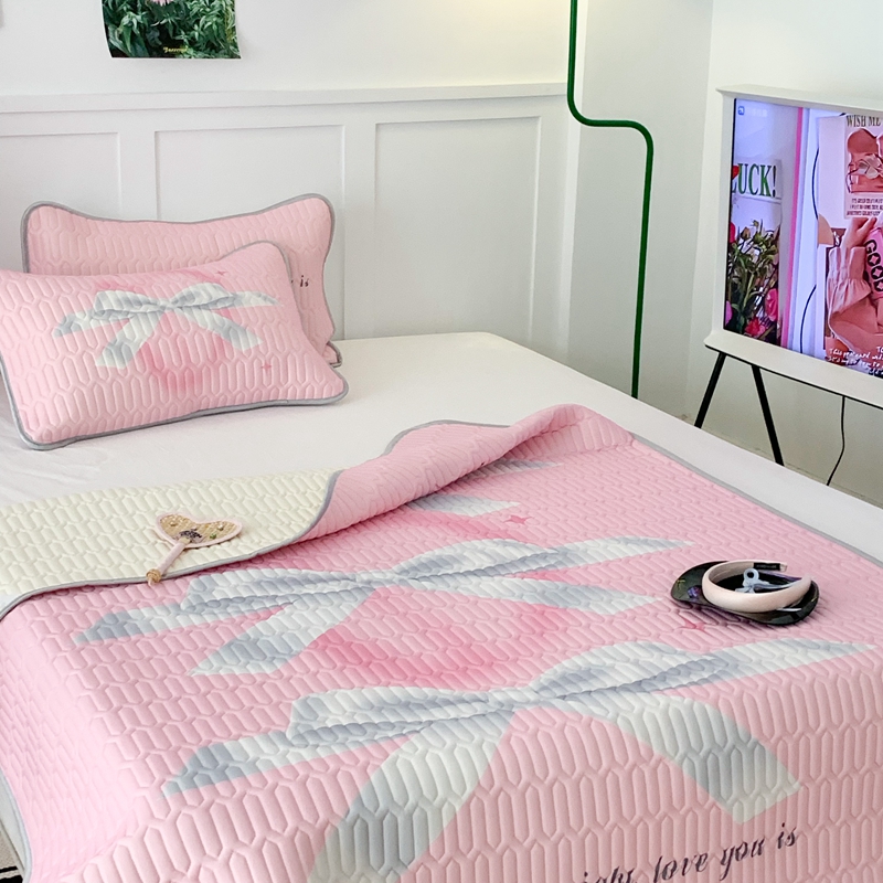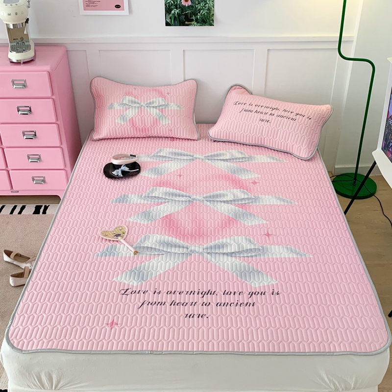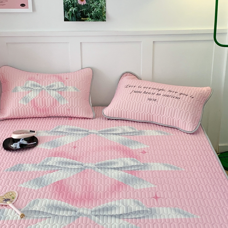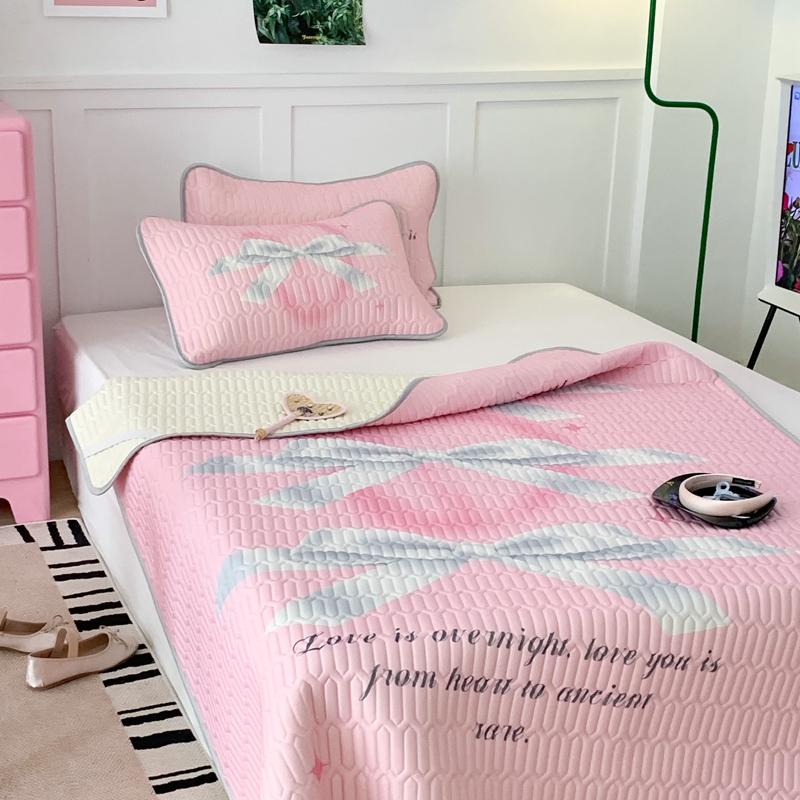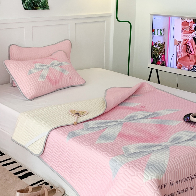 昔可家纺2023新款甜酷黑粉系列乳胶凉席 芭蕾风丝带蝴蝶结