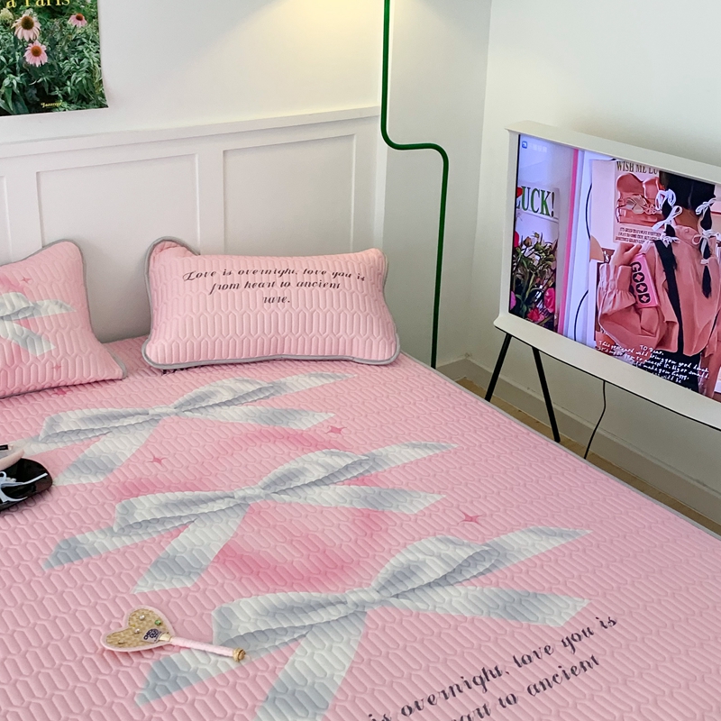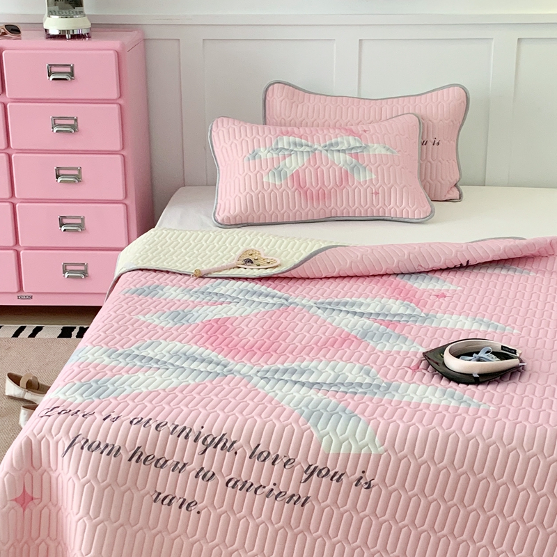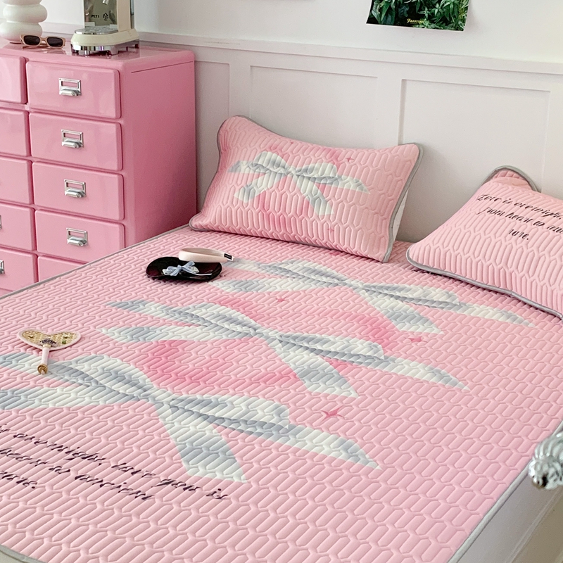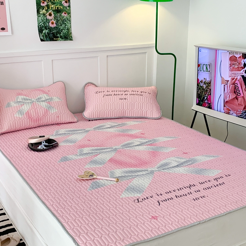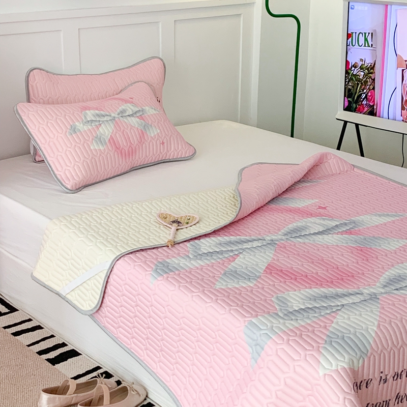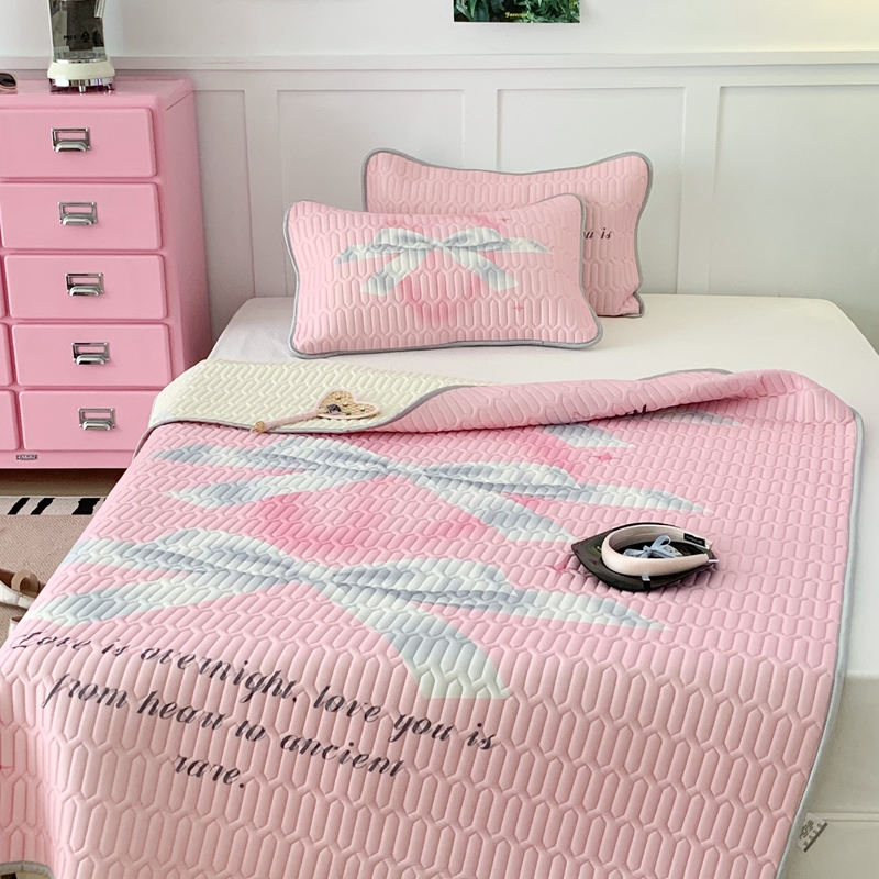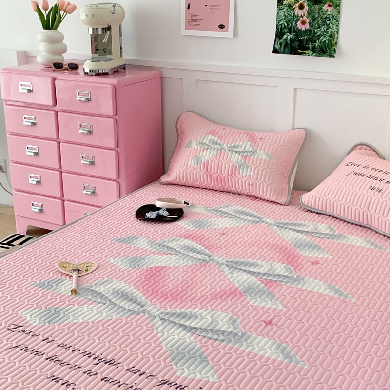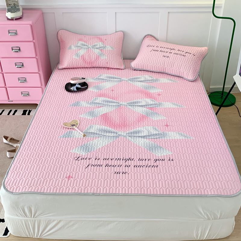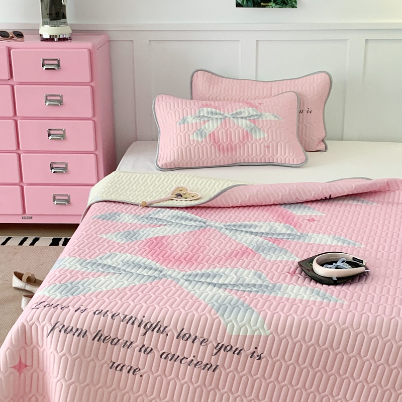 昔可家纺2023新款甜酷黑粉系列乳胶凉席 芭蕾风丝带蝴蝶结