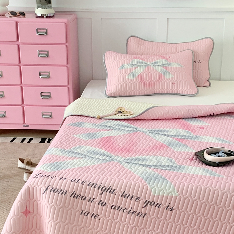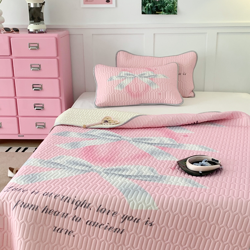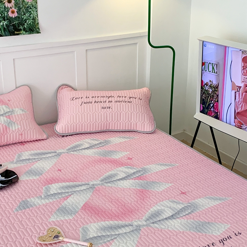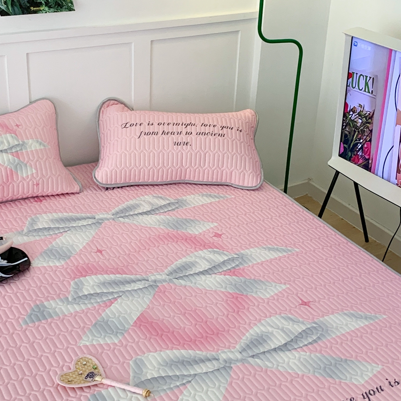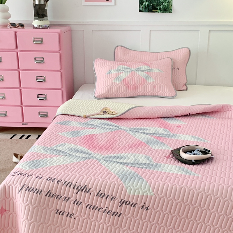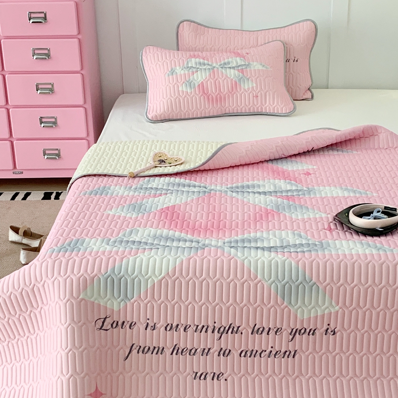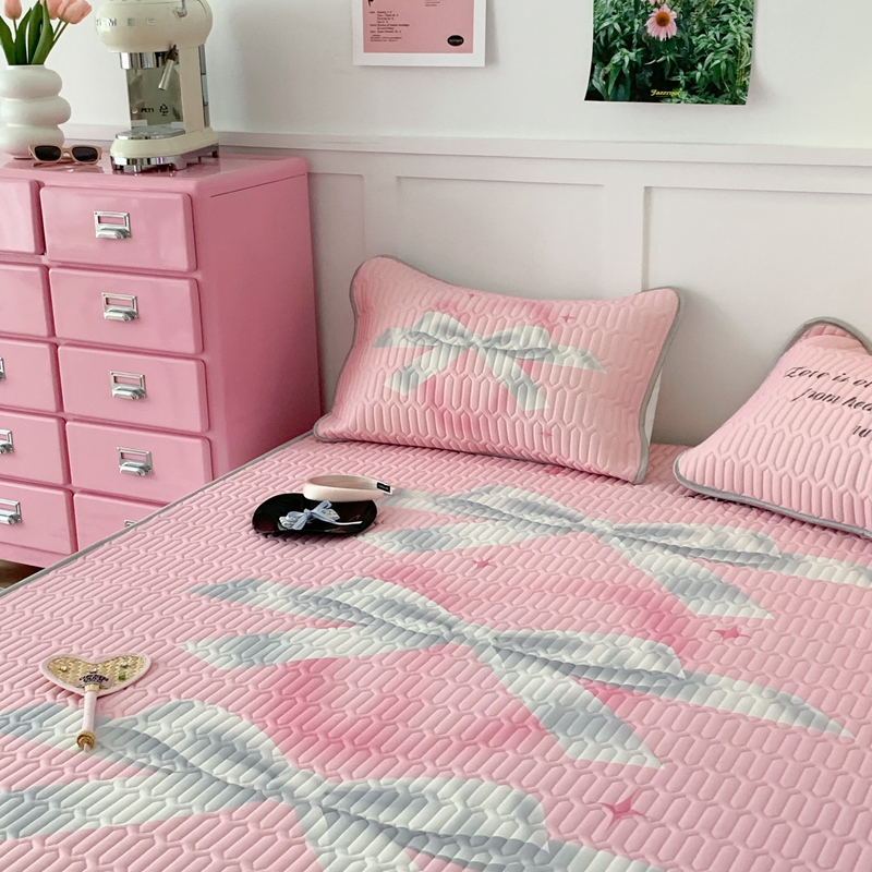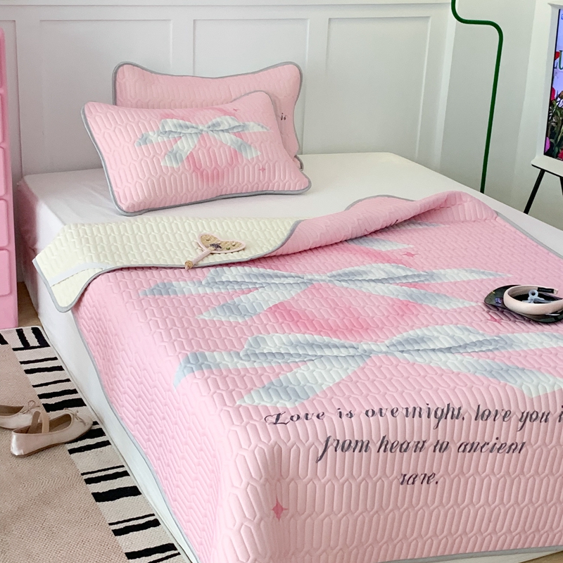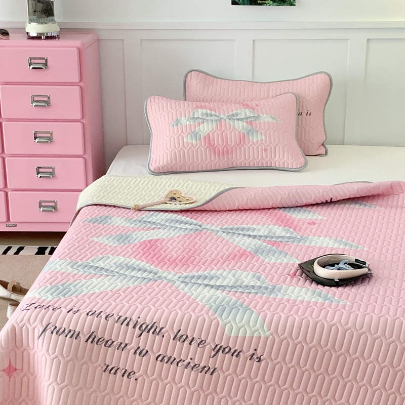昔可家纺2023新款甜酷黑粉系列乳胶凉席 芭蕾风丝带蝴蝶结