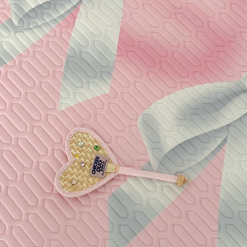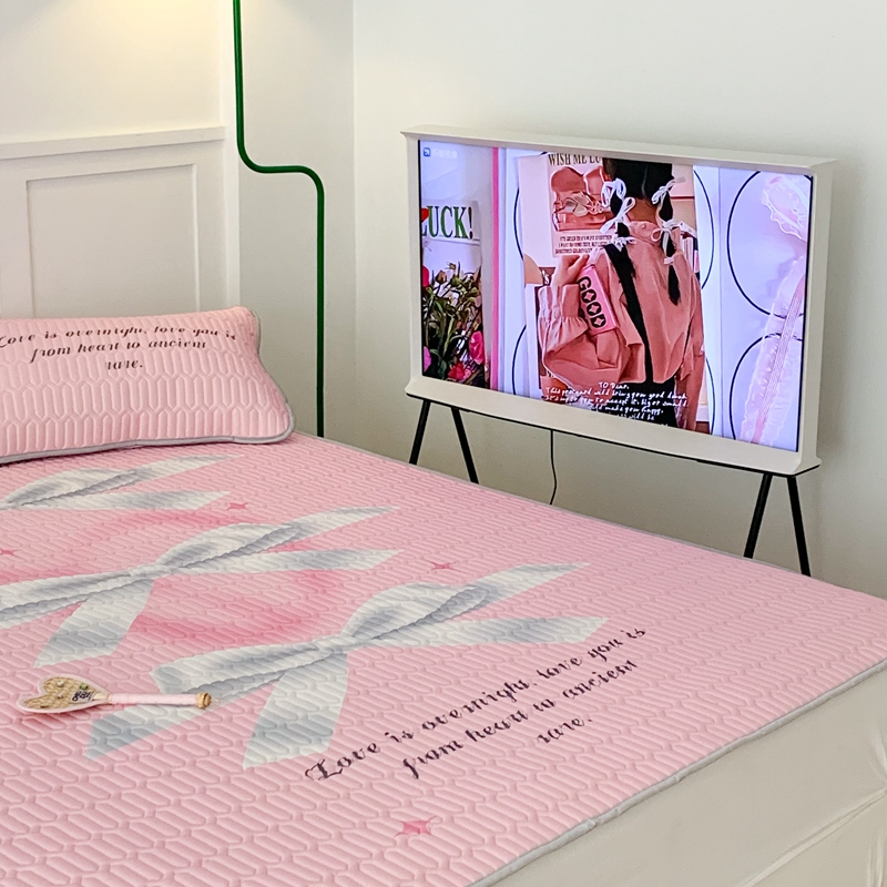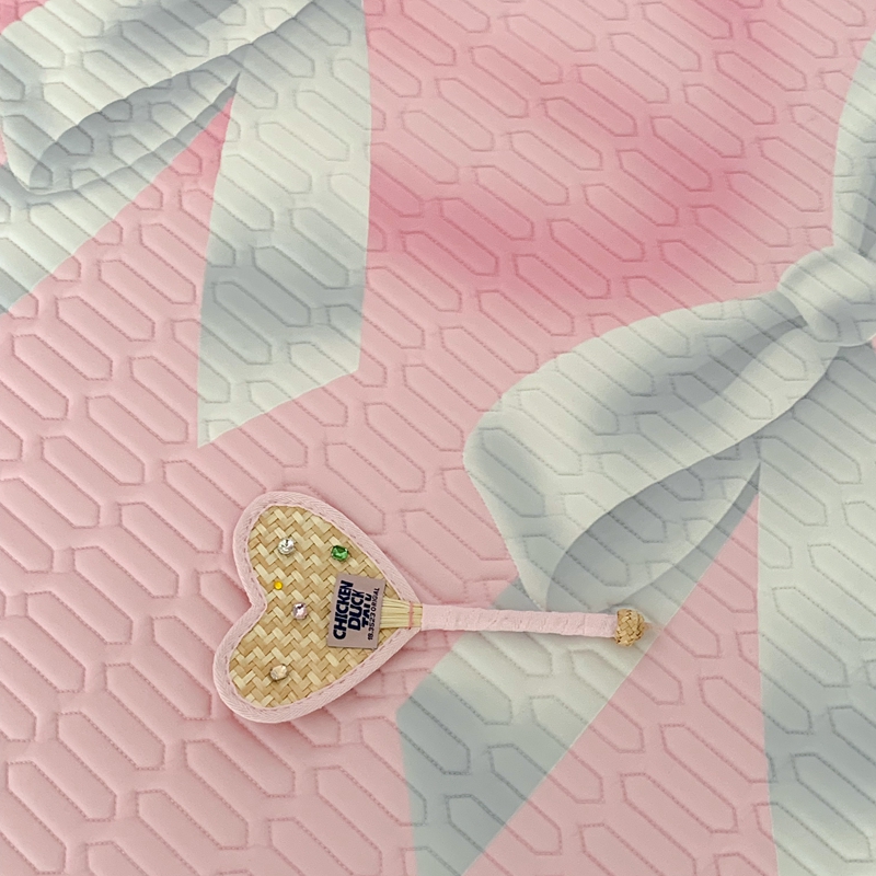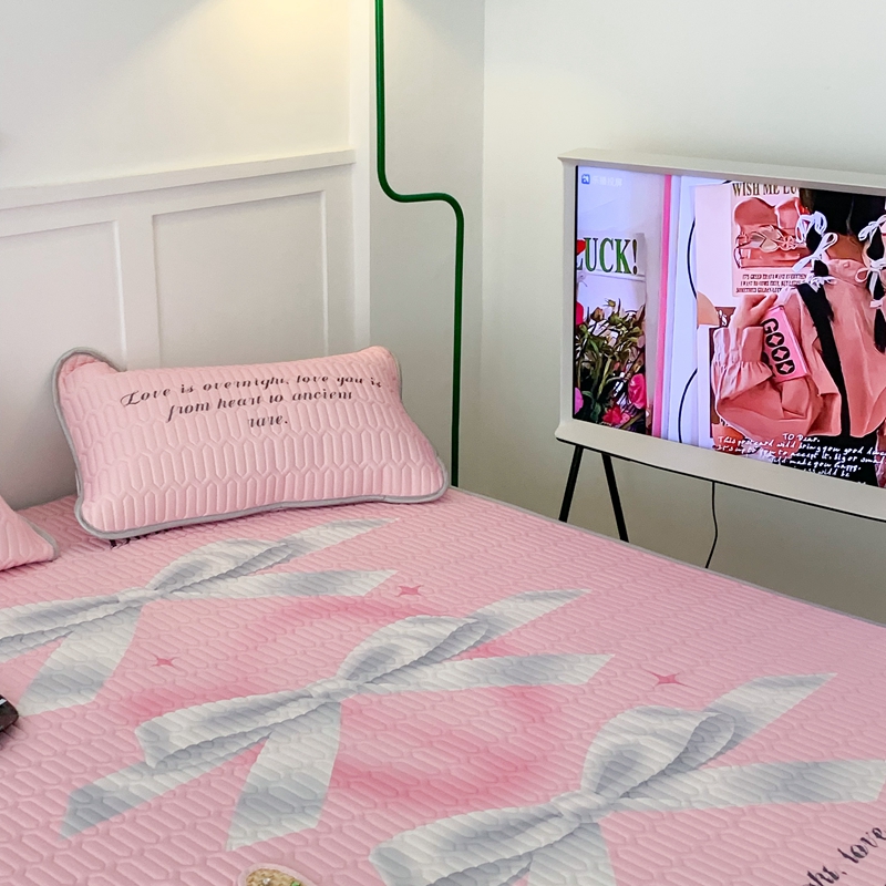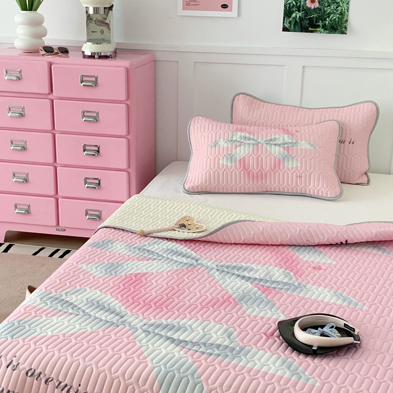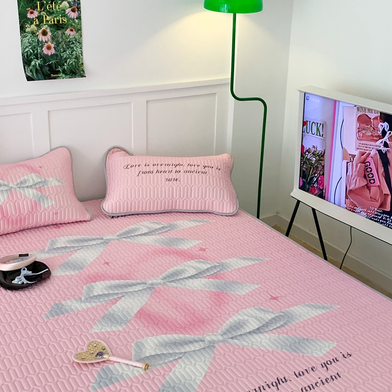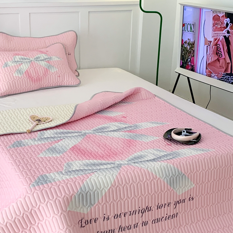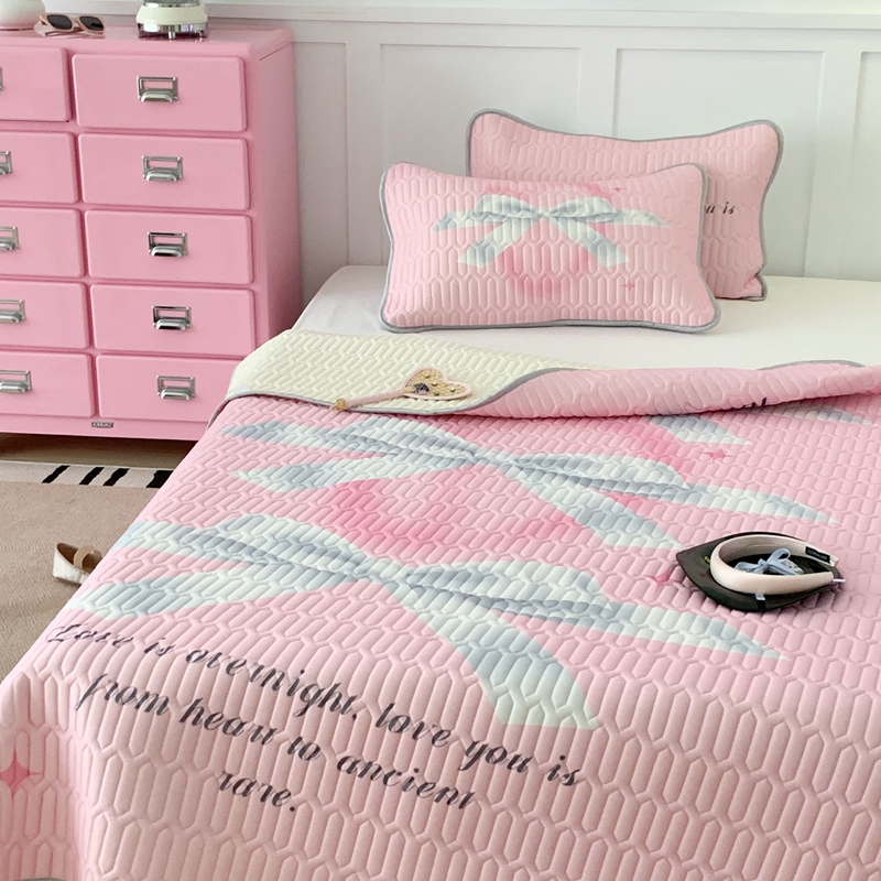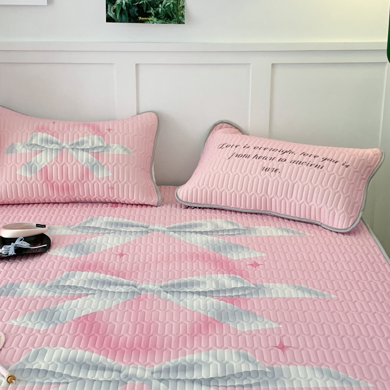 昔可家纺2023新款甜酷黑粉系列乳胶凉席 芭蕾风丝带蝴蝶结