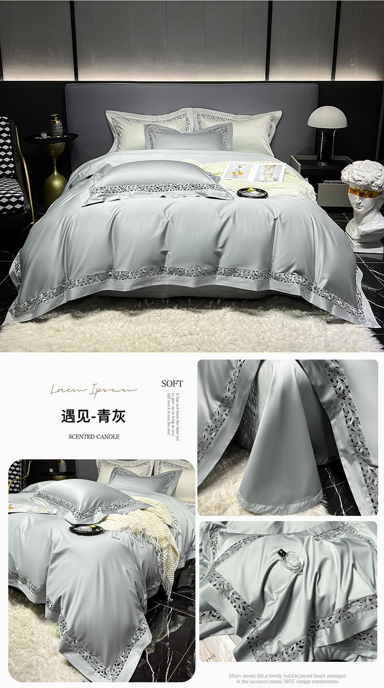 商品名称:淼铭 2025新款水溶镂空四件套-遇见系列 遇见-青灰