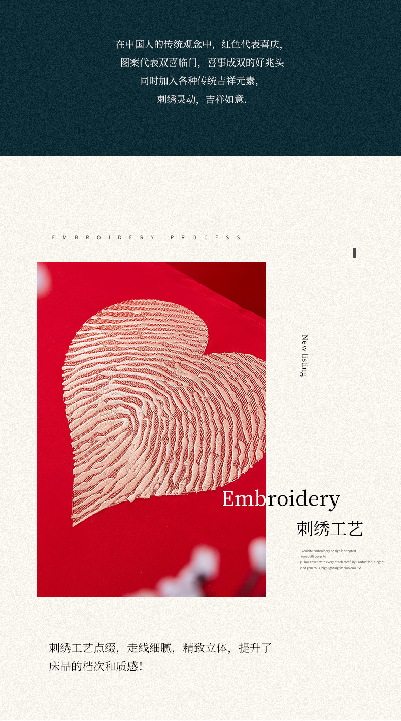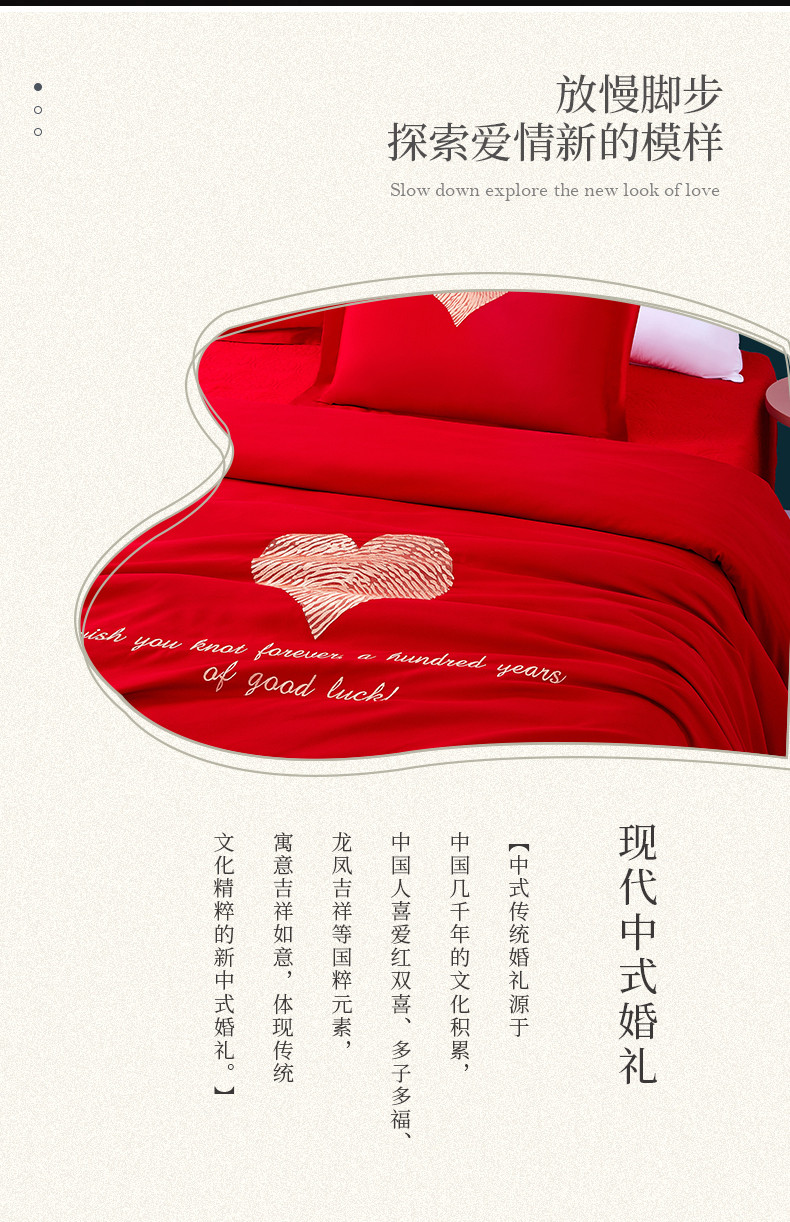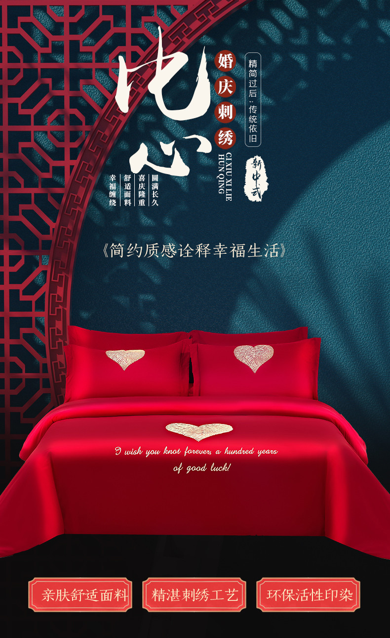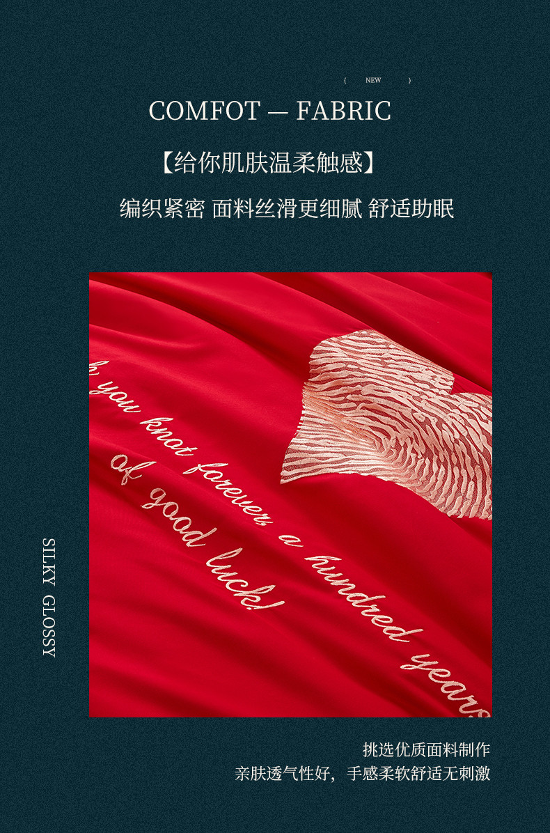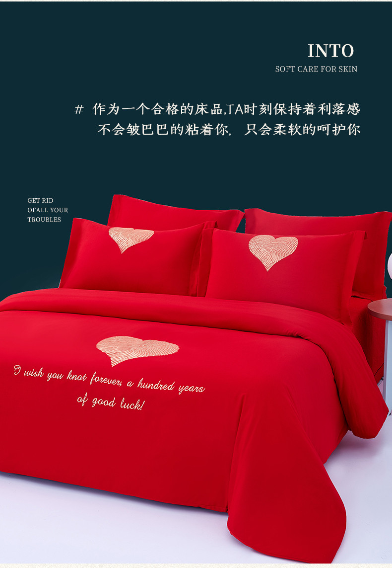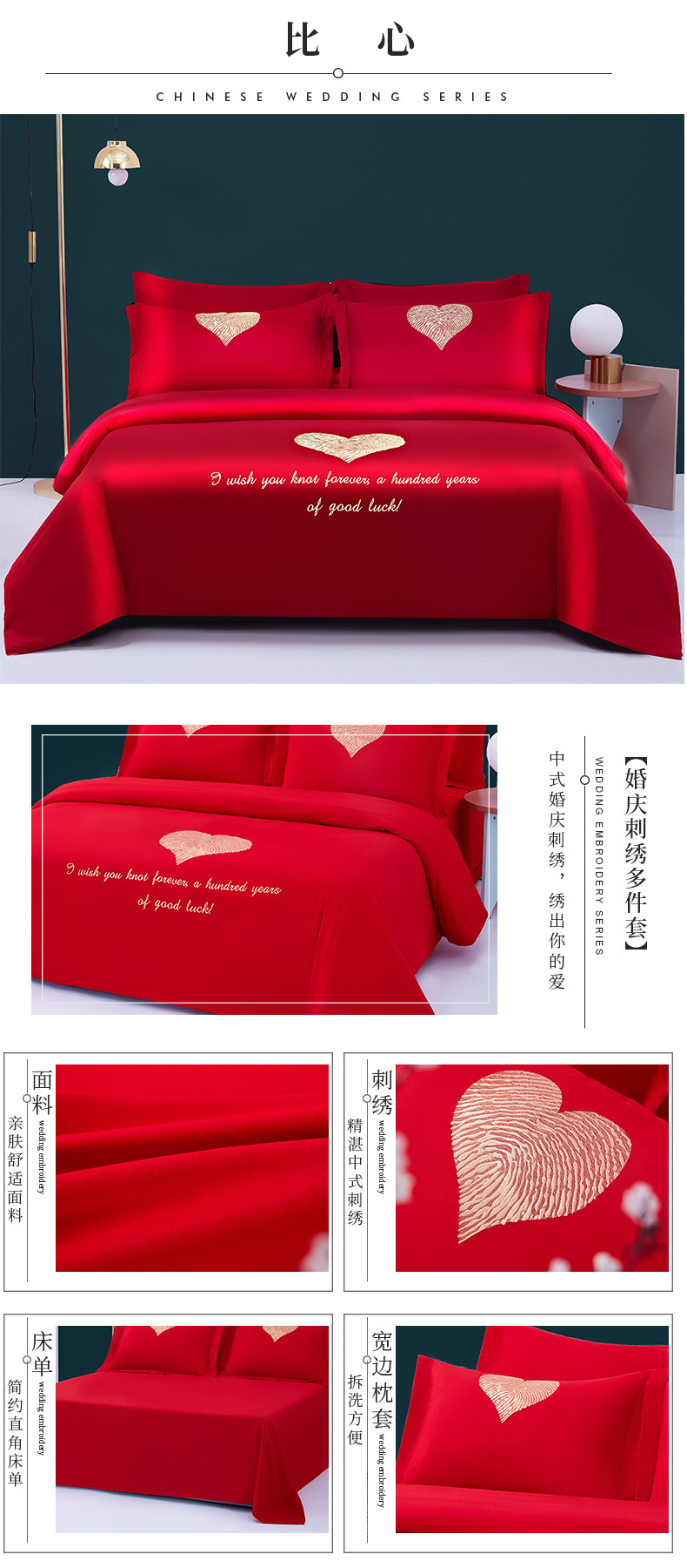 当前位置: 91家纺网 > 商品网购 > 床品套件 > 四件套 > 全棉普通四件套 > 2025新款亲肤棉绣花刺绣婚庆四件套 比心