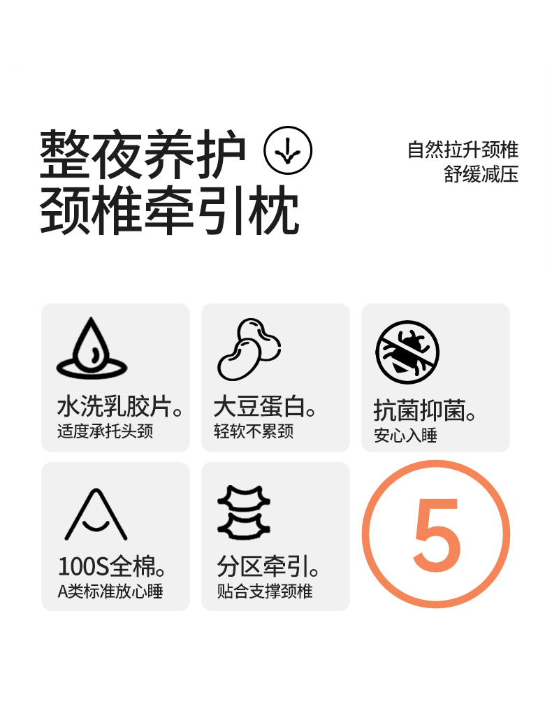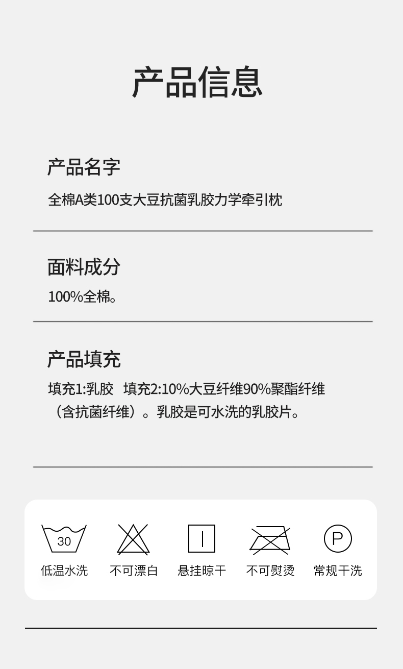 商品名称:头等舱 2023新款全棉A类100支大豆抗菌乳胶力学牵引枕 祖玛灰