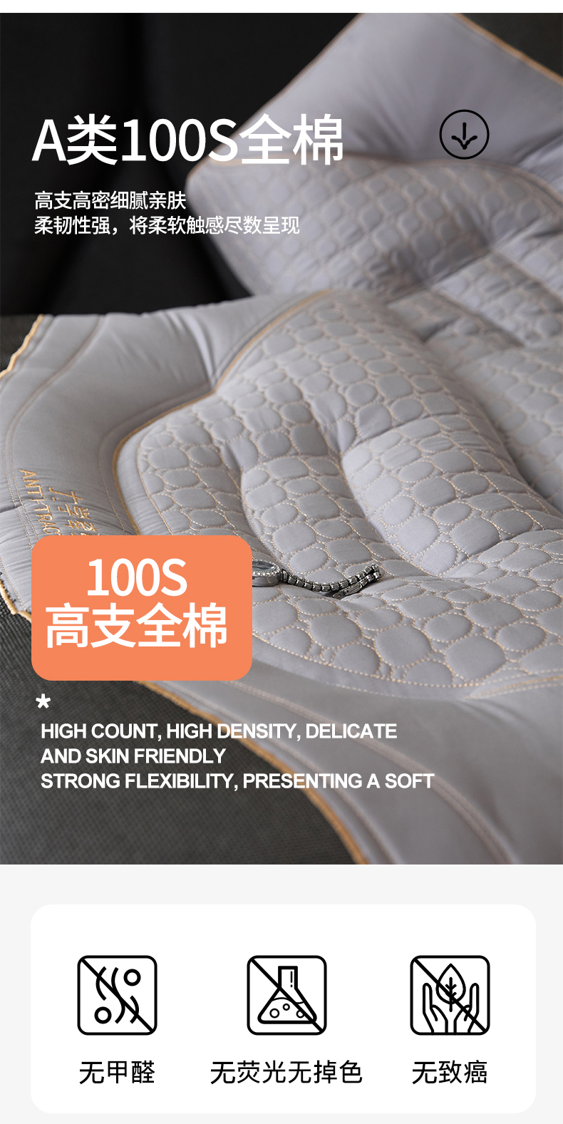 (总)头等舱 2025新款全棉A类三防酒店抗菌枕头枕芯,低枕,中枕,高枕