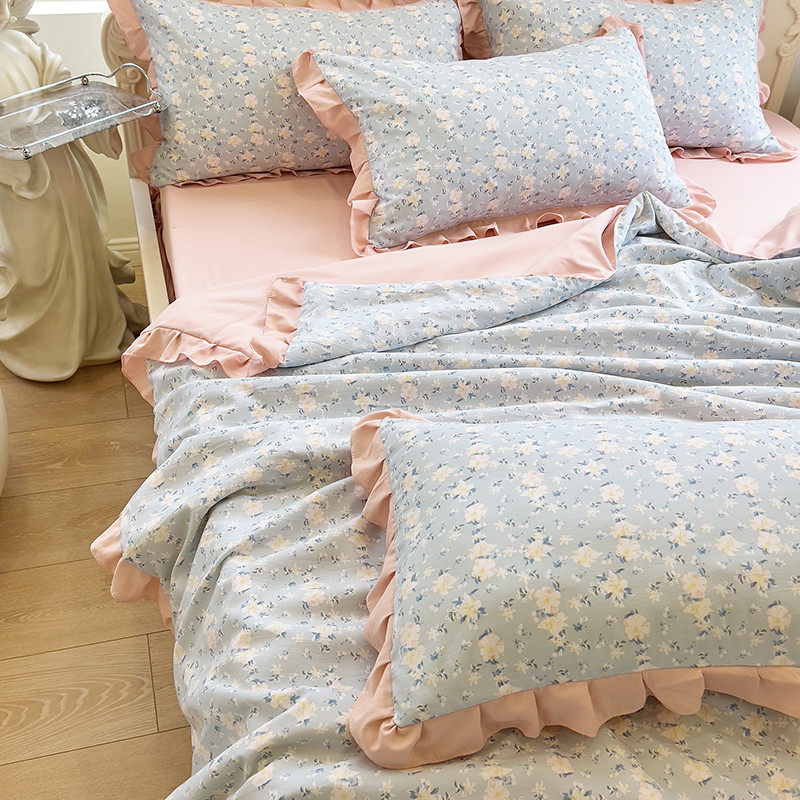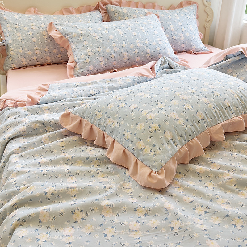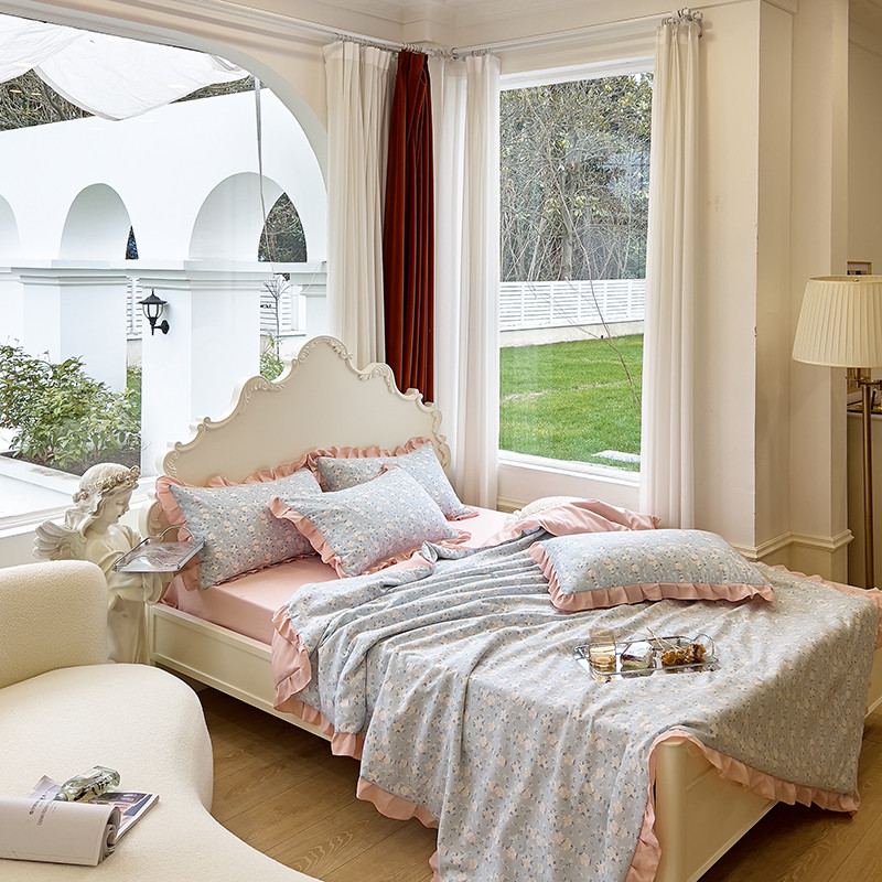 (总)梦莱斯 2025新款云感木棉皱皱双层纱全棉花边四件套,百福蓝,春风里,薄荷微凉,春晓,豆蔻,蝴蝶梦,可颂,兰黛,山野栀子,素颜,太妃糖,心动,遇见,芝士奶酪,紫爱心,紫苏,花园兔,蜡笔画,小黑兔,白茶-绿,初恋,莱茵河畔,桃花诺