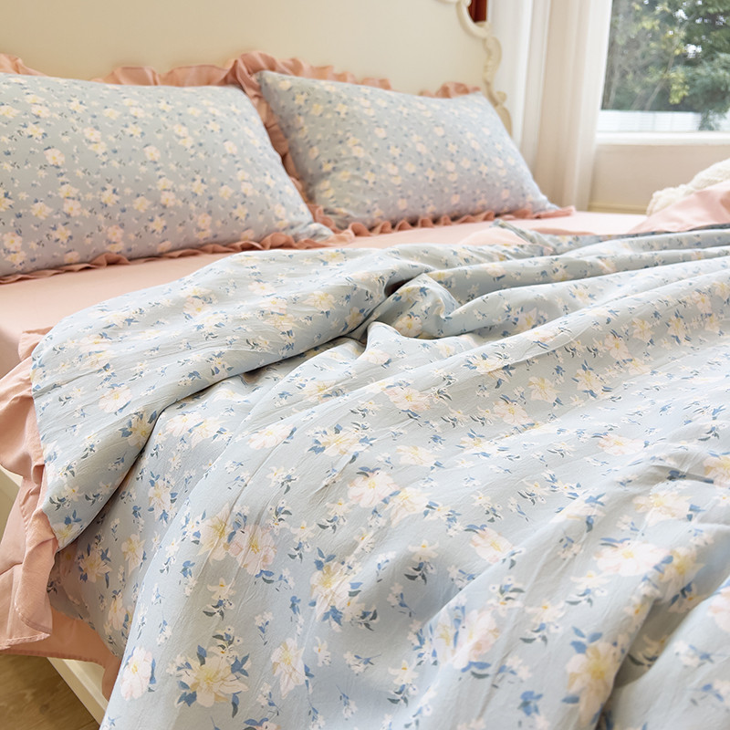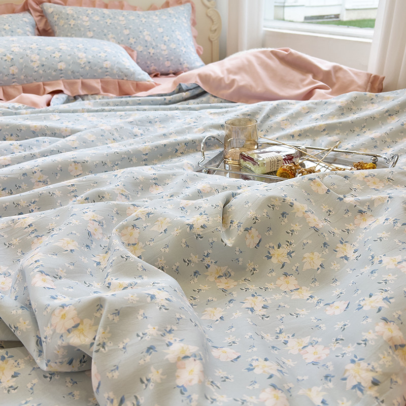 梦莱斯 2023新款水洗棉麻印花夏被四件套 玲珑兰