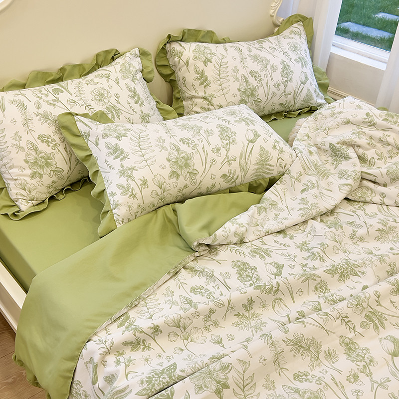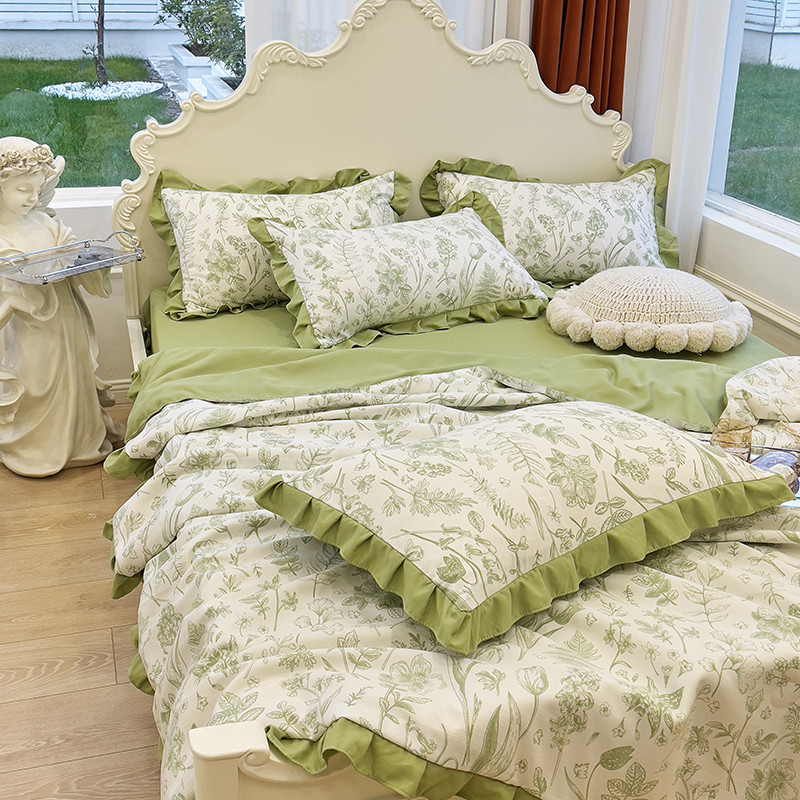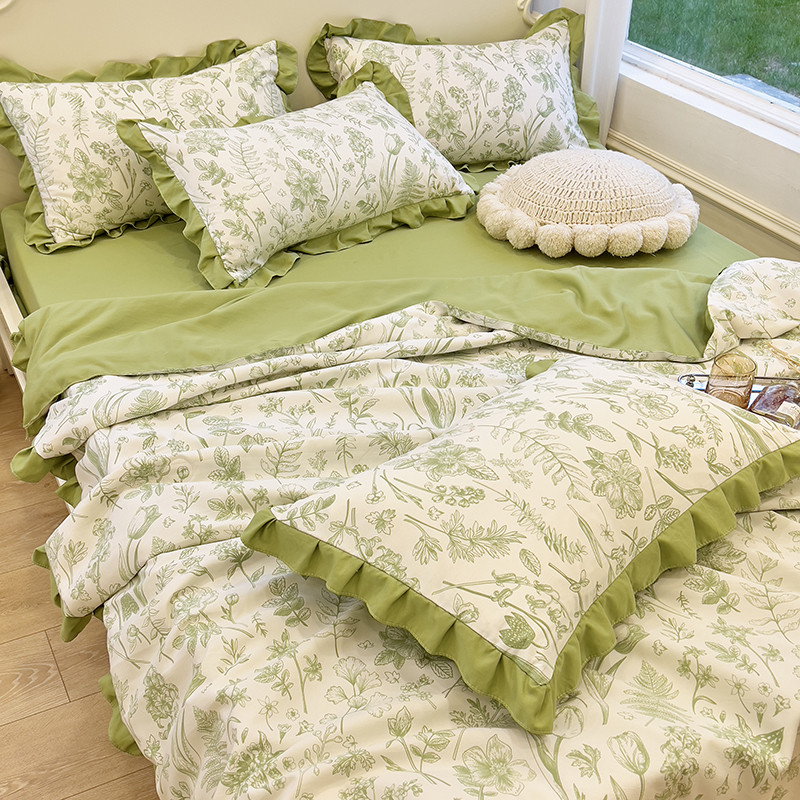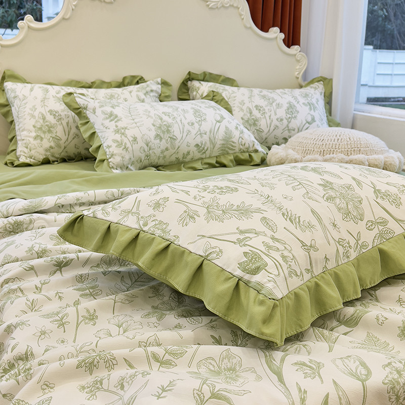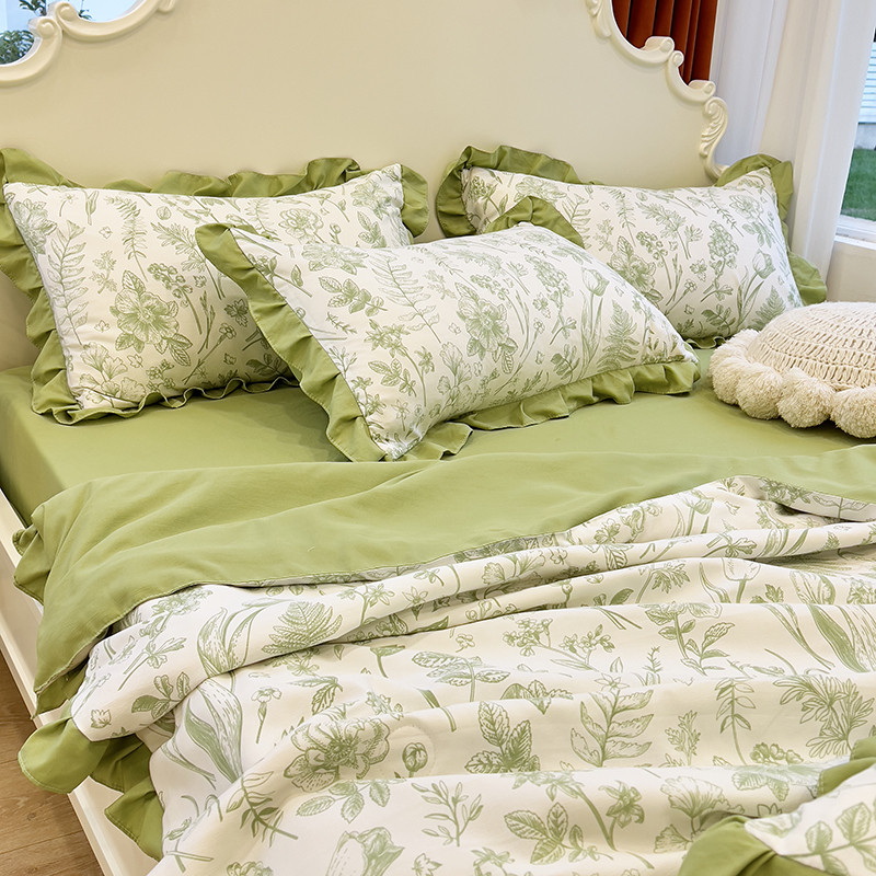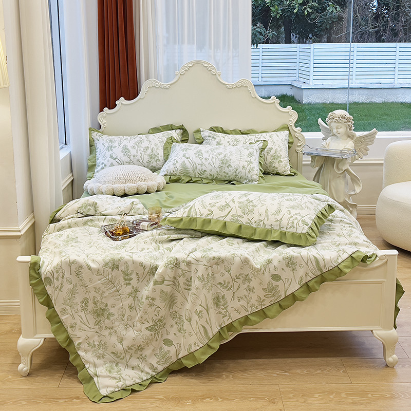 (总)梦莱斯 2025新款田园碎花纯棉花边四件套-床盖款,采薇,花精灵,花开半夏,莱茵,恋爱季,绿叶仙踪,糜花似锦,糜花熙悦,秘境花园