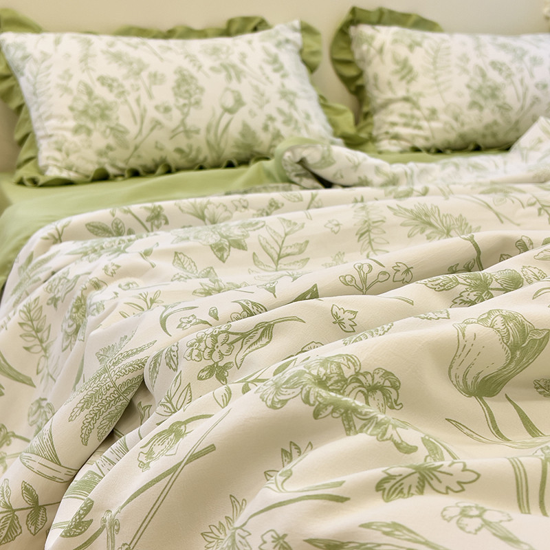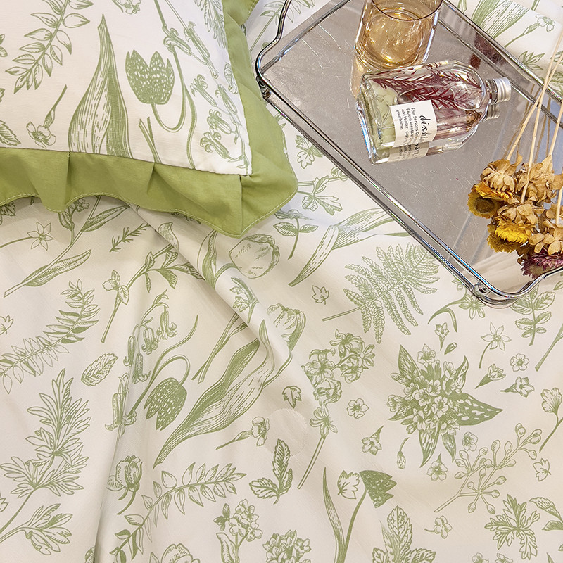 梦莱斯 2023新款水洗棉麻印花夏被四件套 曼芮绿