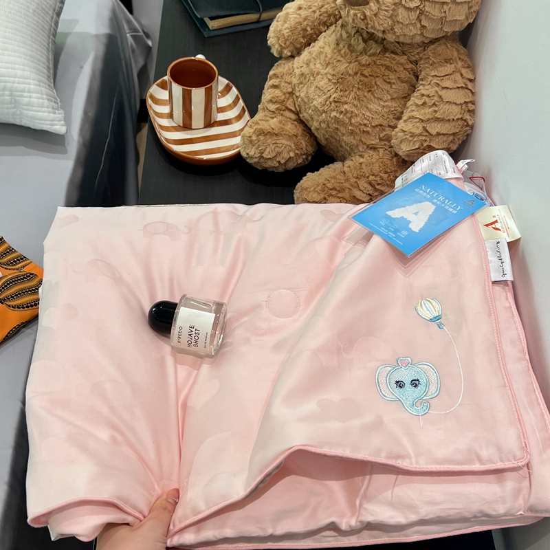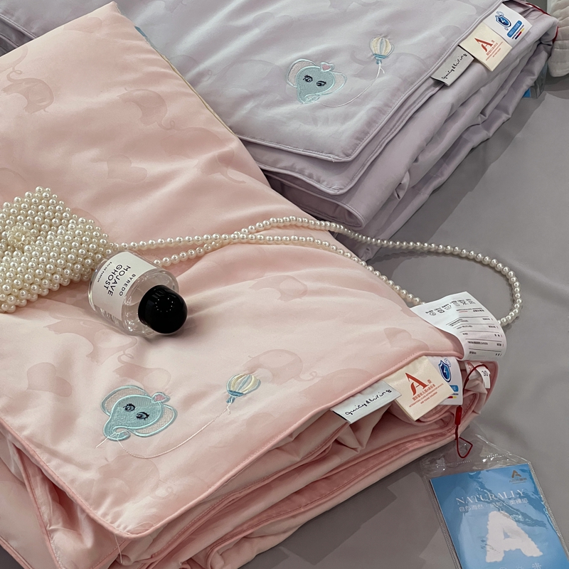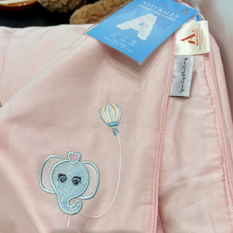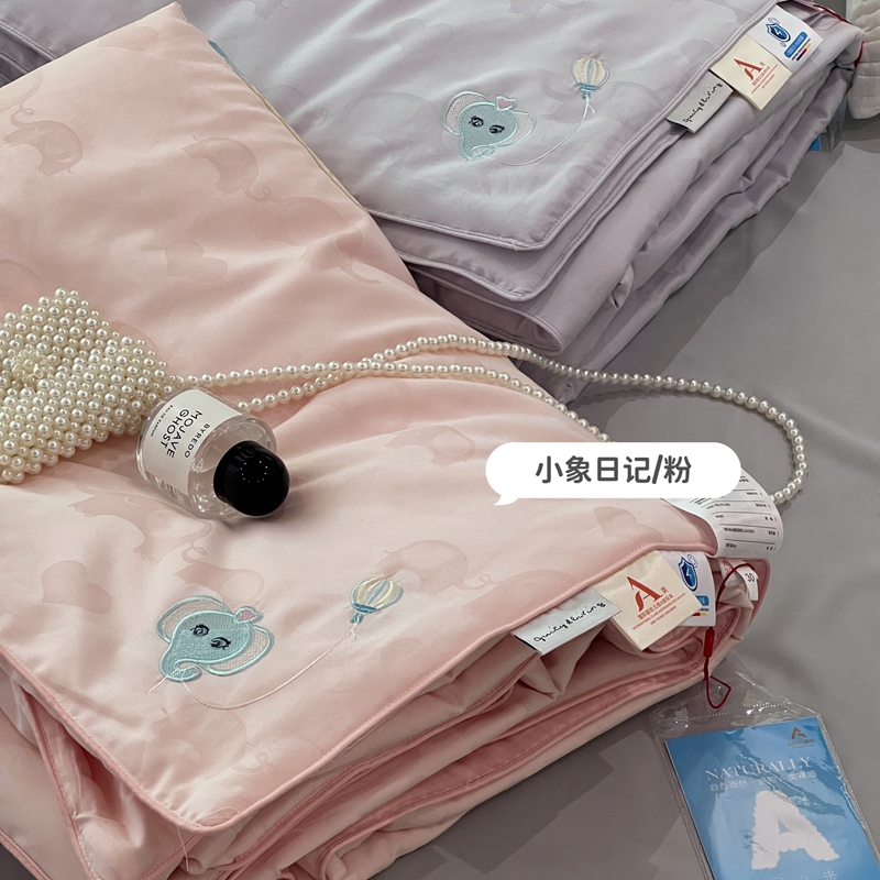 商品名称:JUICY 橘滋家纺 2023新款双A类儿童全棉提花夏被-小象日记 小象日记-粉