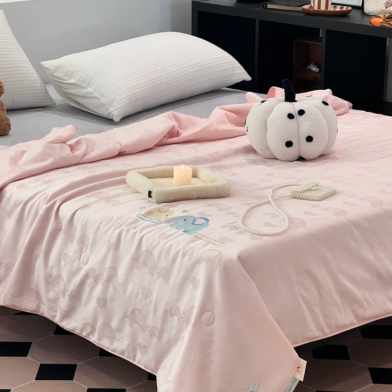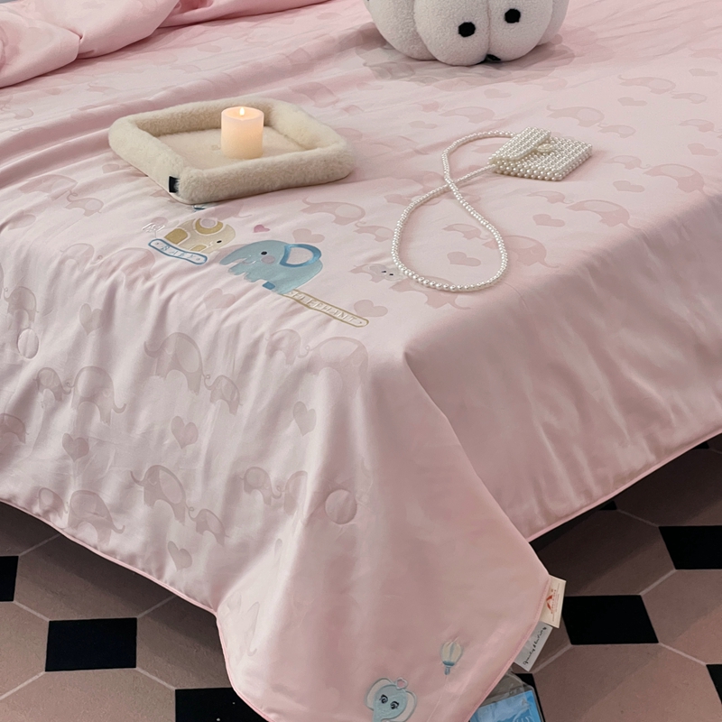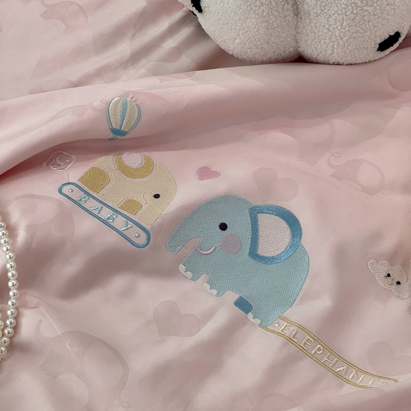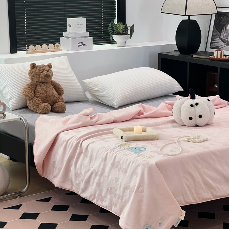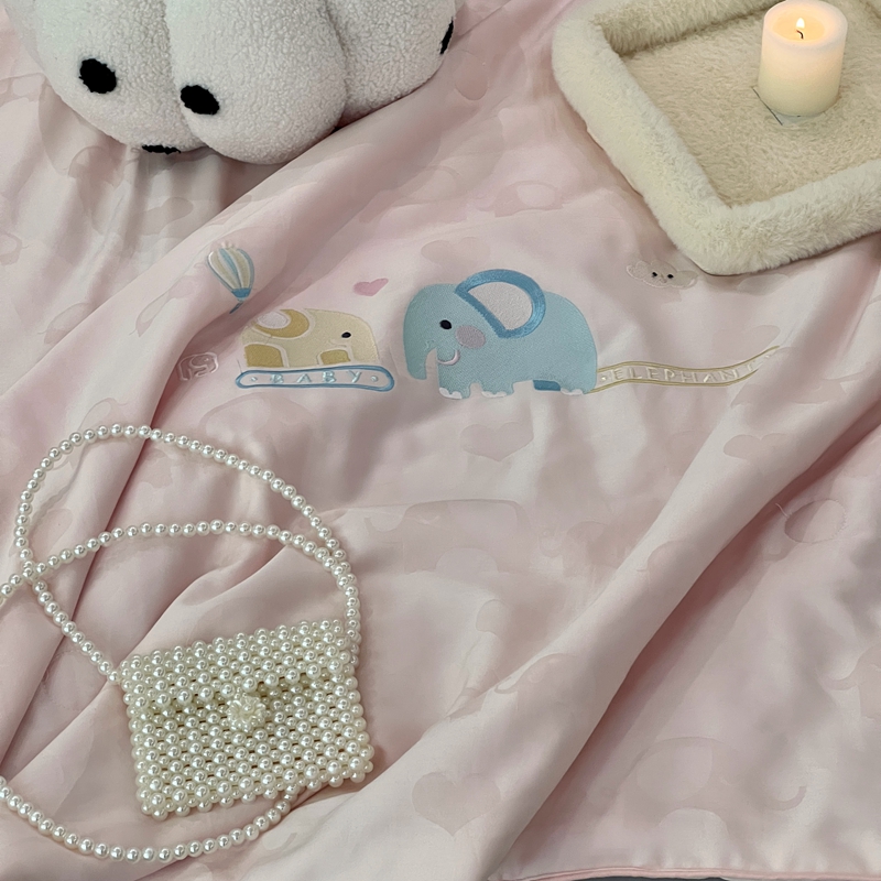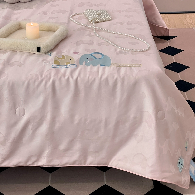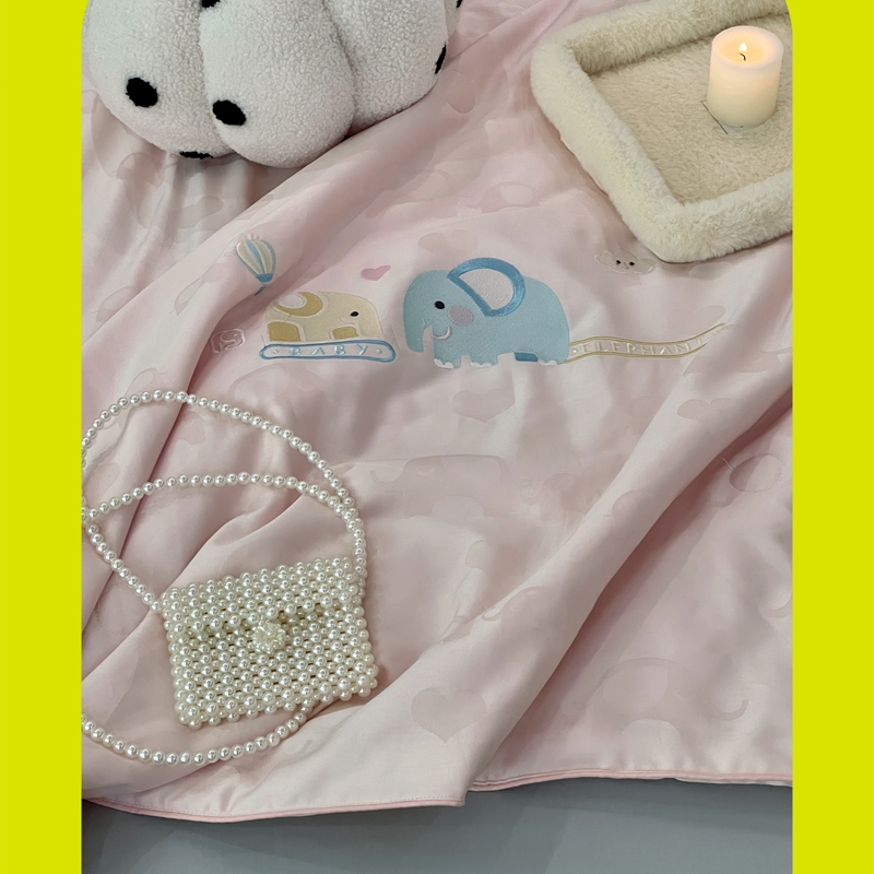 JUICY 橘滋家纺 2023新款双A类儿童全棉提花夏被-小象日记 小象日记-粉