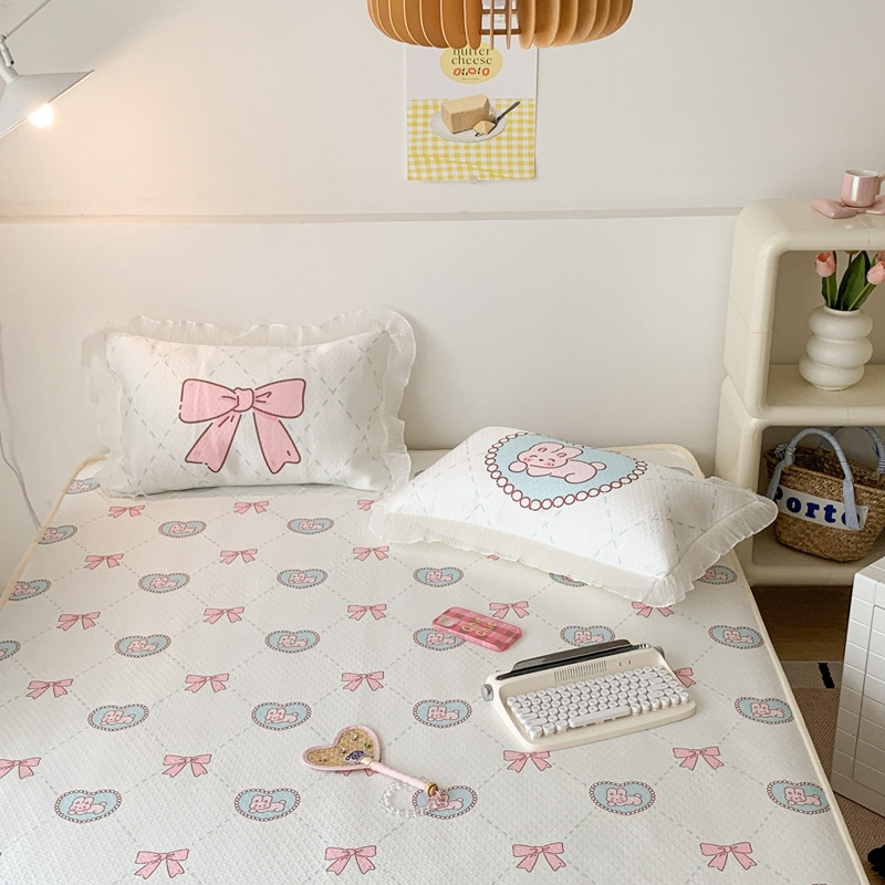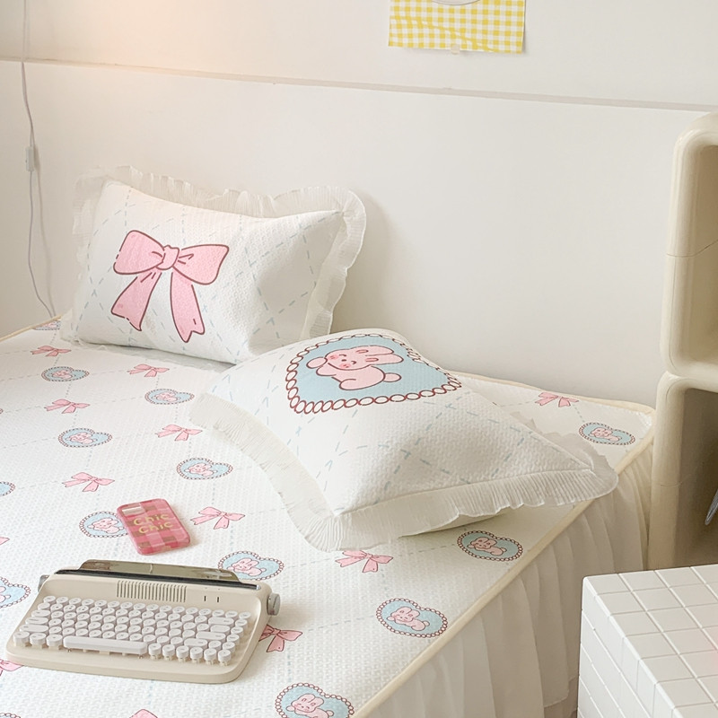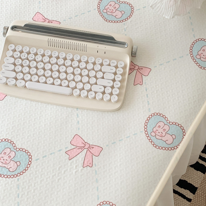 昔可家纺 2023新款双层雪纺纱花边床裙款凉感软席 爱心蝴蝶结兔