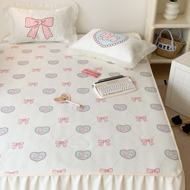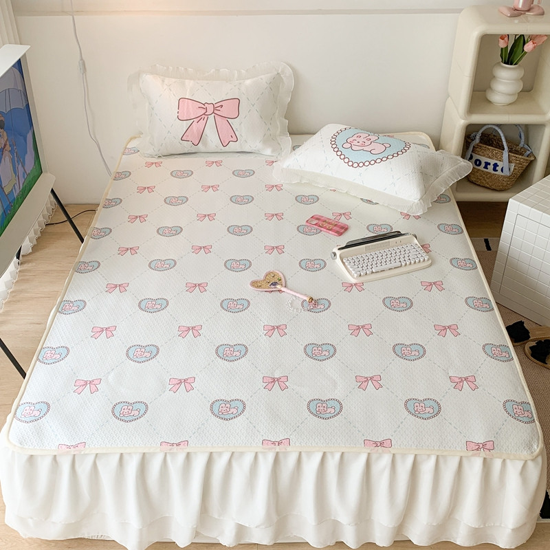 商品名称:昔可家纺 2023新款双层雪纺纱花边床裙款凉感软席 爱心蝴蝶结兔
