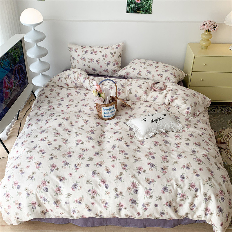 (总)昔可家纺 2023新款全棉小花系列四件套,柏林少女,小小的樱桃,紫色葡萄